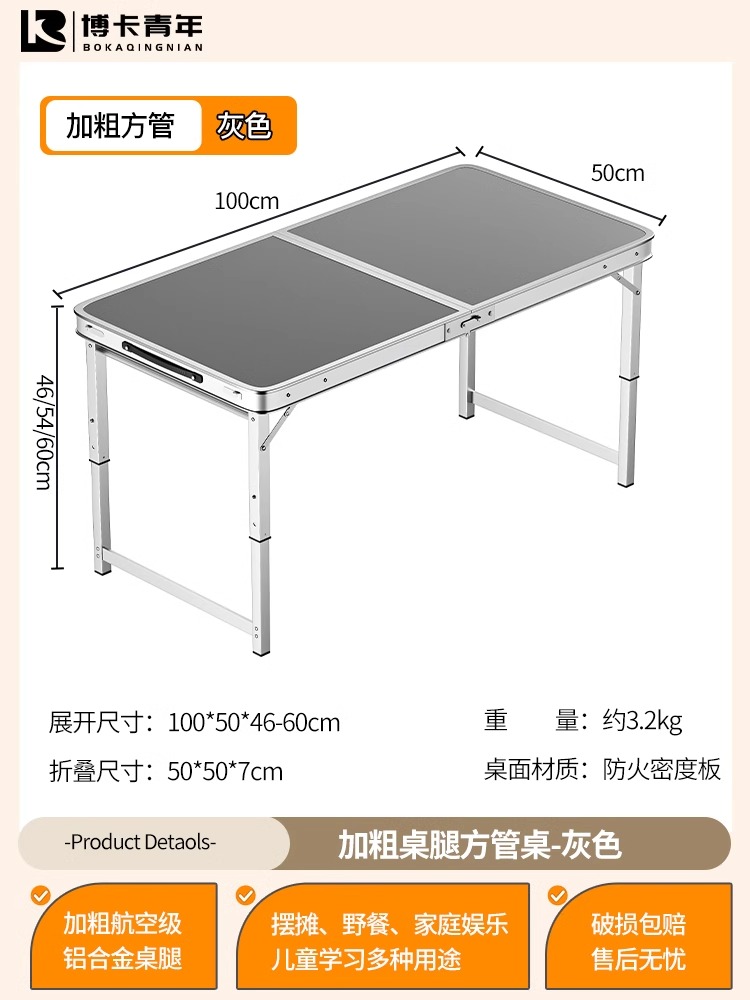 • [업그레이드 된 알루미늄 합금 사각 튜브] 120*60cm 회색 + 알루미늄 의자 2개