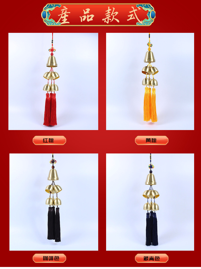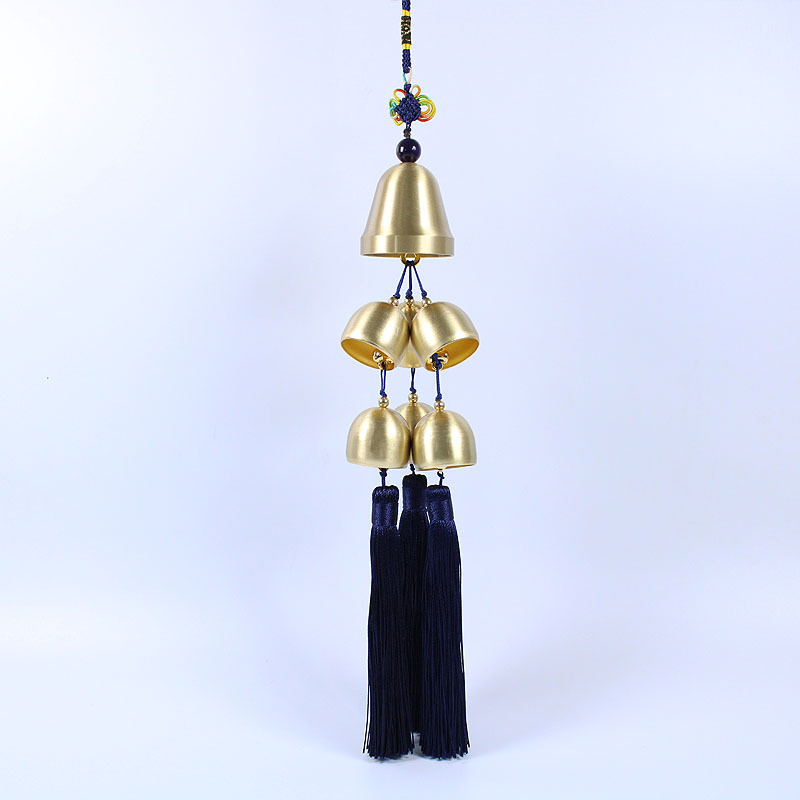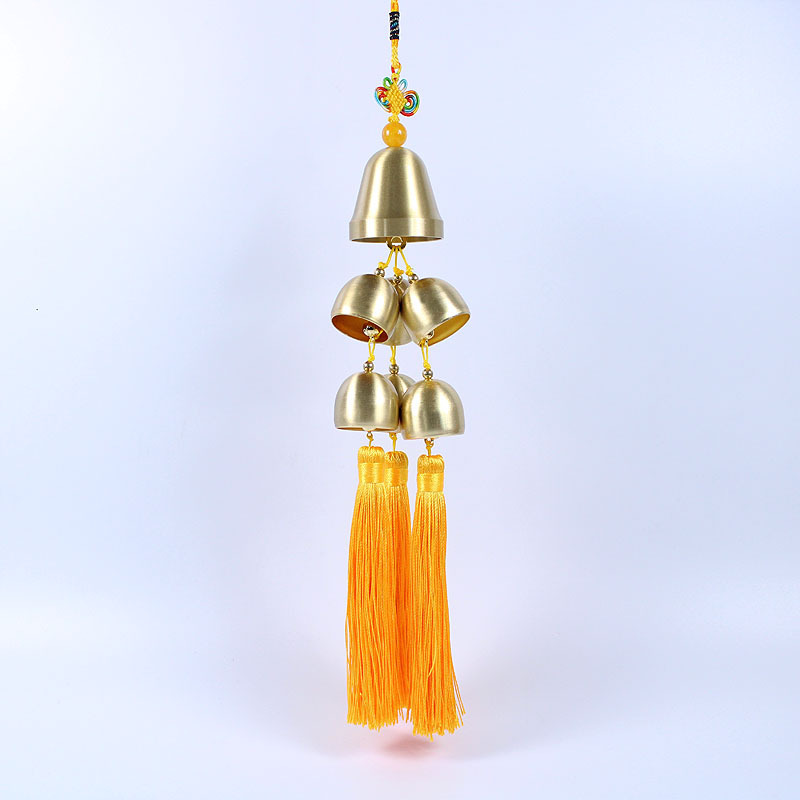 대형 6개의 작은 황동 풍경 종, 가정용 풍수 장식 종, 고급 박스형 선물, 황동 문 간 걸이 장식품