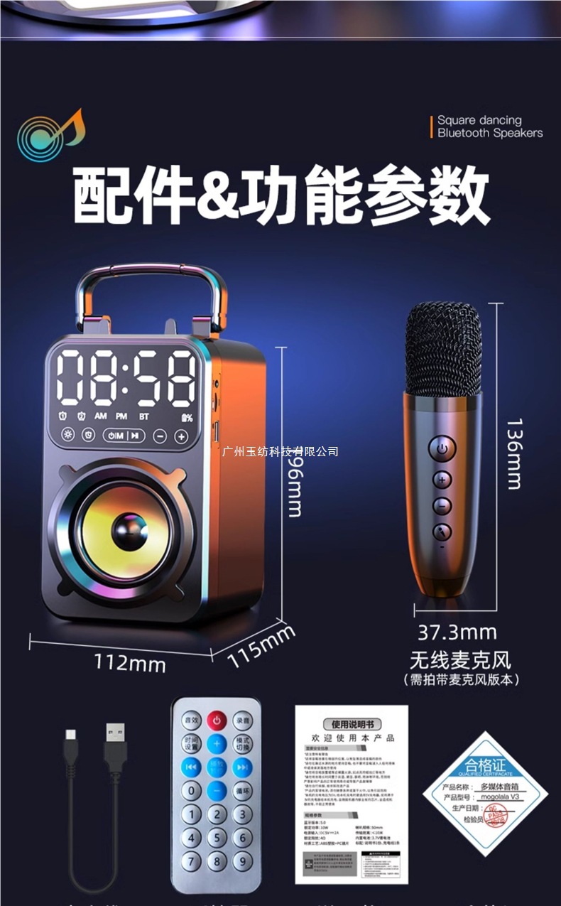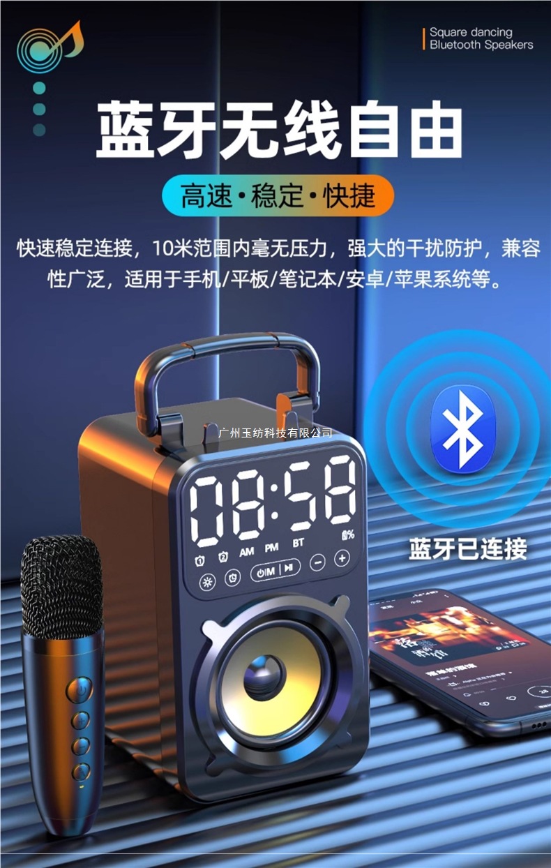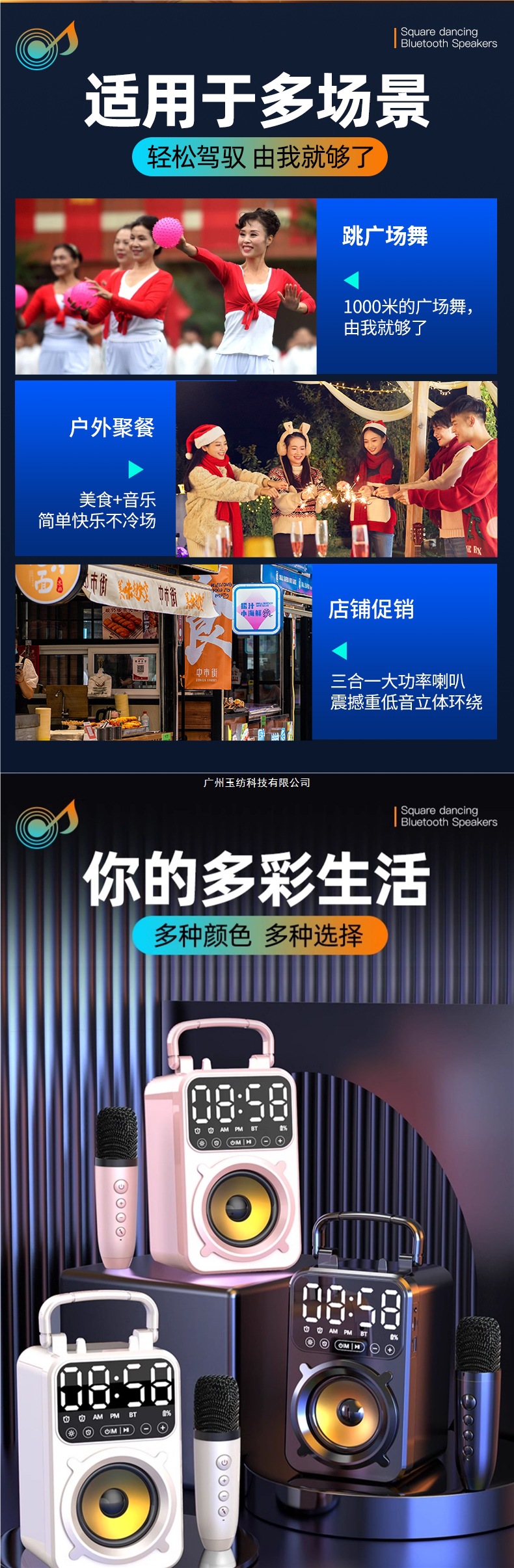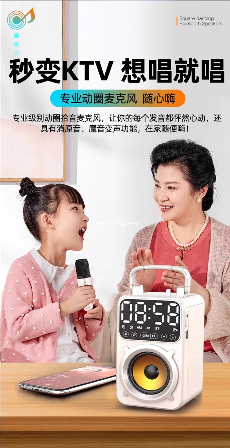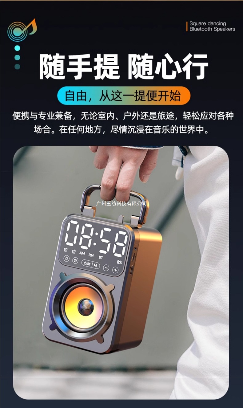 무선 블루투스 스피커 충전 서브우퍼 스퀘어 댄스 하이엔드 오디오 대용량 스테레오 알람 시계 다기능스토어 가기