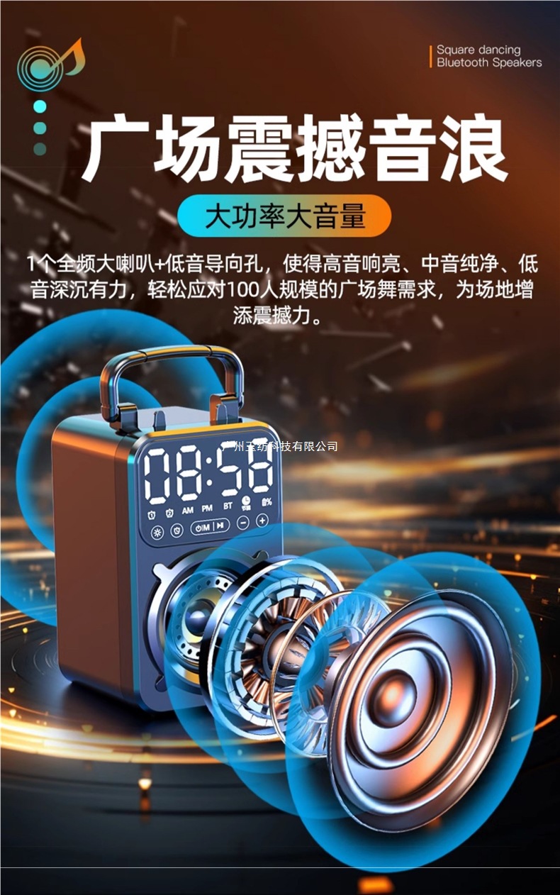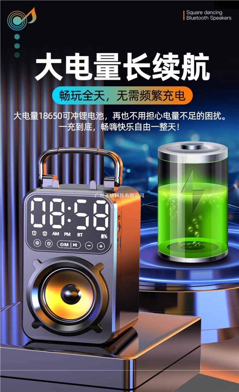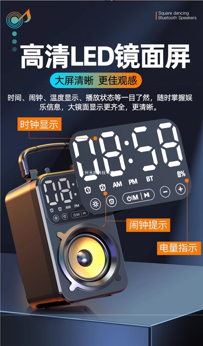 무선 블루투스 스피커 충전 서브우퍼 스퀘어 댄스 하이엔드 오디오 대용량 스테레오 알람 시계 다기능