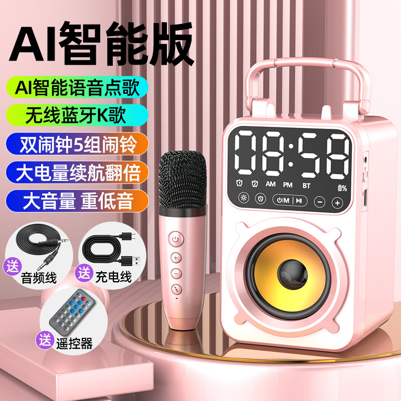• 핑크 스마트 버전: 음성 노래 요청 + 전대역 스피커 + 대용량 배터리 + 무손실 음질 + 리모콘 + 단일 마이크