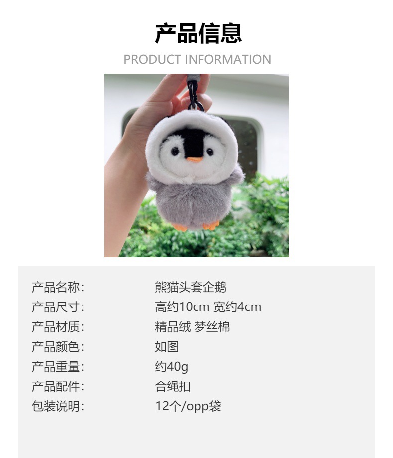 새로운 팬더 헤드 기어 작은 펭귄 봉제 장난감 귀여운 인형 작은 인형 일본 스타일 펜던트 인터넷 축하 매달려 장식스토어 가기