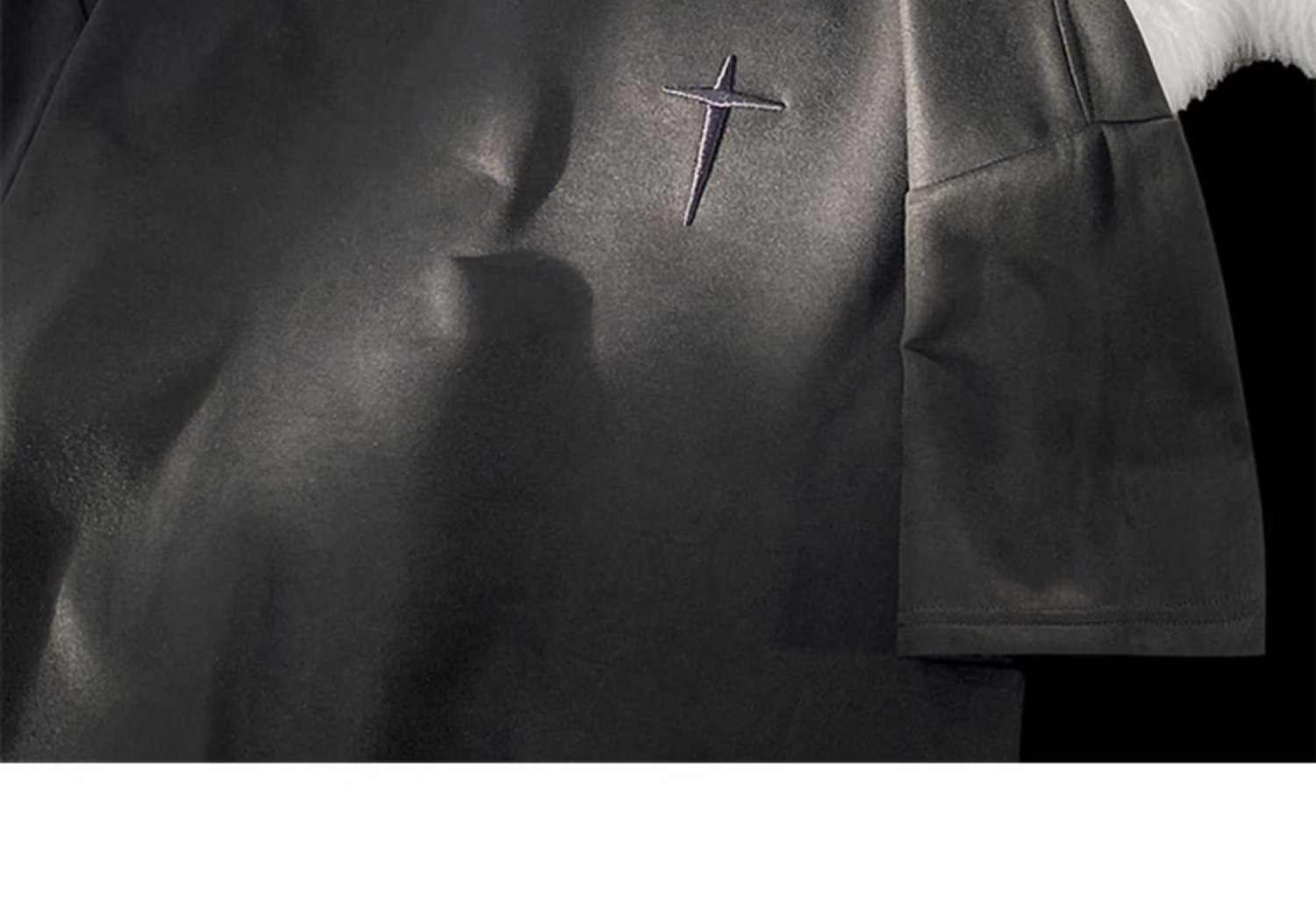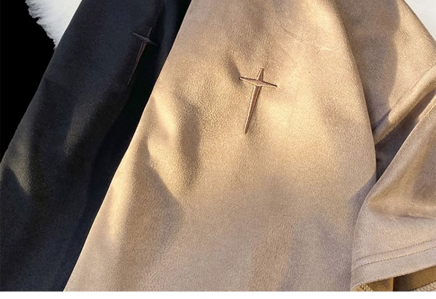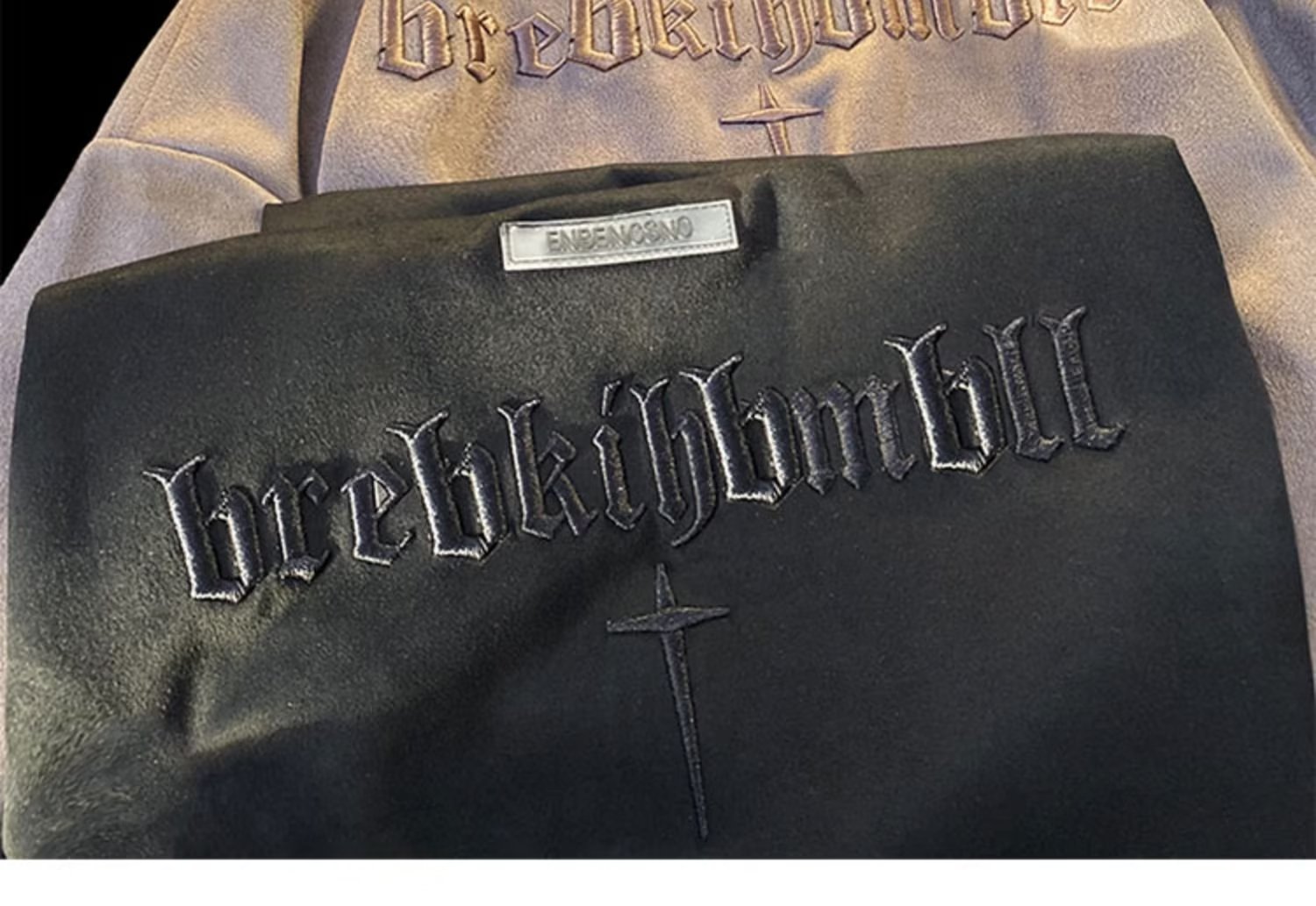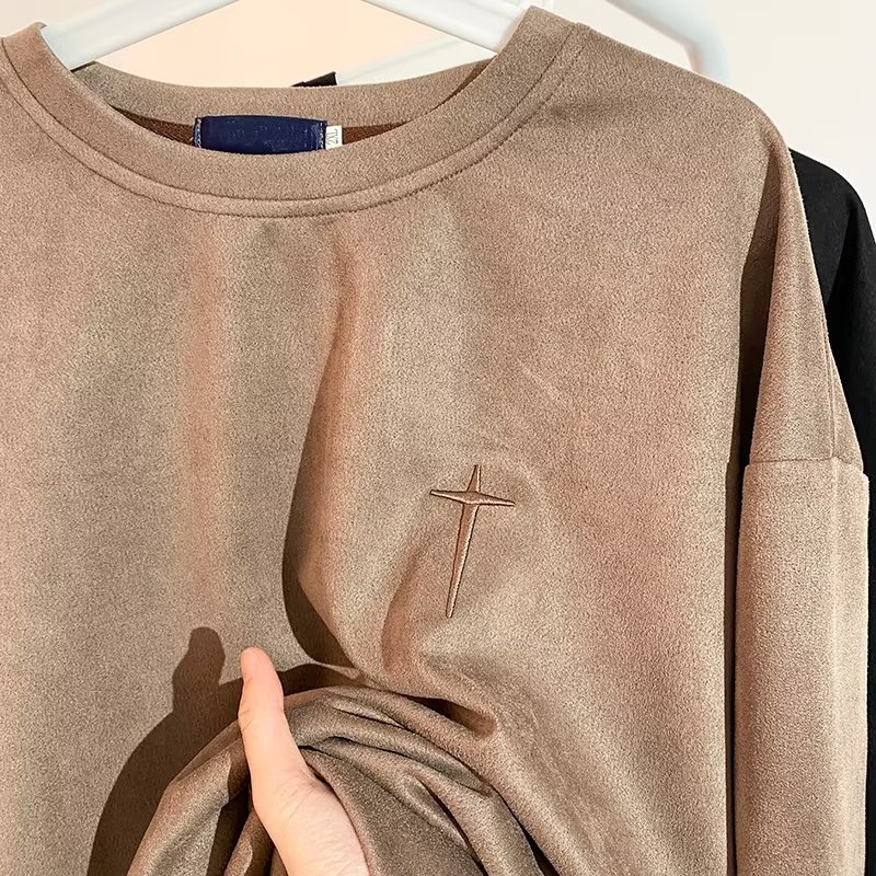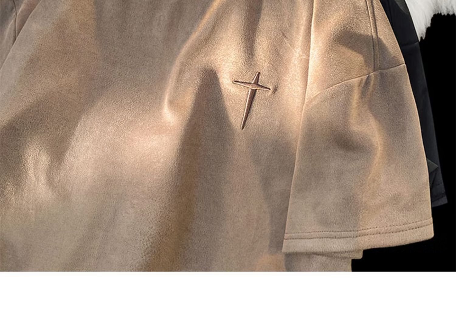 빈티지 트렌디 브랜드 레트로 레터 자수 스웨이드 반팔 티셔츠 남성용 아메리칸 힙합 루즈 반팔 티셔츠