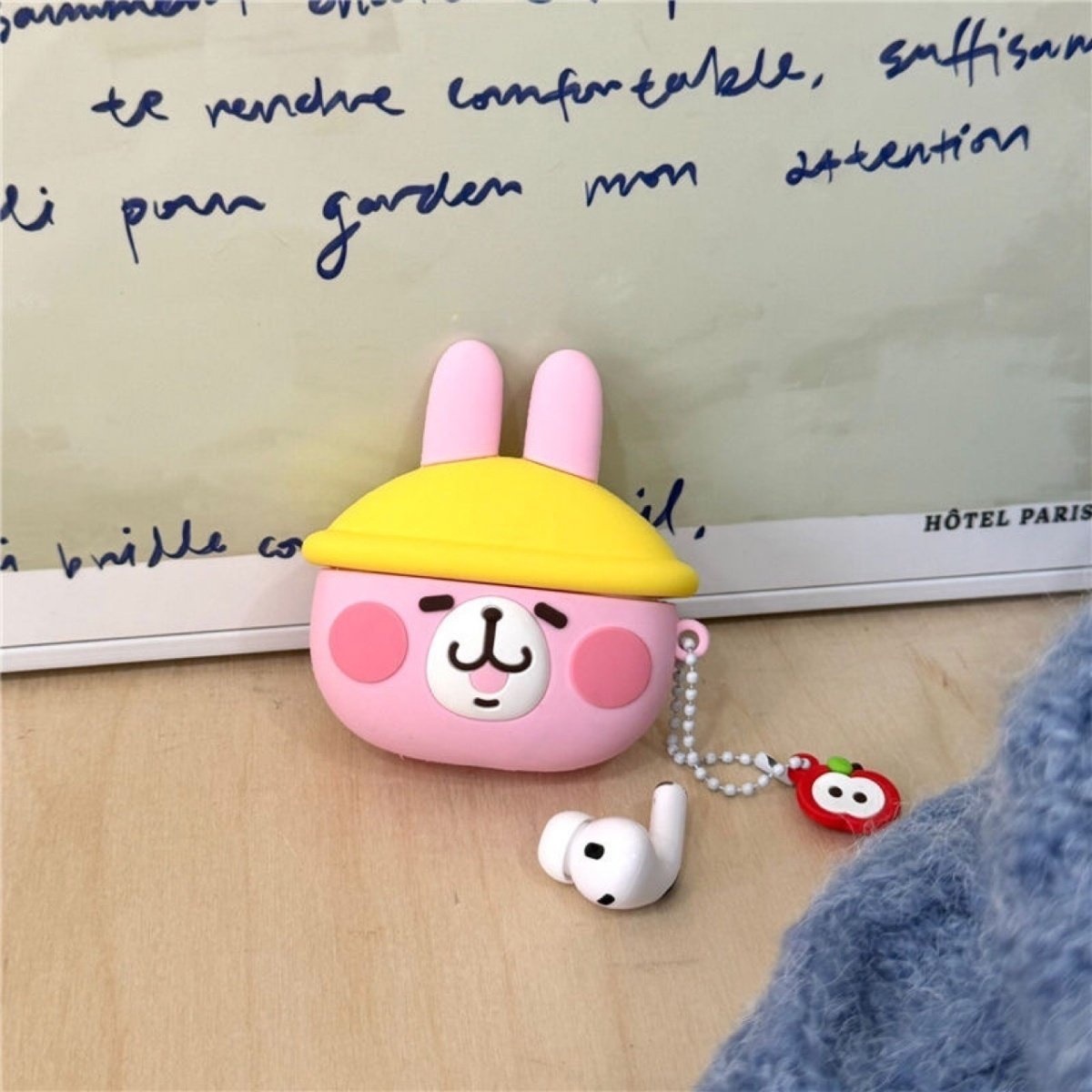 • 작은 노란색 모자 핑크 토끼 + 펜던트