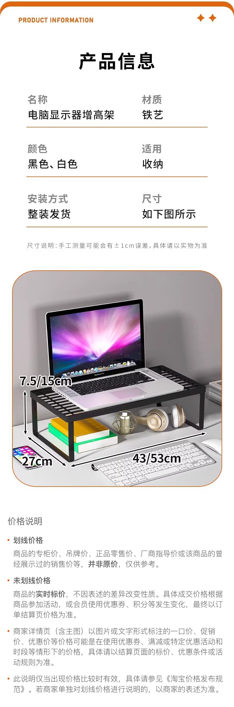 컴퓨터 디스플레이 스탠드 노트북 스탠드 냉각 그릴 데스크탑 컴퓨터 모니터 화면 베이스 브래킷 도서스토어 가기