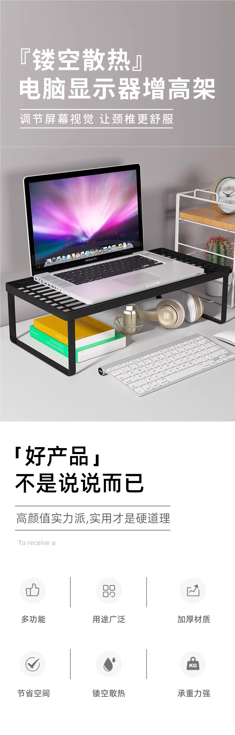 컴퓨터 디스플레이 스탠드 노트북 스탠드 냉각 그릴 데스크탑 컴퓨터 모니터 화면 베이스 브래킷 도서