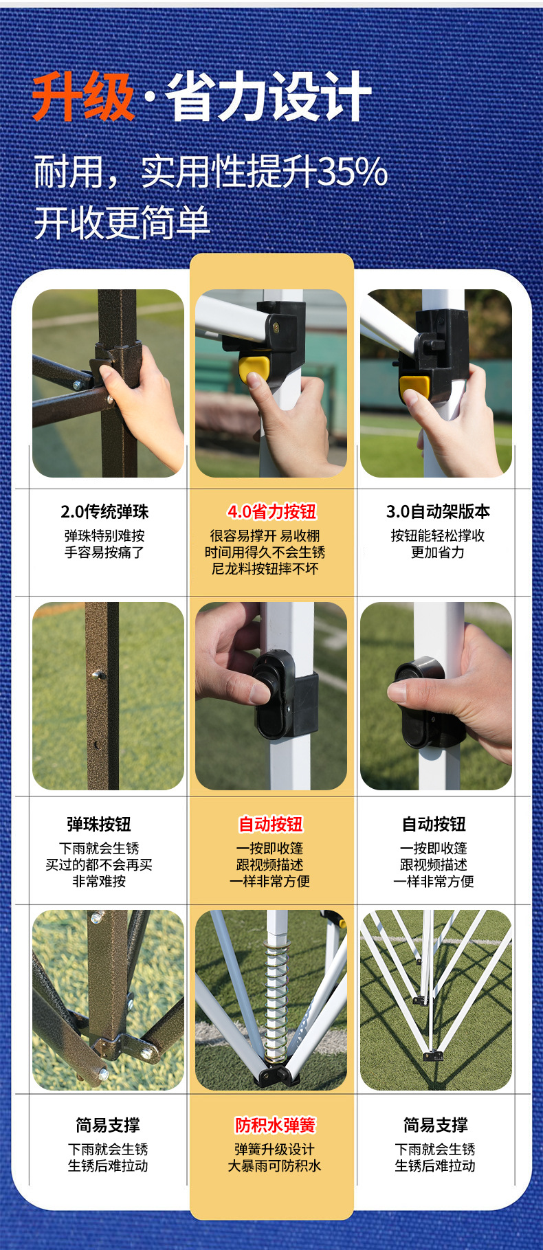 야외 4각 텐트, 판매대, 접이식 방수 광고 활동, 두꺼운 천 4각 우산 차양