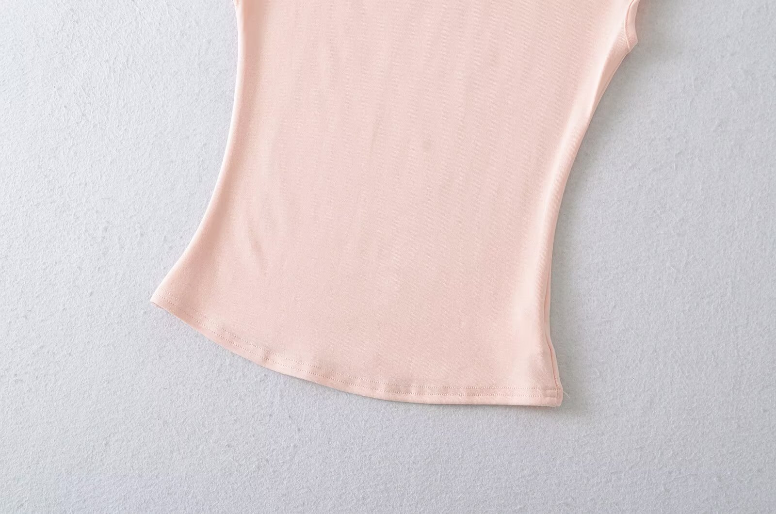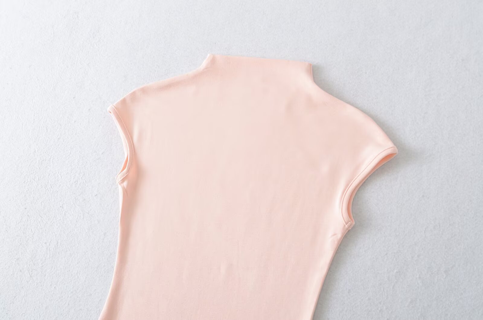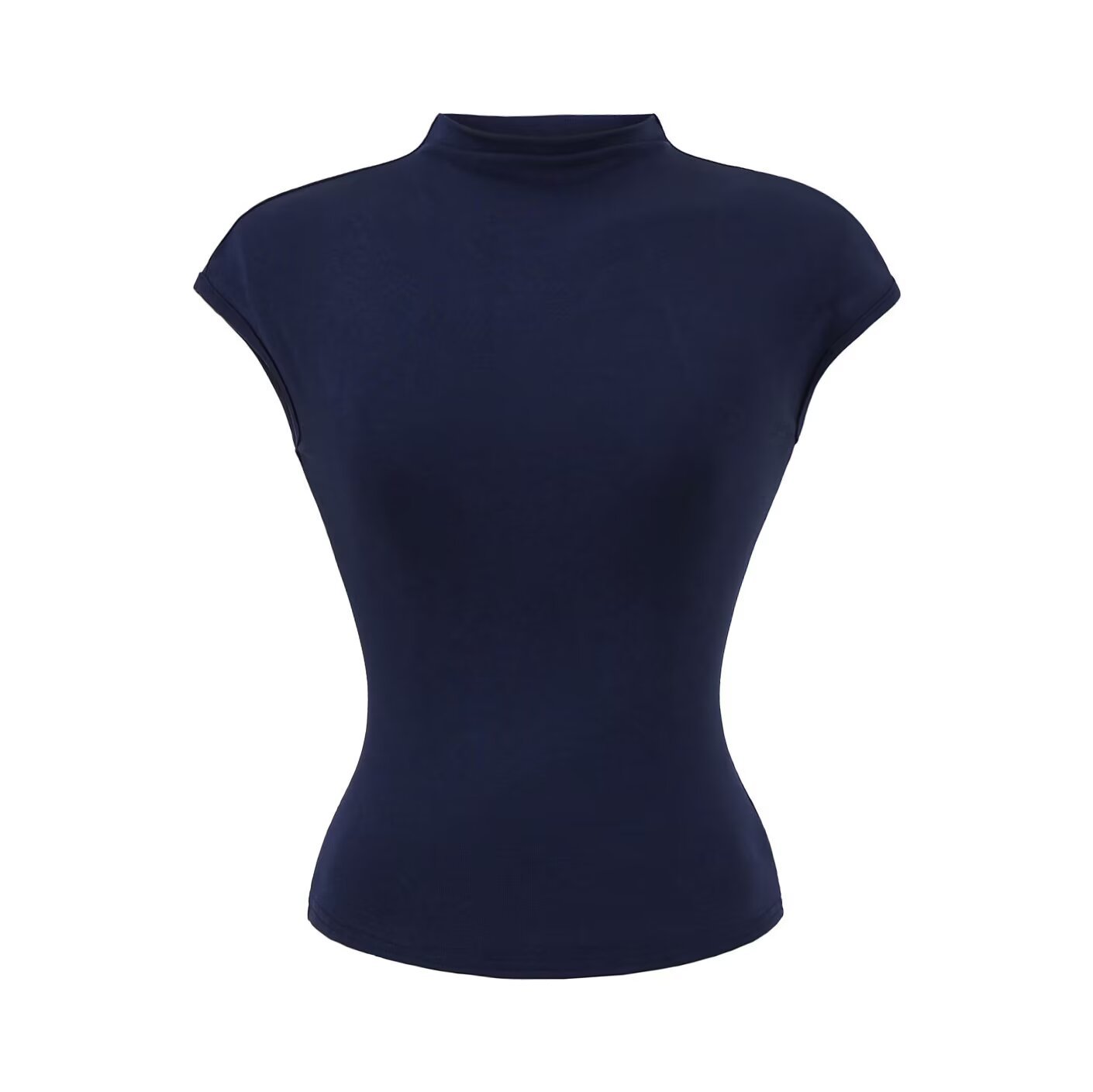 여성을위한 오른쪽 어깨 하프 터틀넥 반팔 티셔츠 2025 여름 새로운 슬림 섹시한 탄성 작은 플라잉 슬리브 탑 티셔츠스토어 가기