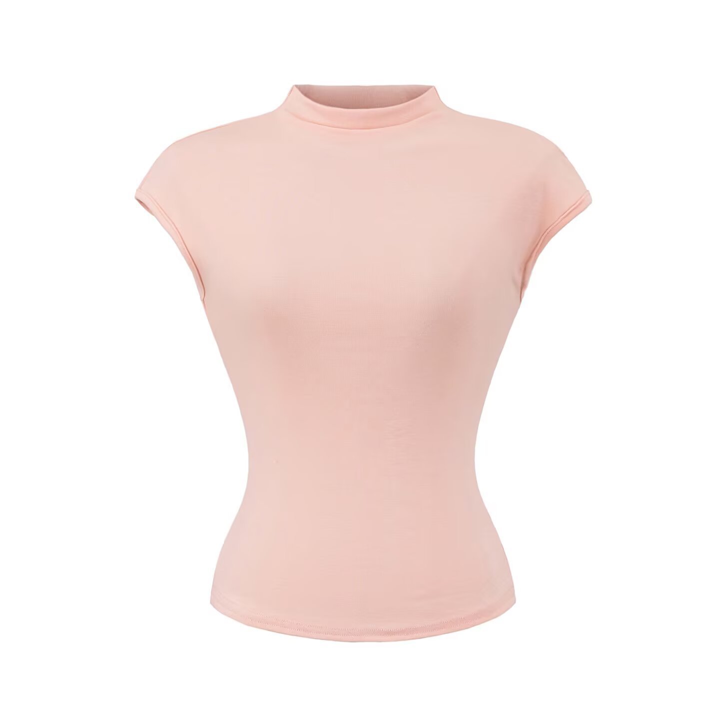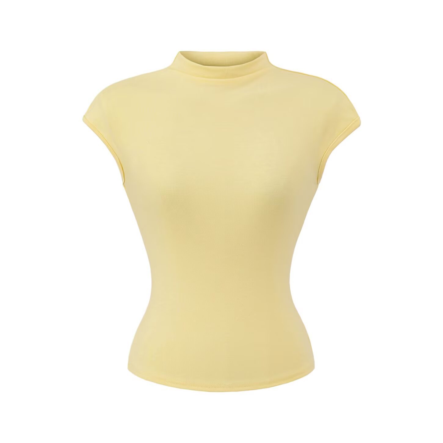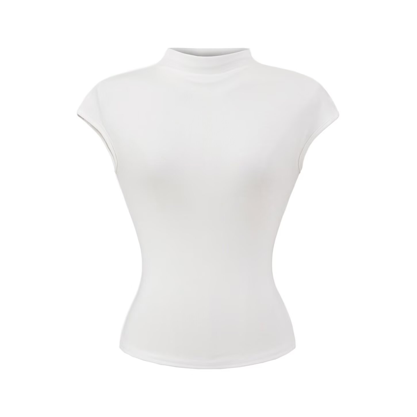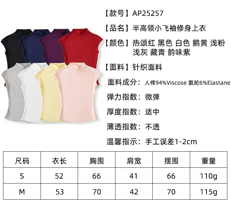 여성을위한 오른쪽 어깨 하프 터틀넥 반팔 티셔츠 2025 여름 새로운 슬림 섹시한 탄성 작은 플라잉 슬리브 탑 티셔츠