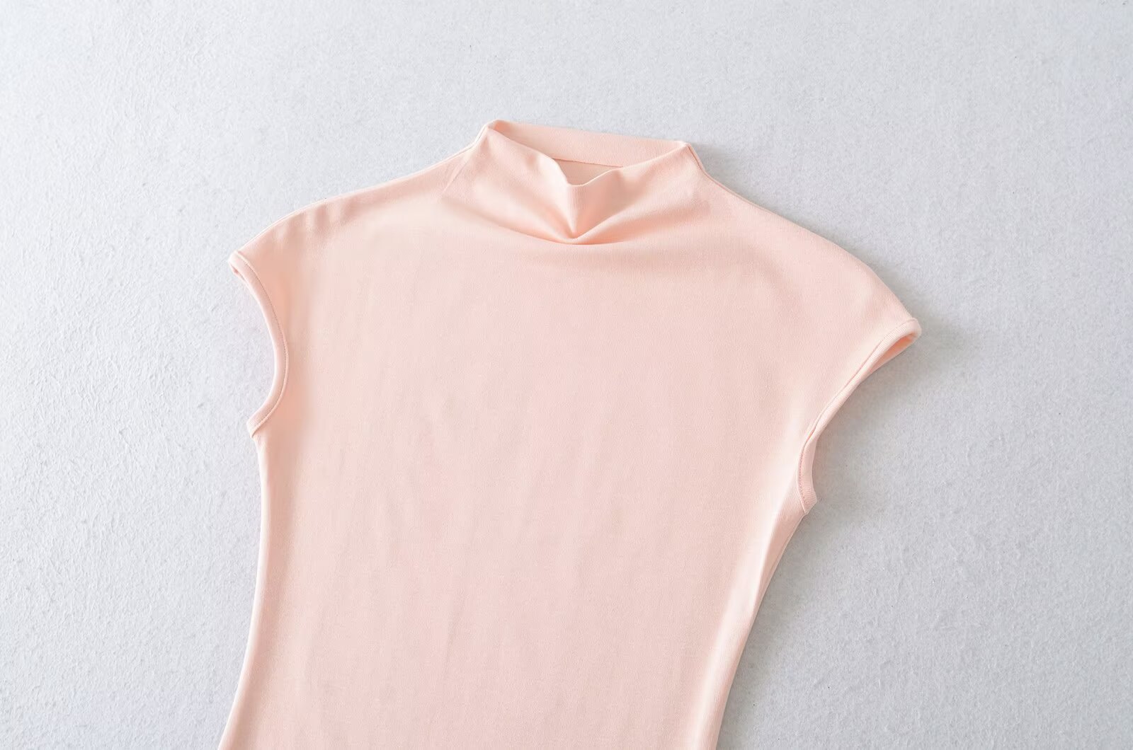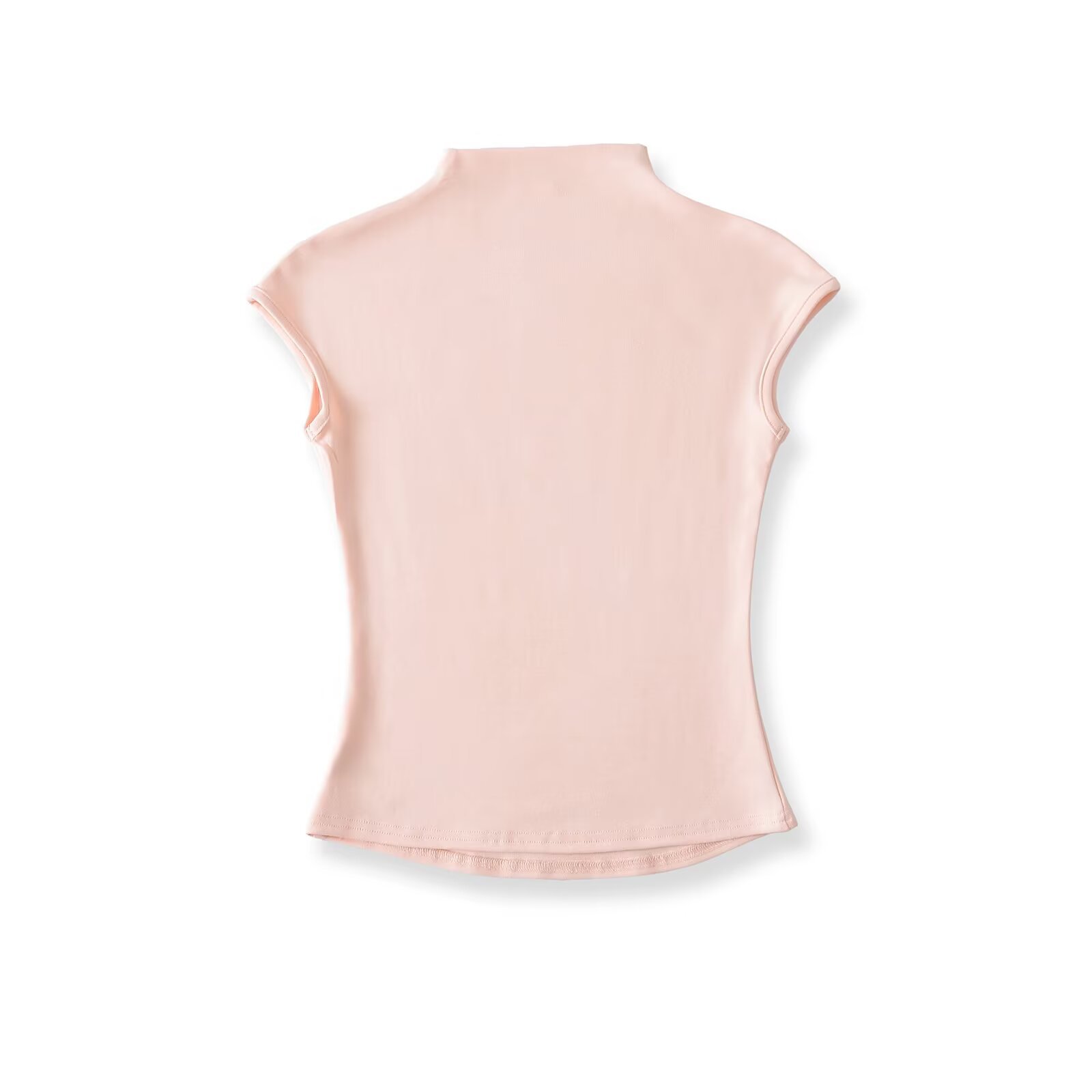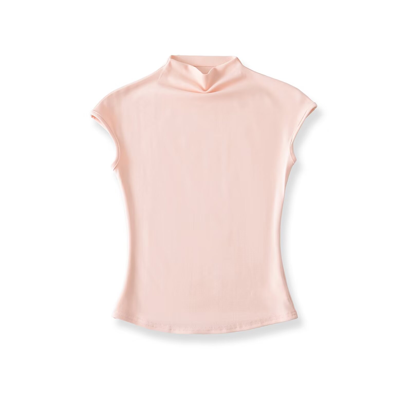 여성을위한 오른쪽 어깨 하프 터틀넥 반팔 티셔츠 2025 여름 새로운 슬림 섹시한 탄성 작은 플라잉 슬리브 탑 티셔츠