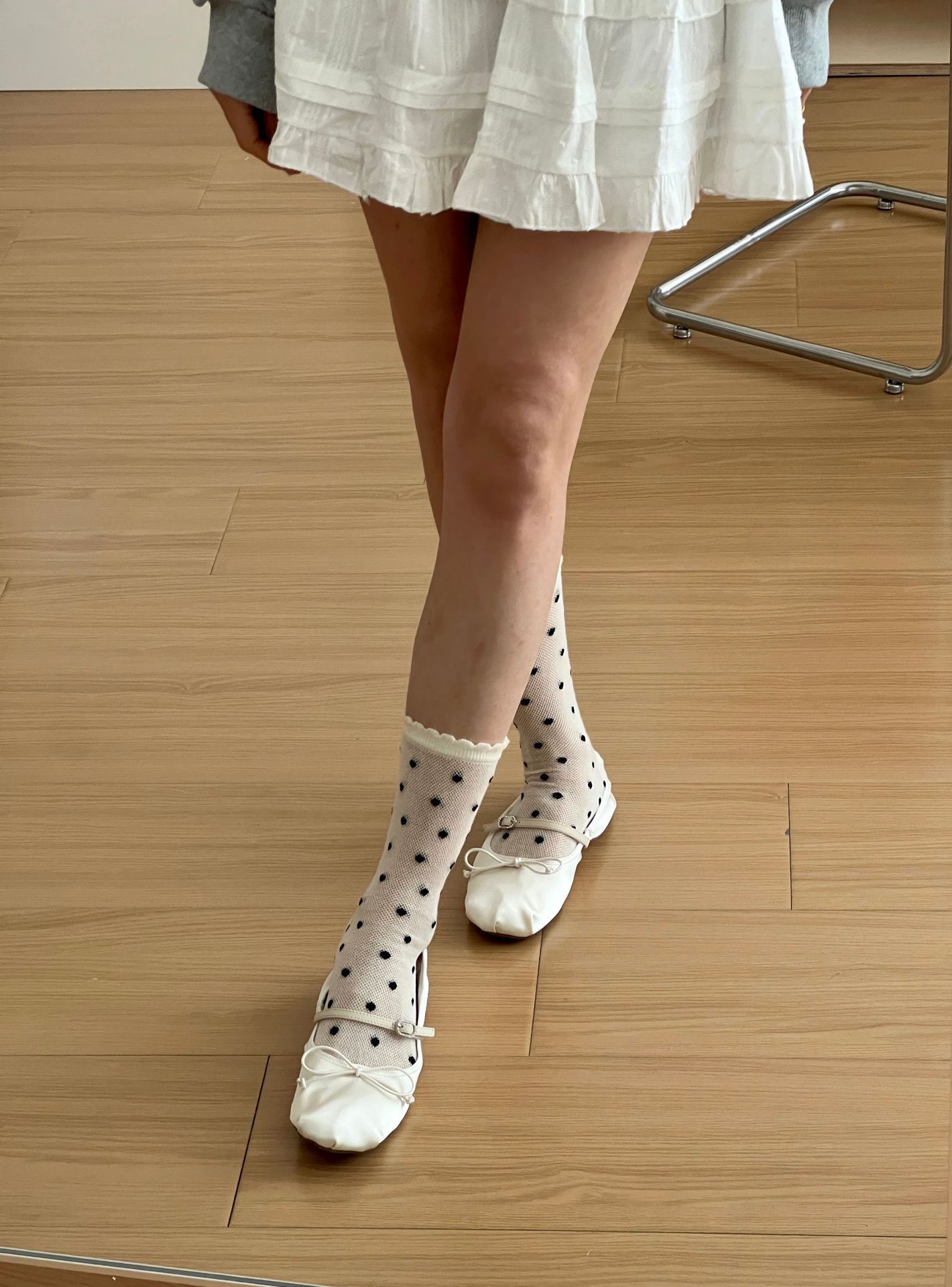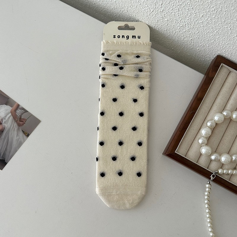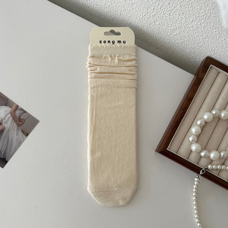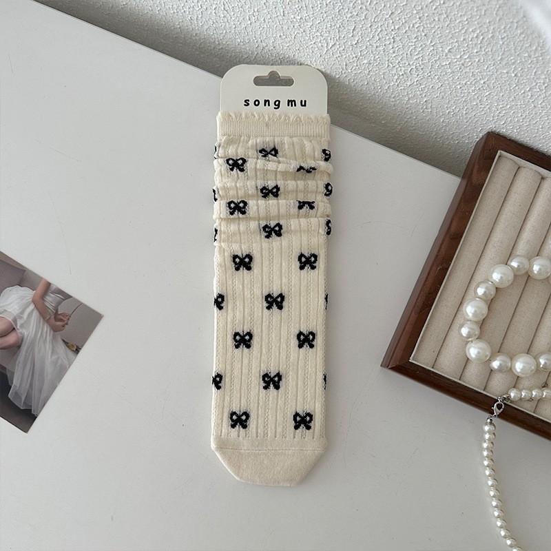 메쉬 보우 양말 여성용 종아리 중간 양말 여름 얇은 면 한국식 일본식 통기성 발레 스타일 여름 스타킹
