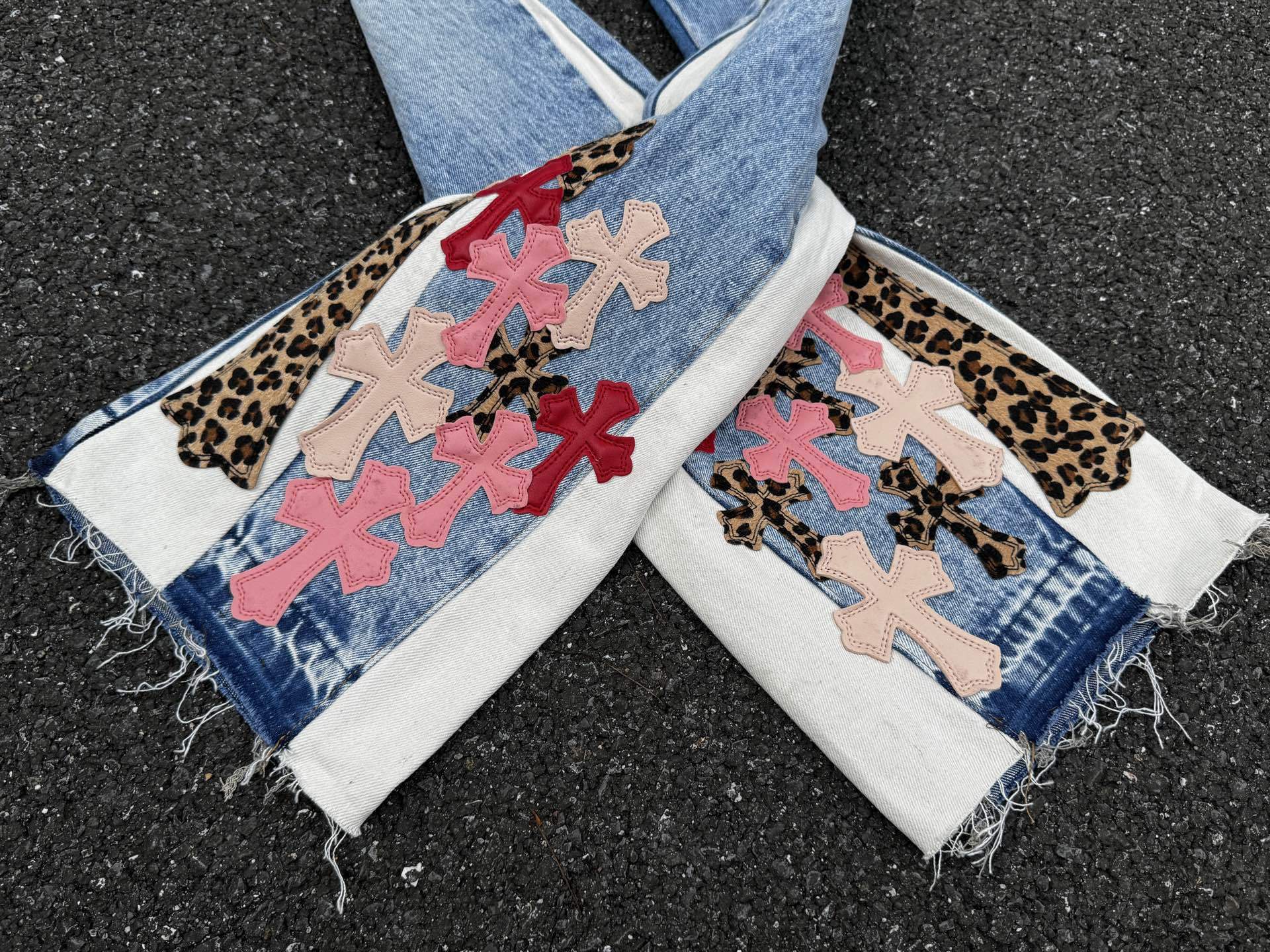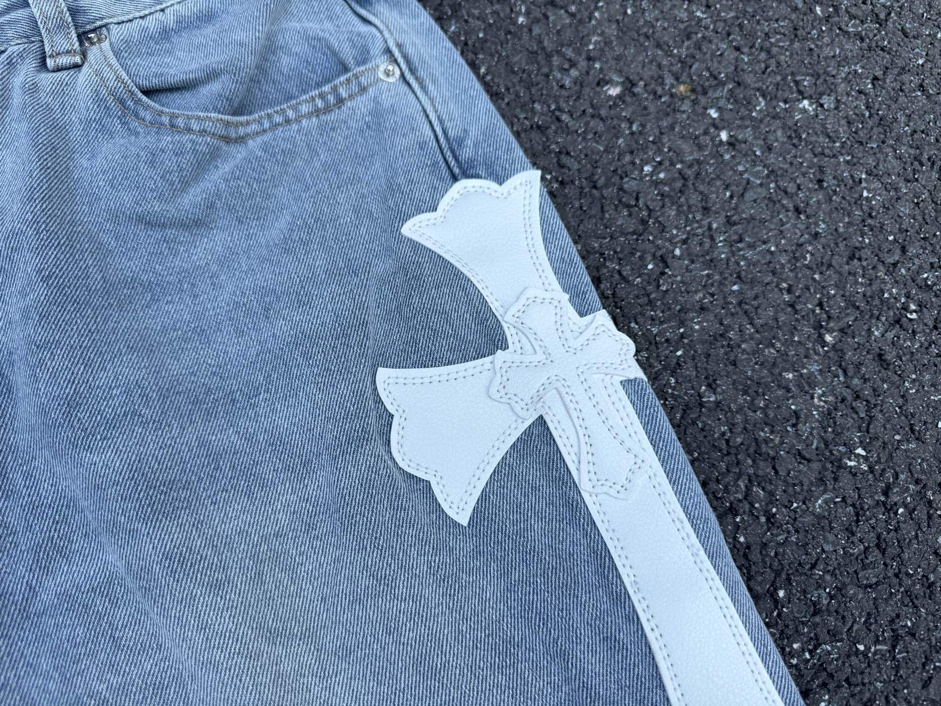 고급형 GA 크로 스티치 레깅스 워싱 스플라이싱 데님 팬츠스토어 가기