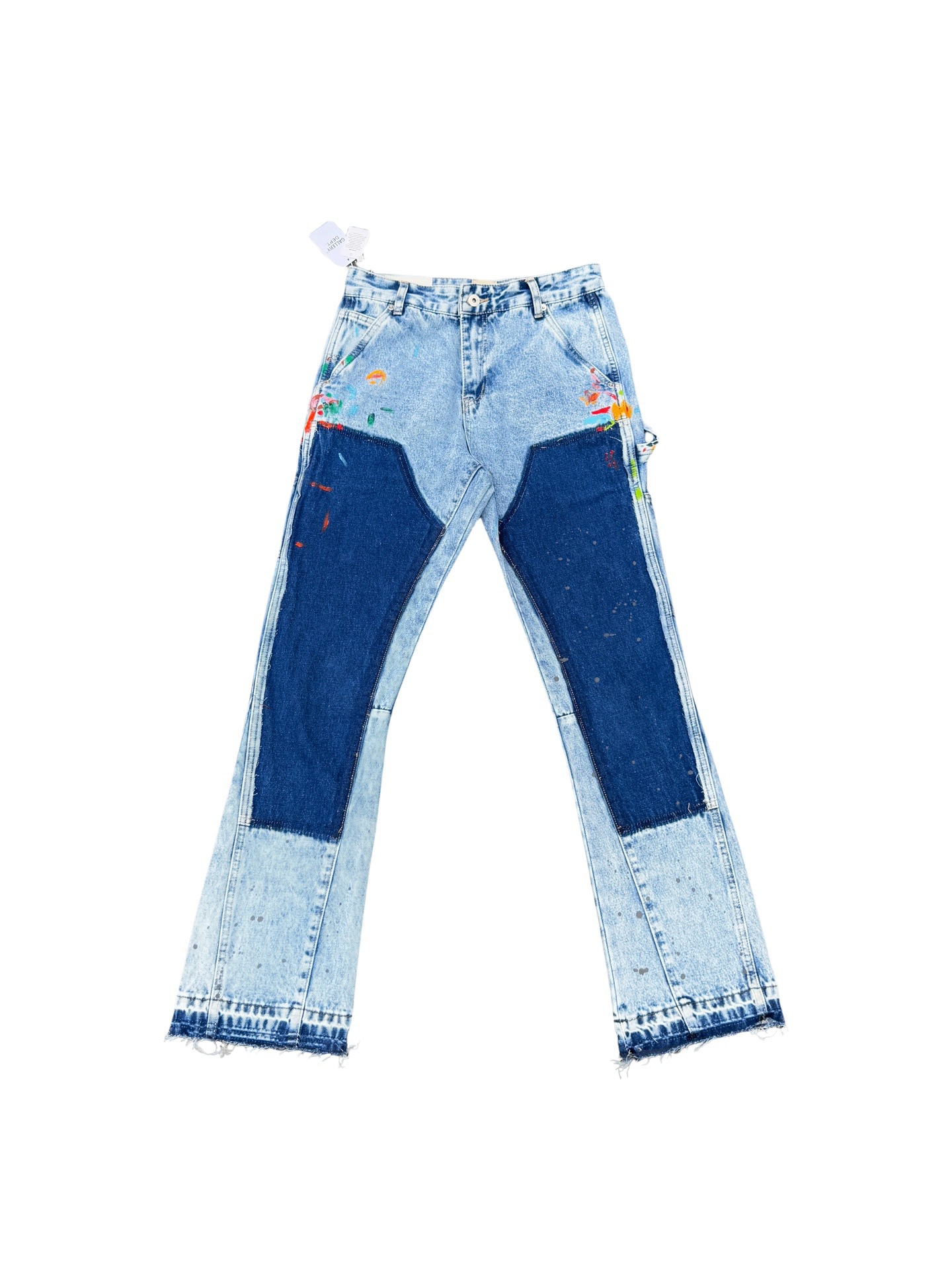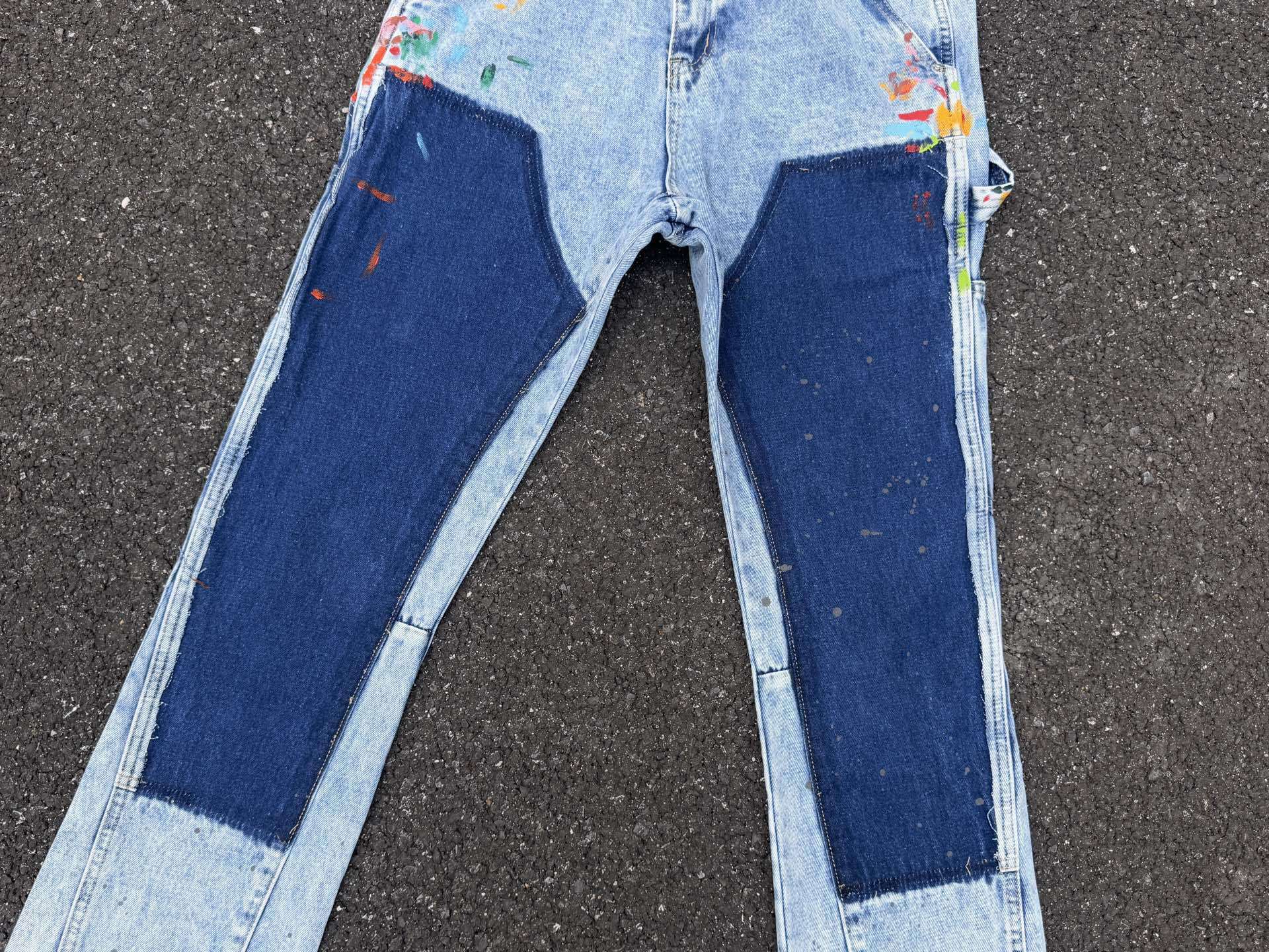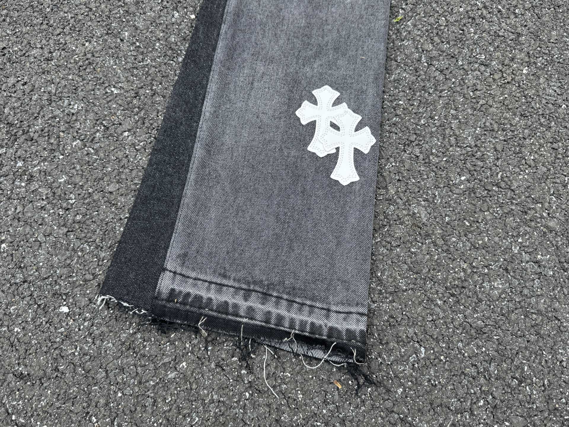 고급형 GA 크로 스티치 레깅스 워싱 스플라이싱 데님 팬츠