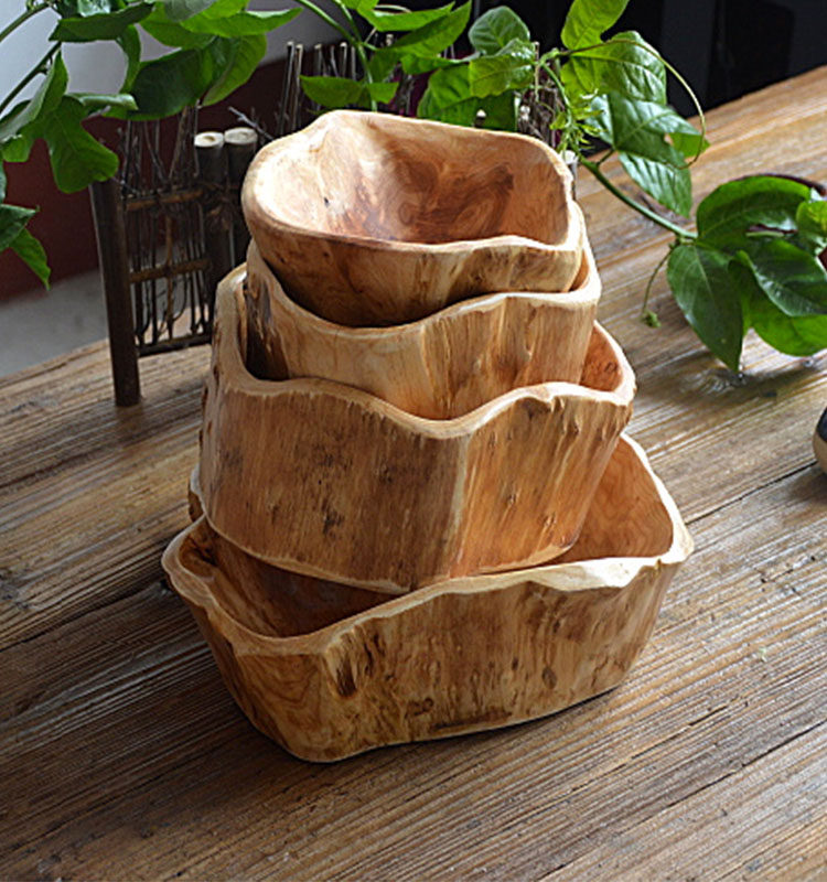 나무 과일 접시, 과일 그릇, 창의적인 가정용 나무 말린 과일 접시, 단단한 나무 과일 바구니, 거실 나무 뿌리 조각 대형 과일 접시, 무료 배송
