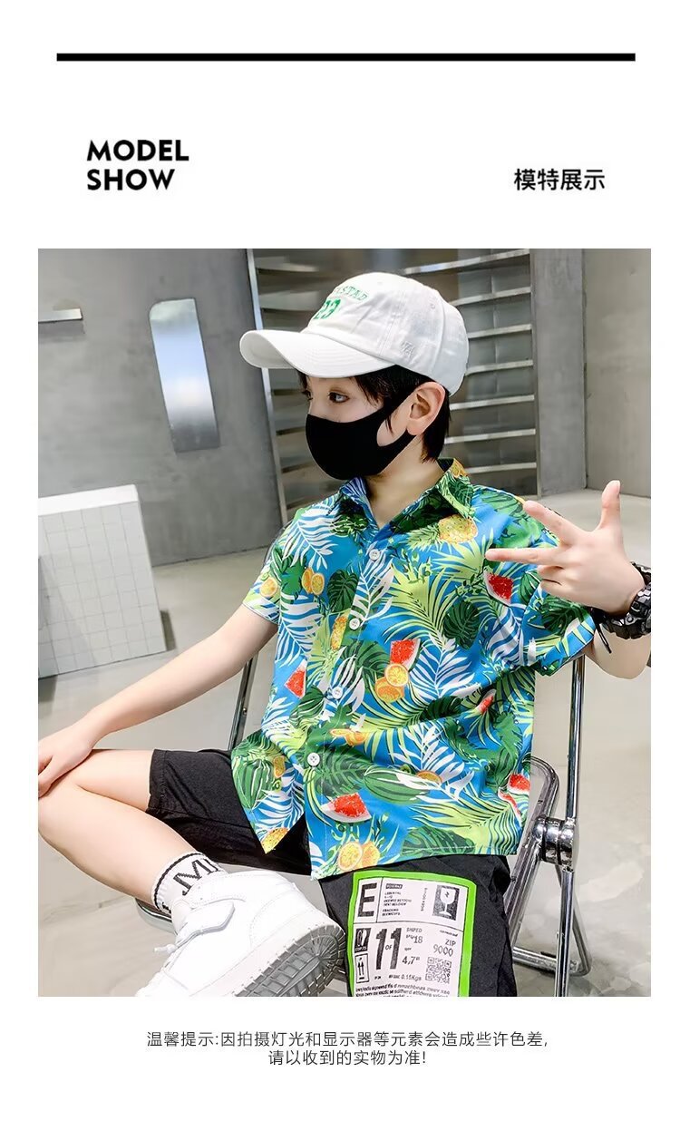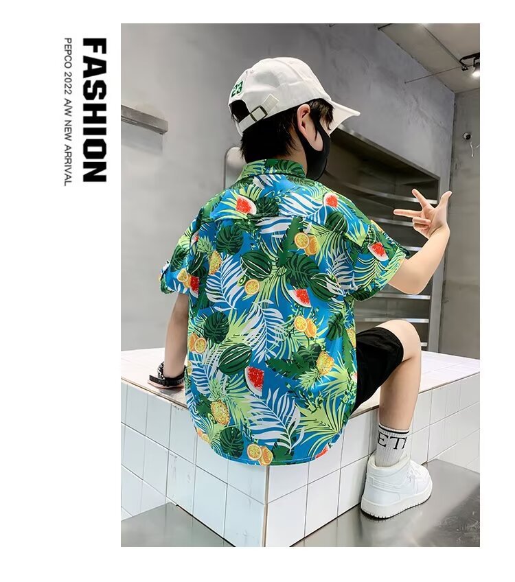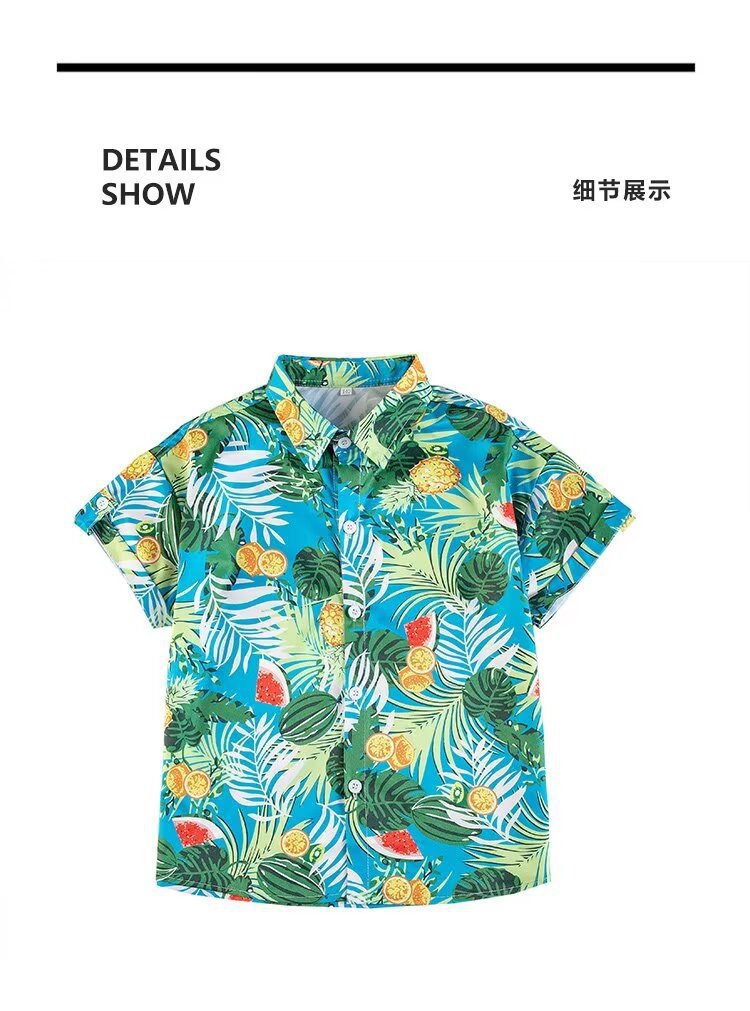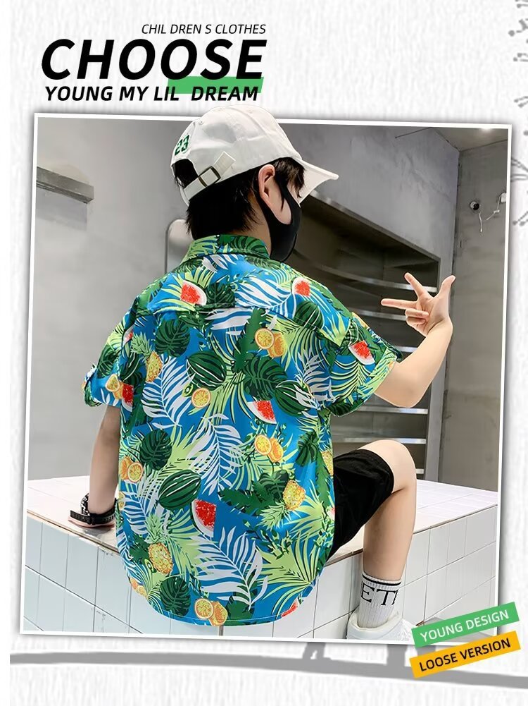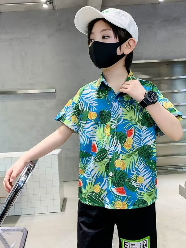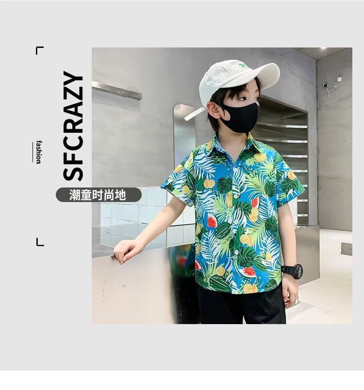 아동복 소년 반팔 셔츠 아동 봄 여름 꽃무늬 셔츠 2025 신생아 여름 옷 유행상의