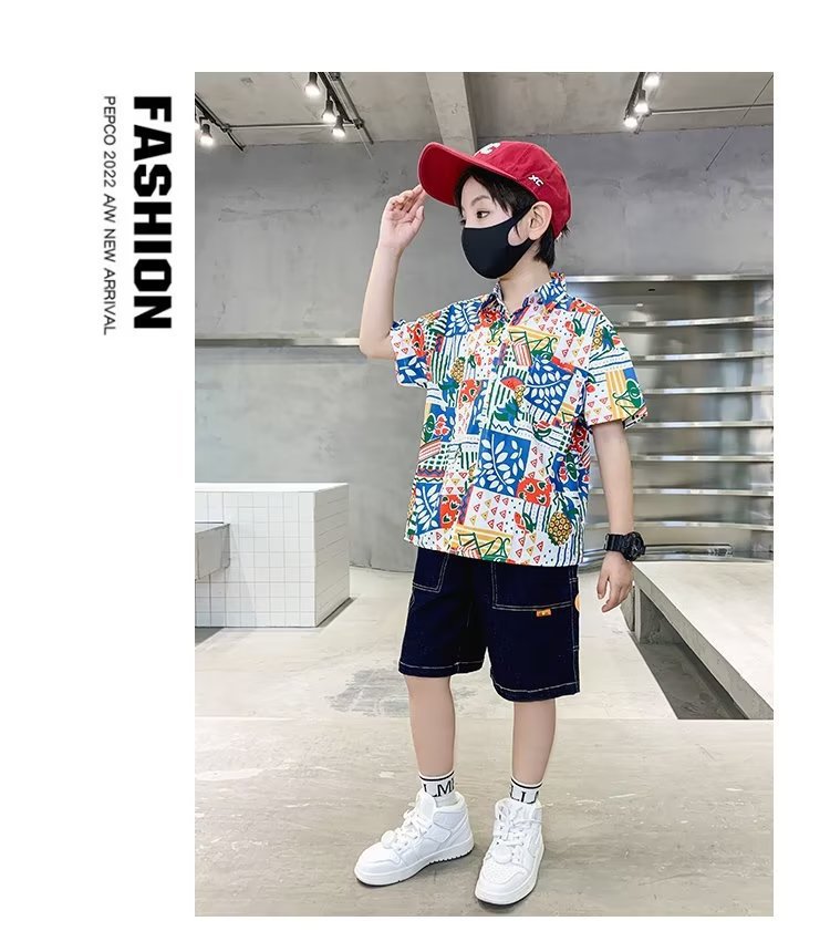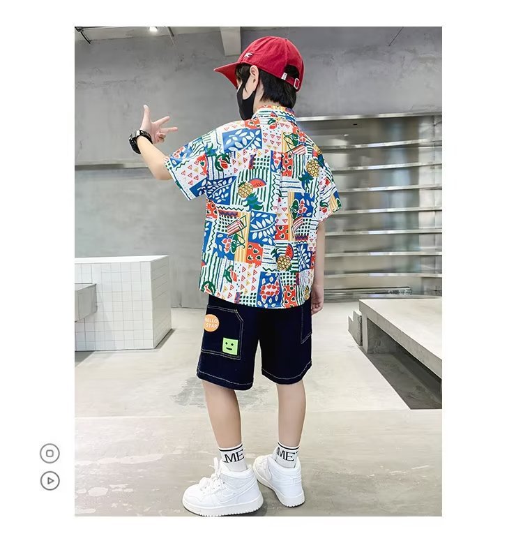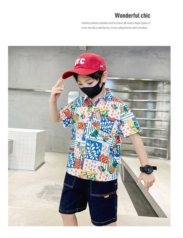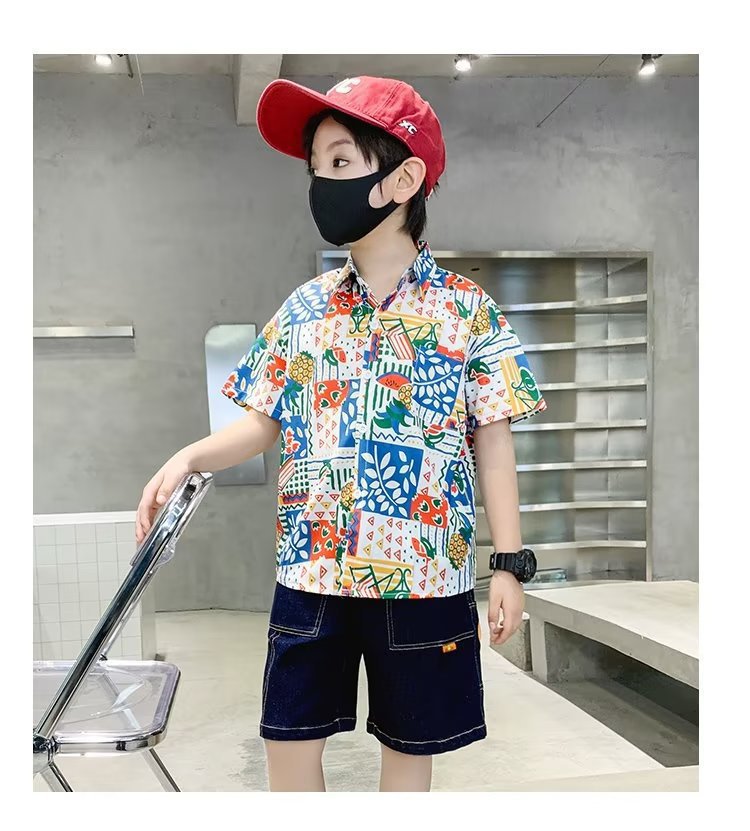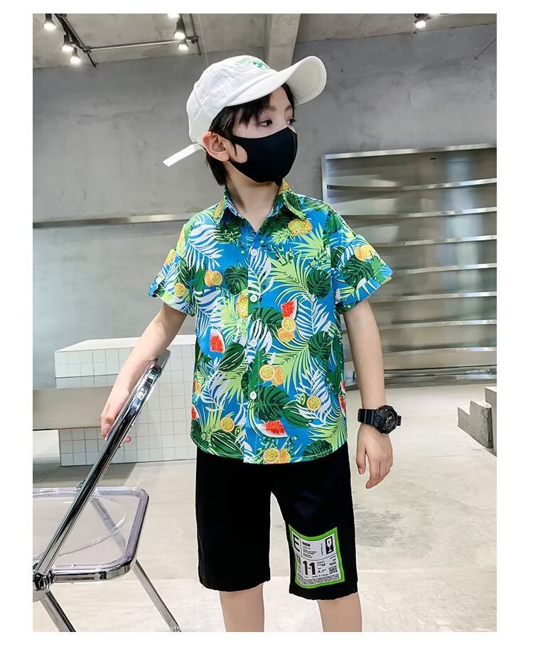 아동복 소년 반팔 셔츠 아동 봄 여름 꽃무늬 셔츠 2025 신생아 여름 옷 유행상의