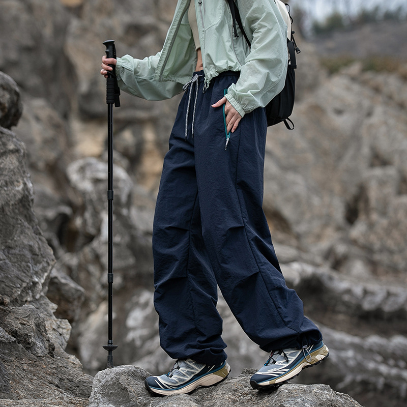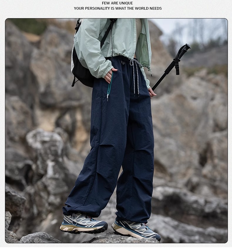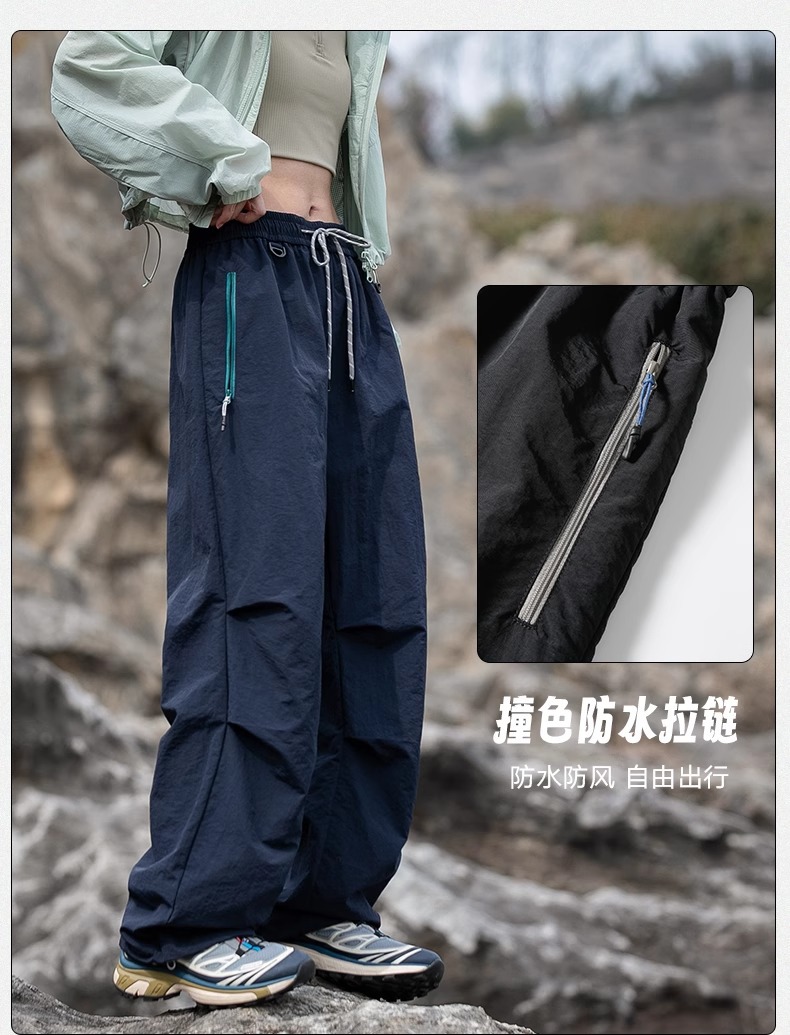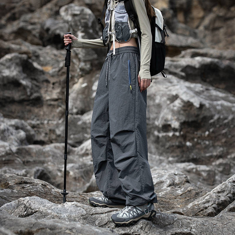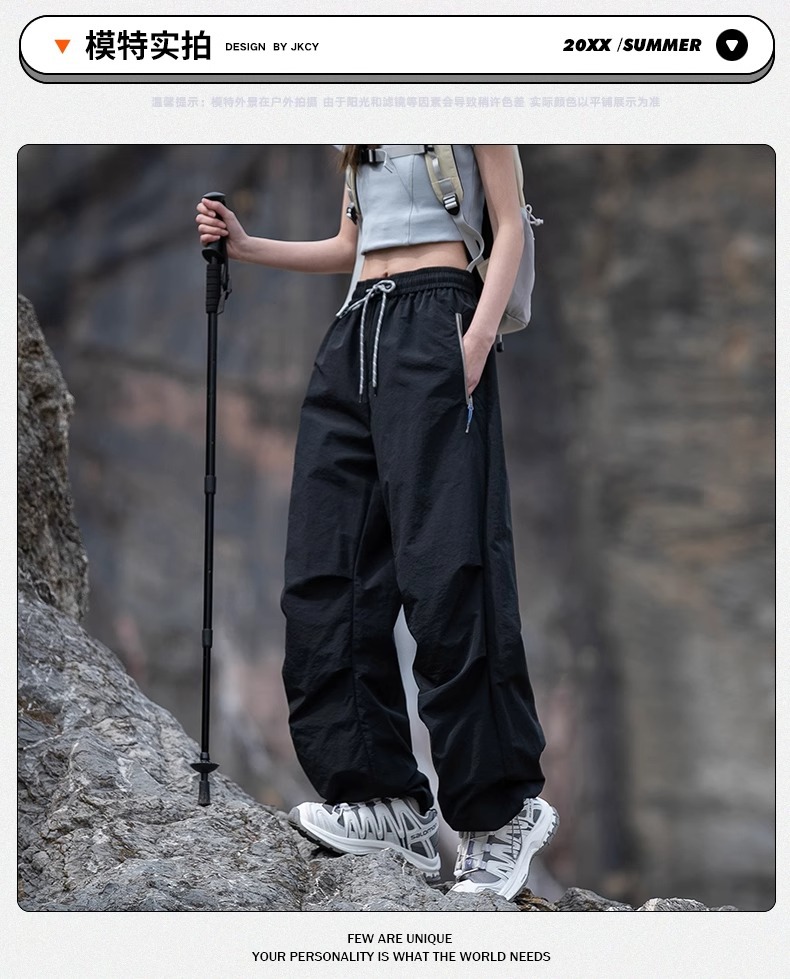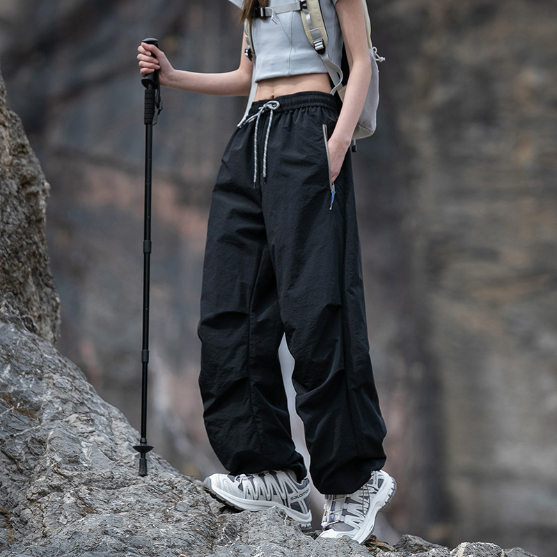 NASA 트렌디 한 브랜드 충전 바지 남자 여름 얇은 야외 스포츠 스트레이트 배럴 바지 느슨한 넓은 다리 아이스 실크 캐주얼 바지
