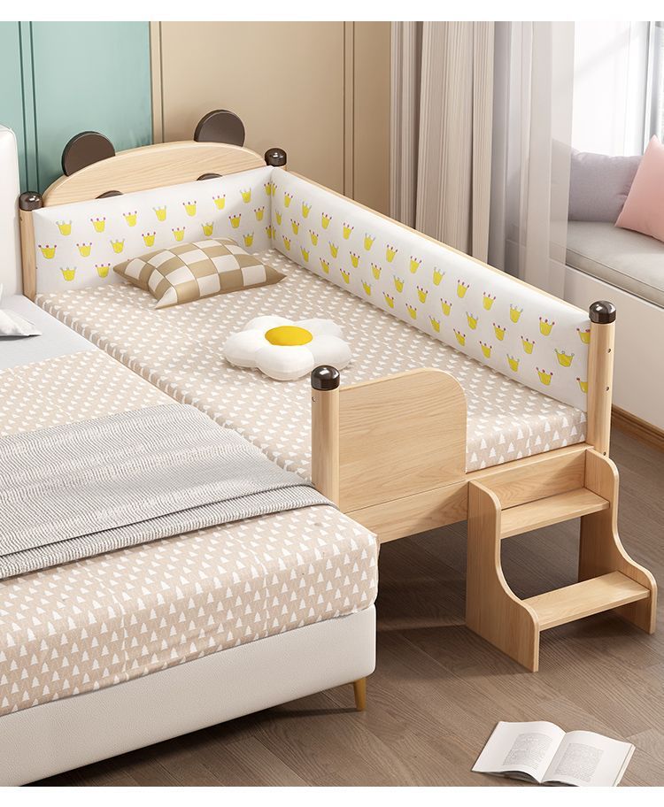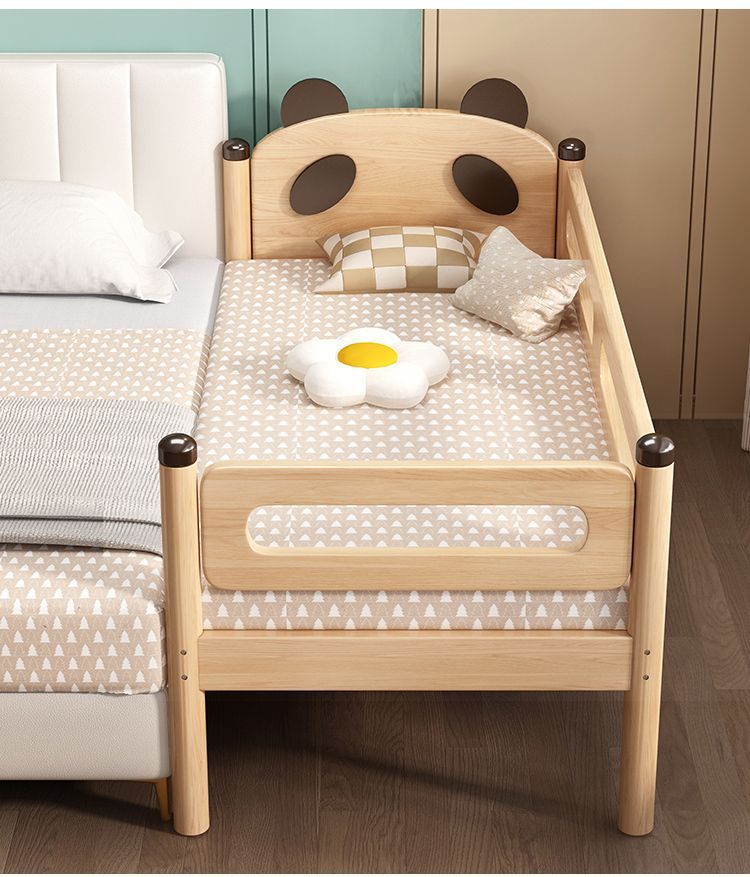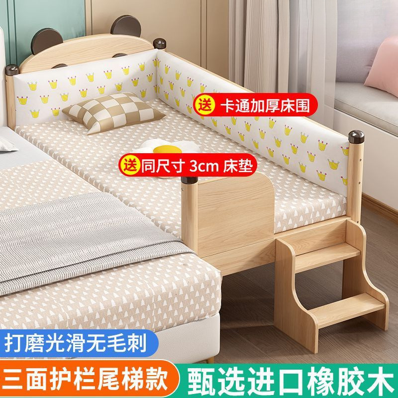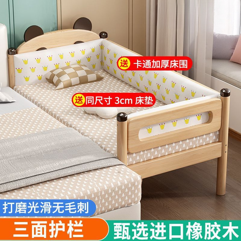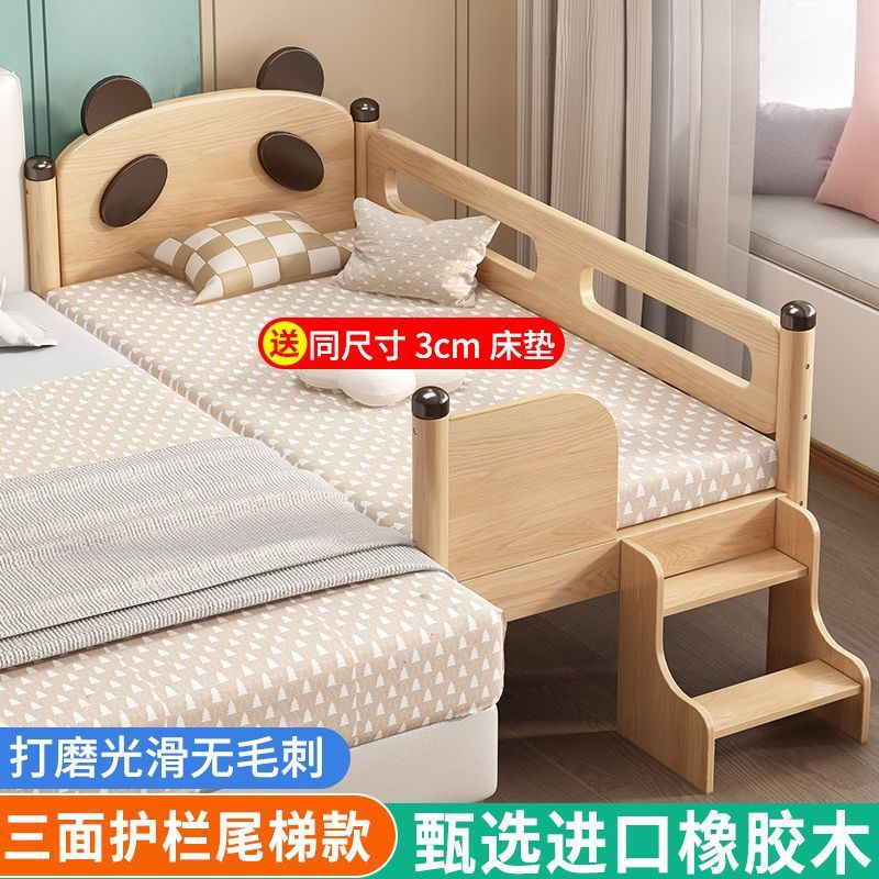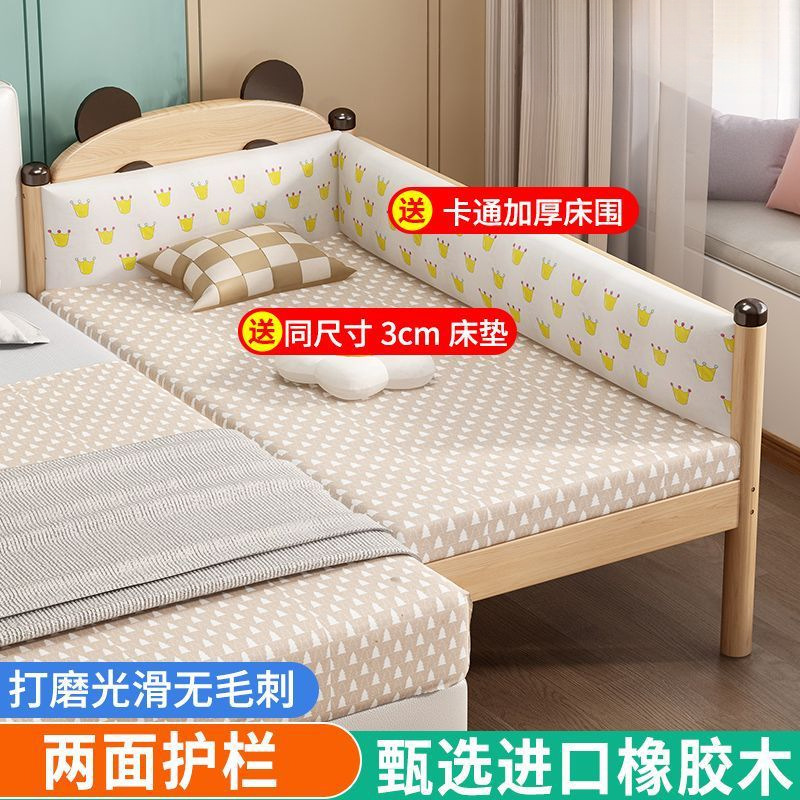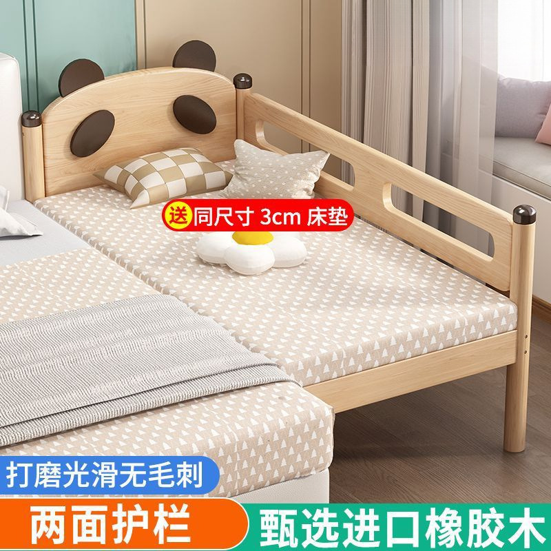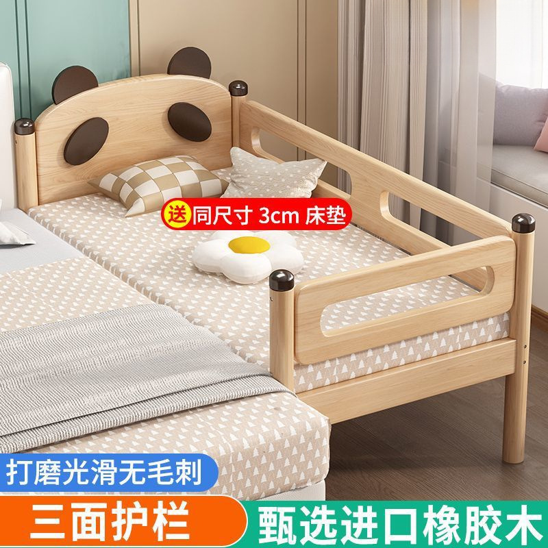 원목 어린이 침대, 아기 싱글 침대, 아기 침대 옆 고무나무 두꺼운 접합 대형 침대