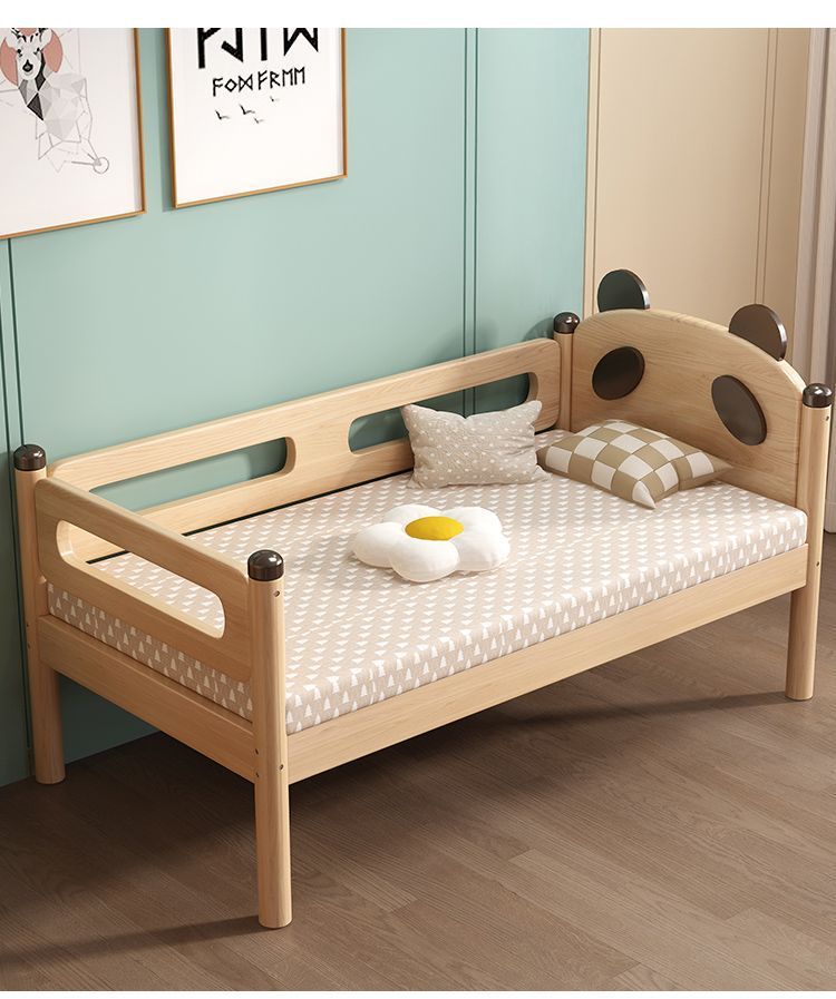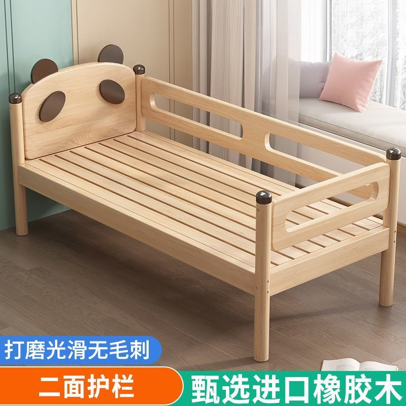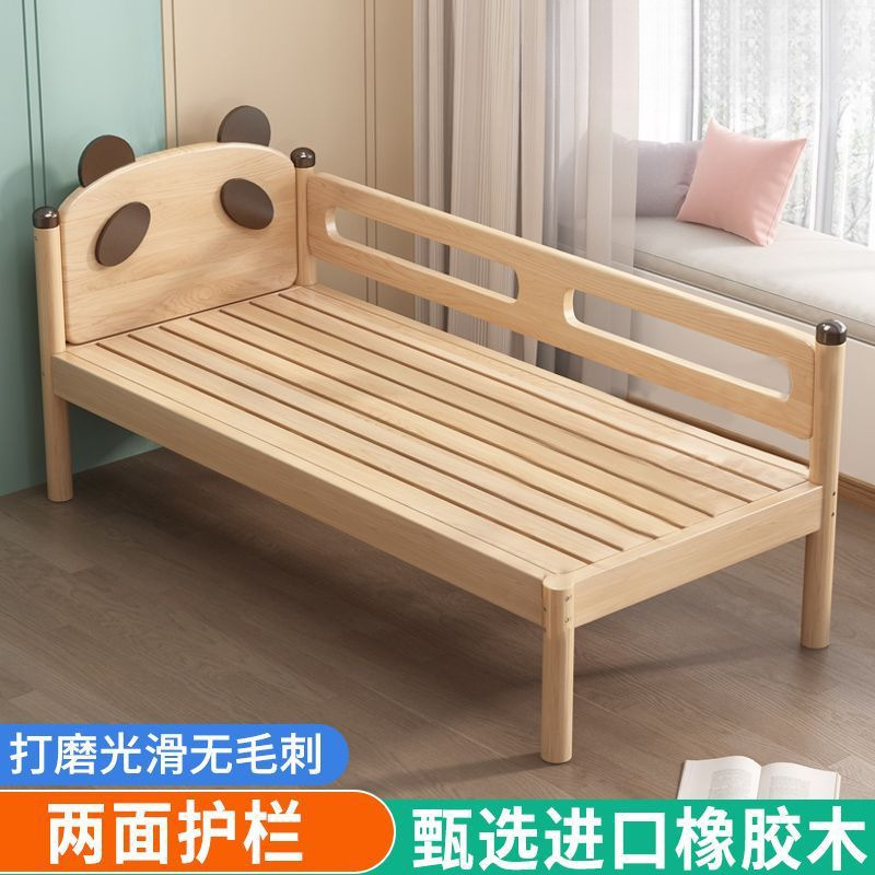 원목 어린이 침대, 아기 싱글 침대, 아기 침대 옆 고무나무 두꺼운 접합 대형 침대스토어 가기