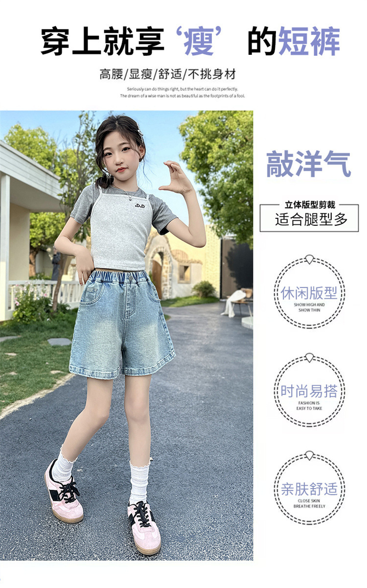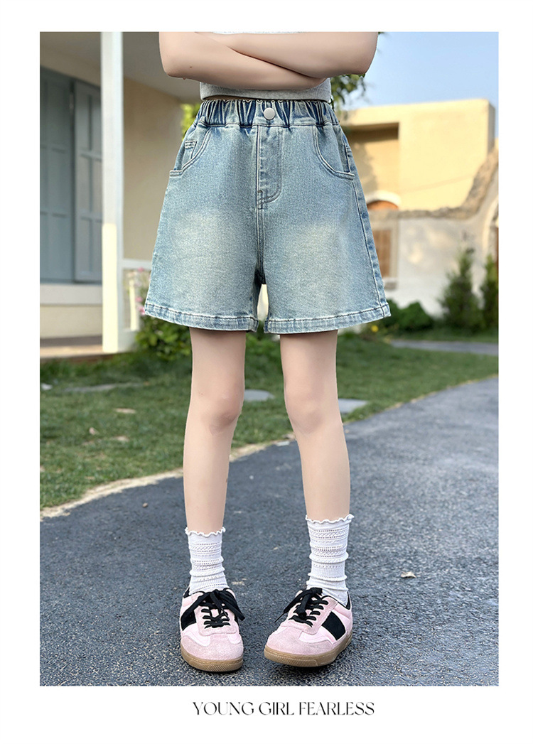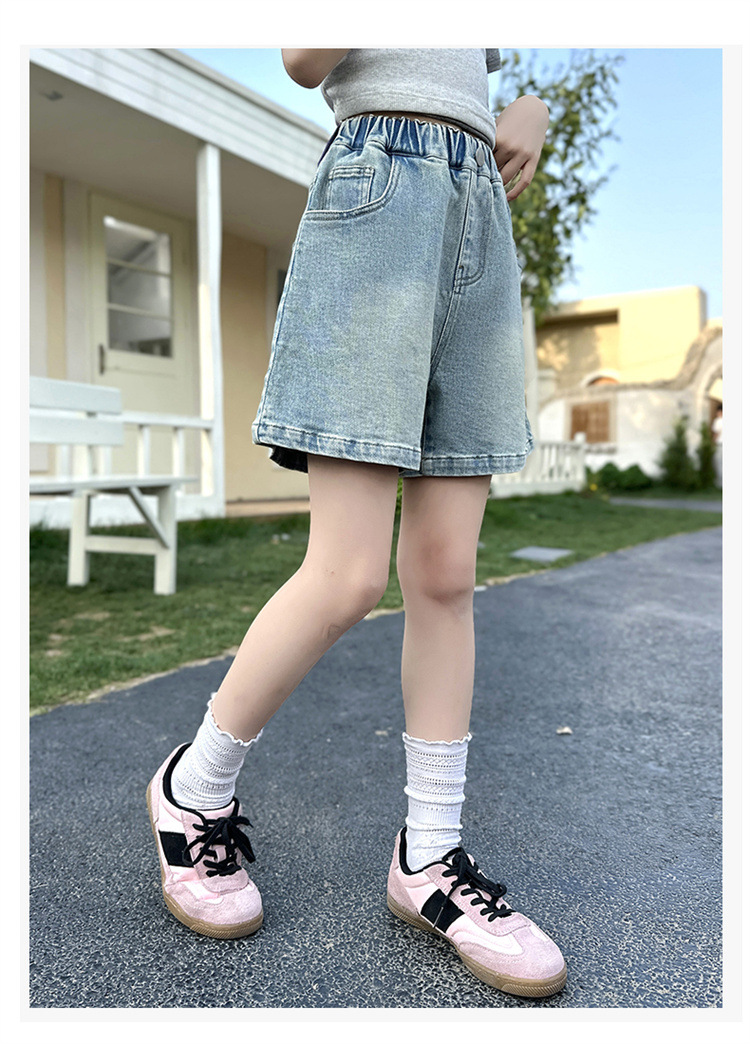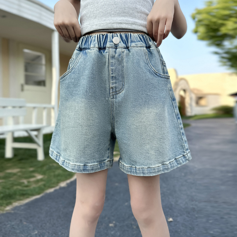 여자 데님 반바지 2025 새로운 어린이 여름 겉옷 유행 바지 여자 얇은 스타일 스트리트 여름 옷스토어 가기