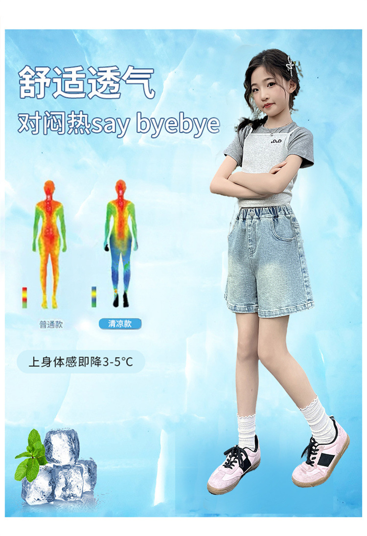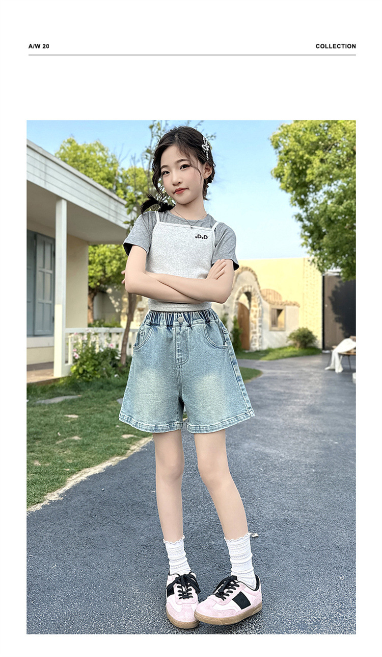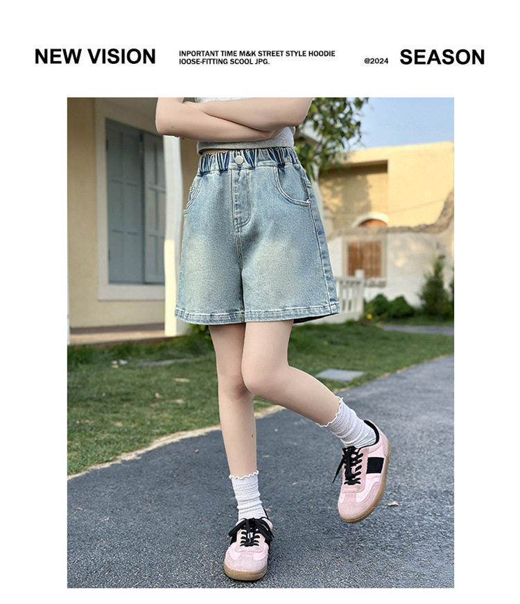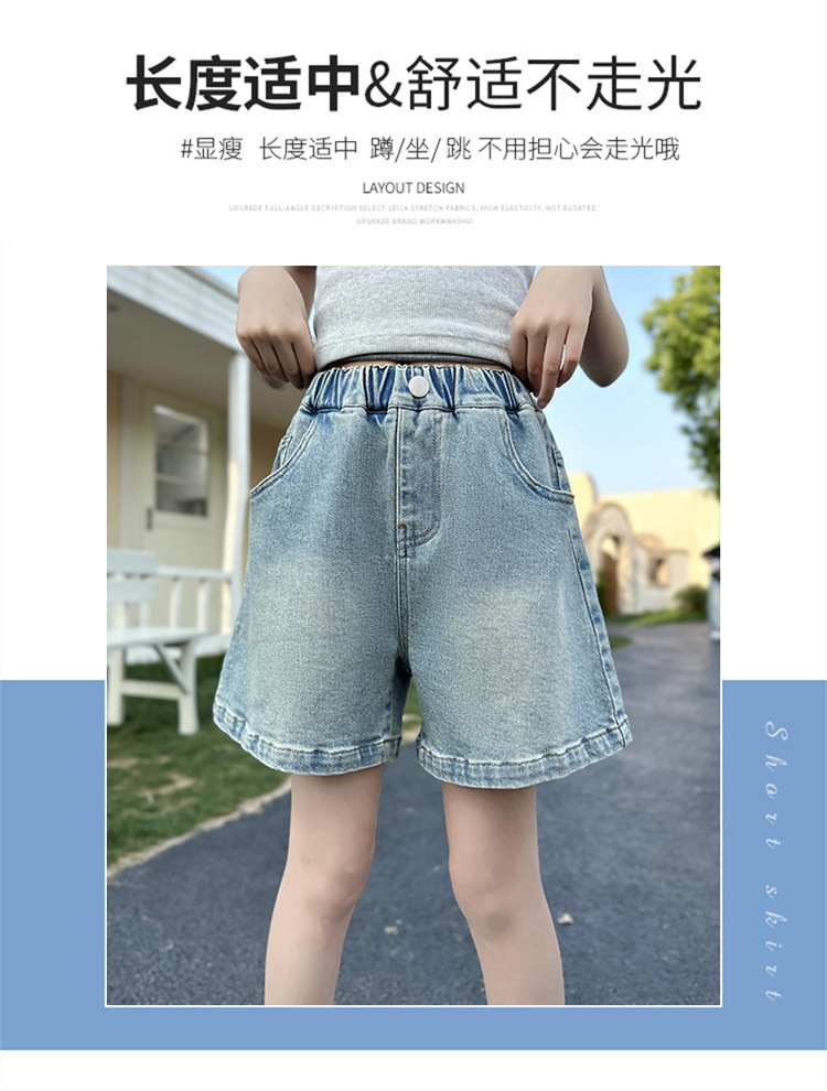 여자 데님 반바지 2025 새로운 어린이 여름 겉옷 유행 바지 여자 얇은 스타일 스트리트 여름 옷스토어 가기