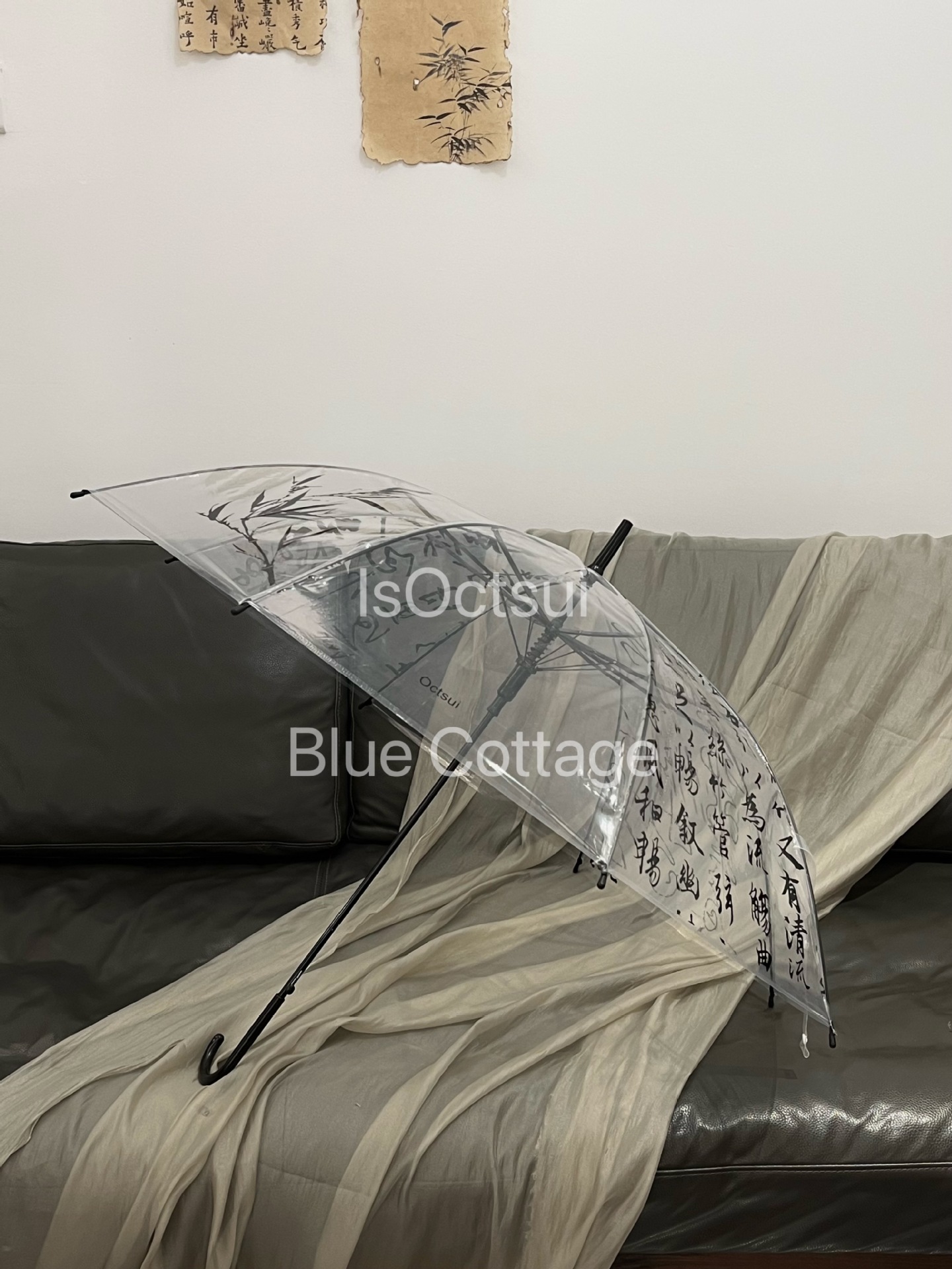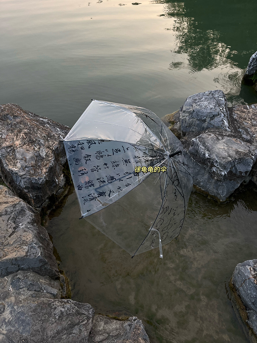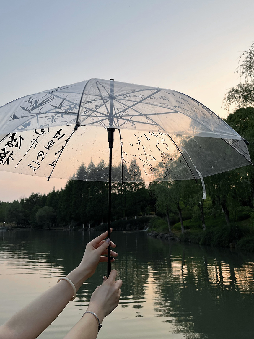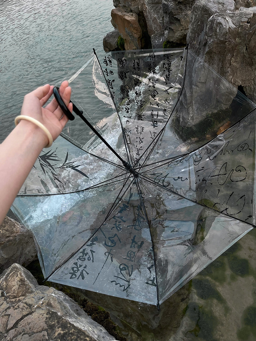 Octsui丨Xishan Muyu Linquan Tingyin 중국 스타일 서예 Lan Ting 서문 대나무 그림 투명 우산스토어 가기