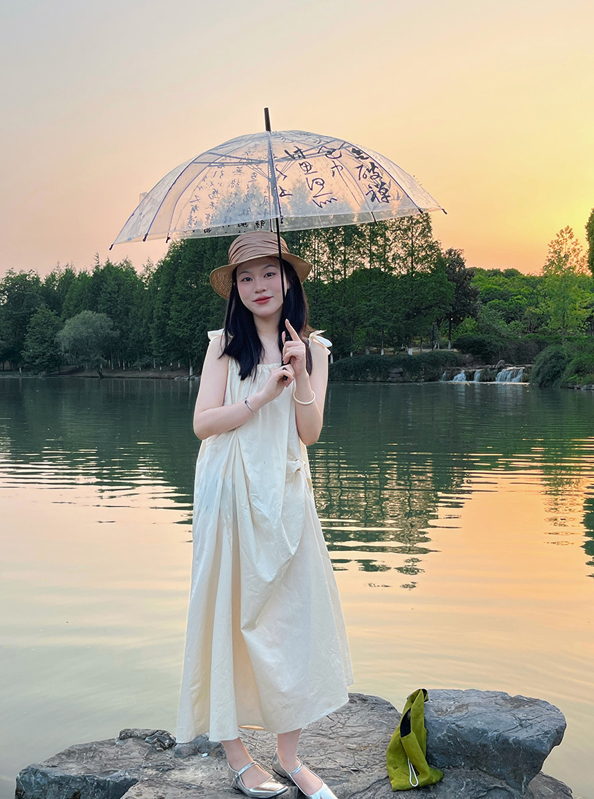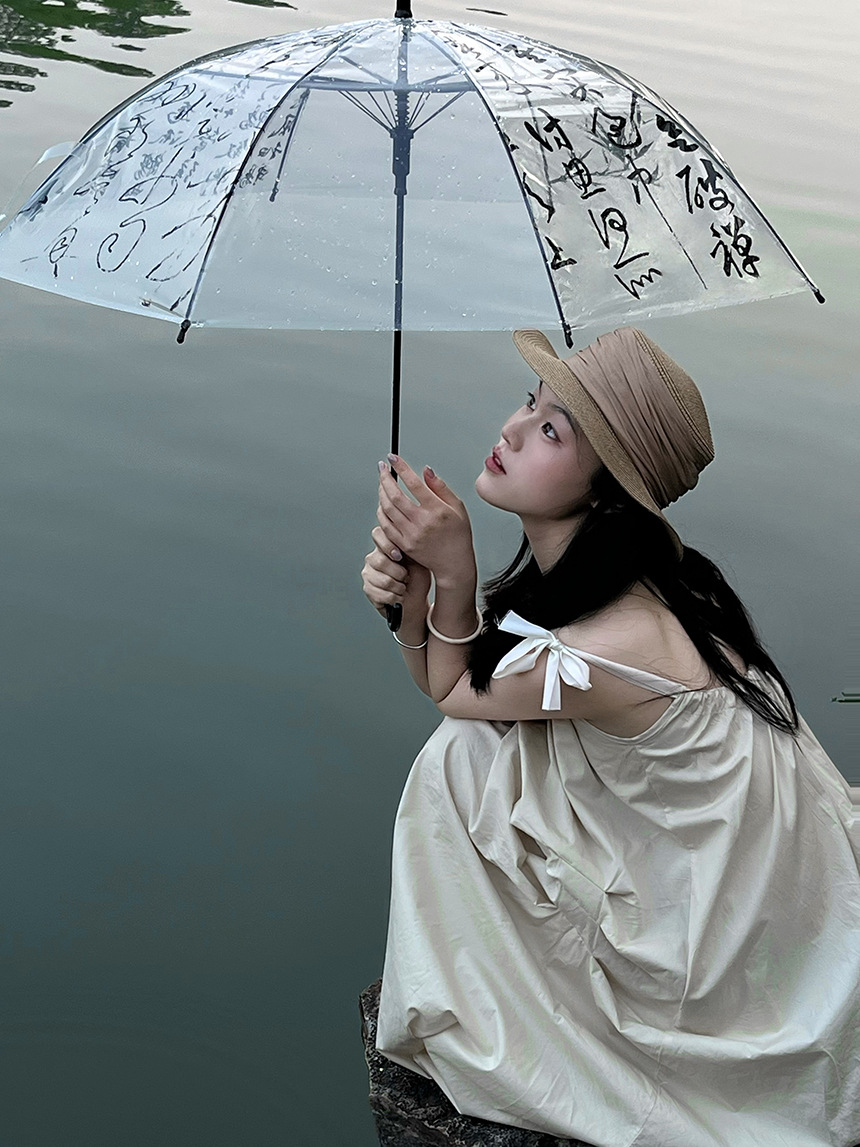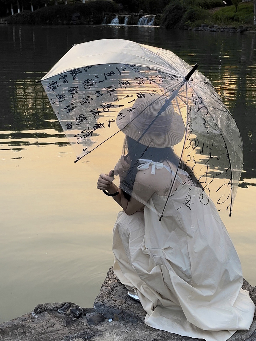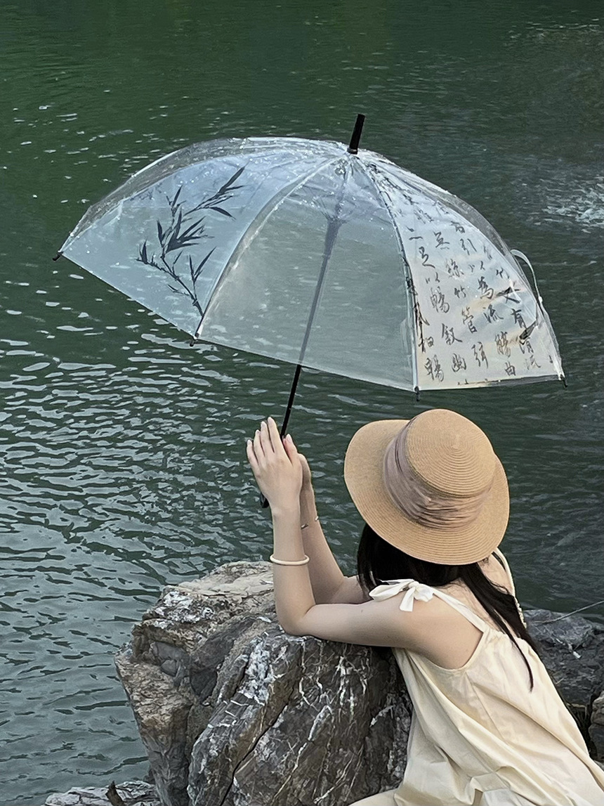 Octsui丨Xishan Muyu Linquan Tingyin 중국 스타일 서예 Lan Ting 서문 대나무 그림 투명 우산