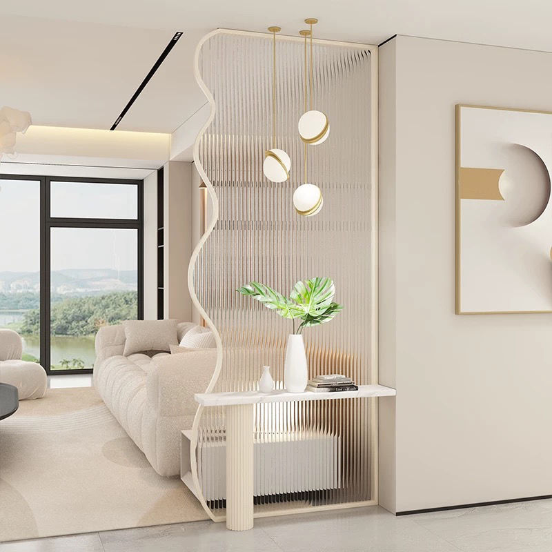 창의적인 크림 스타일의 물결 모양의 스크린 파티션, 현관에 직면한 거실, 현관에 직면한 세면대, 현관 보관 스크린스토어 가기