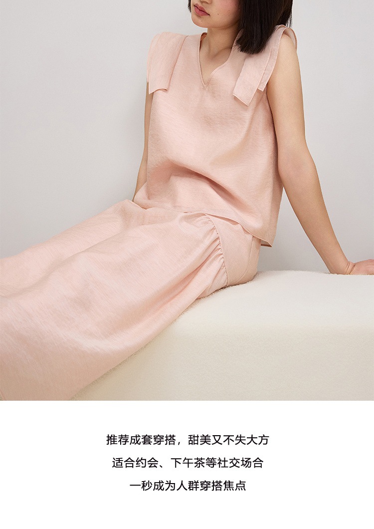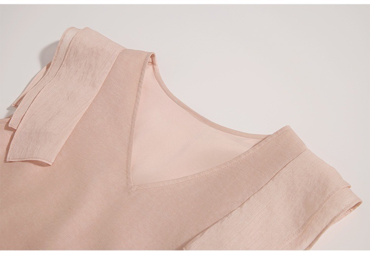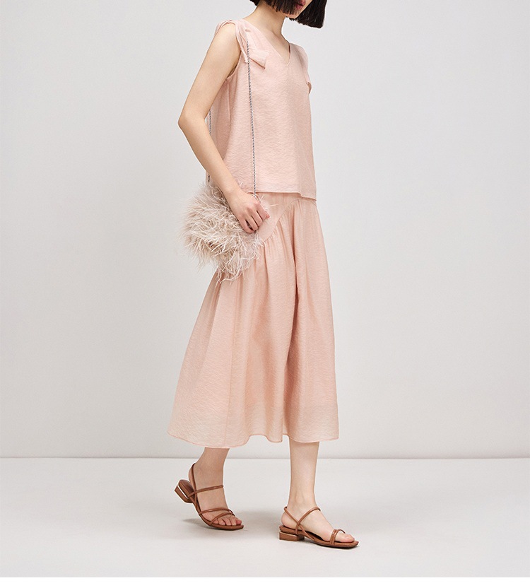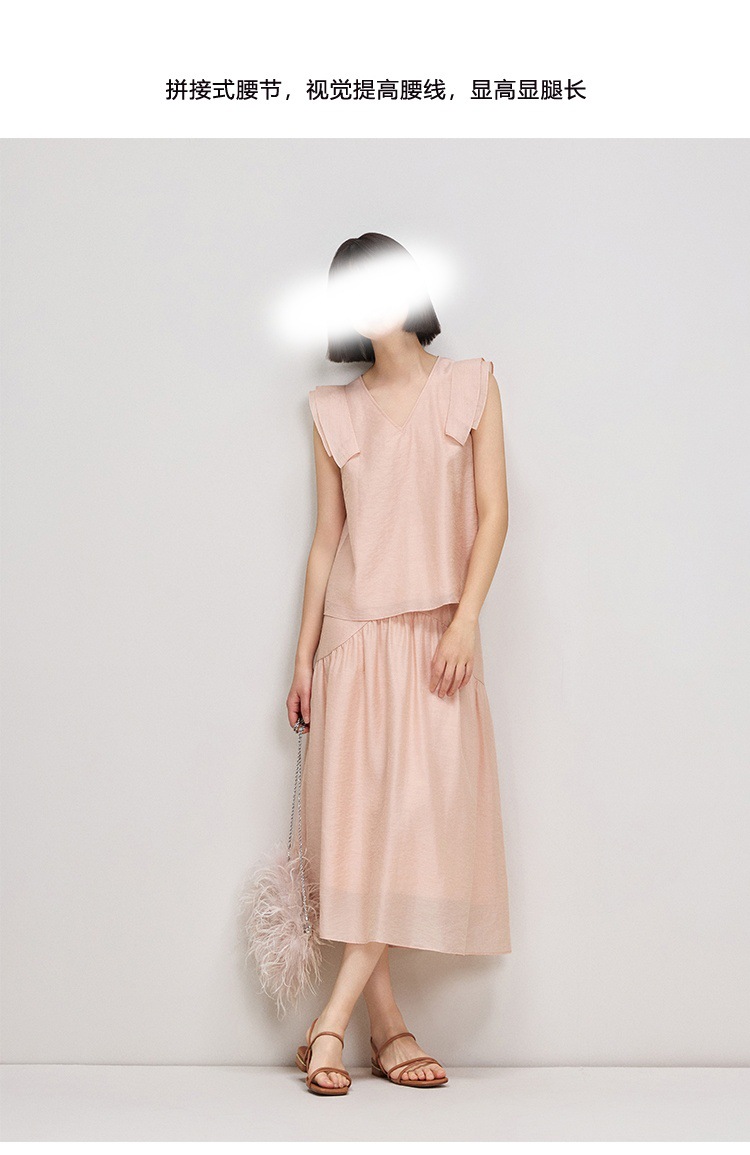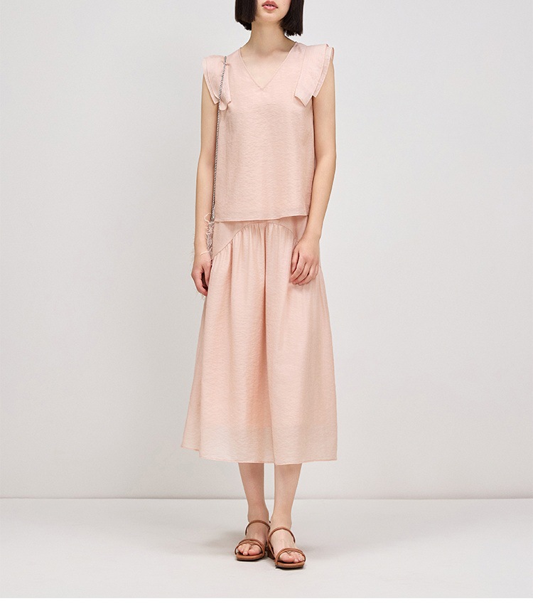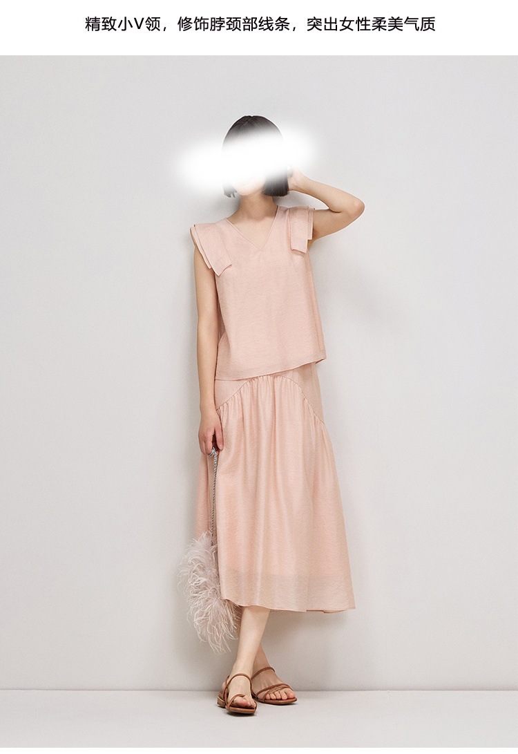 핑크 플라잉 슬리브 셔츠 여성용 V넥 블라우스 스커트 세트 신상 핑크빛 복숭아색 나이를 잊게 하는 투피스 세트스토어 가기