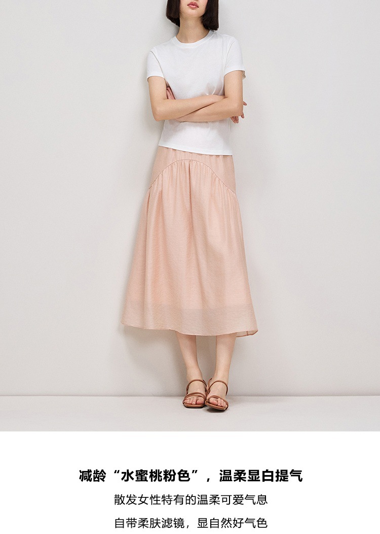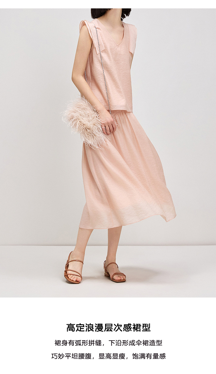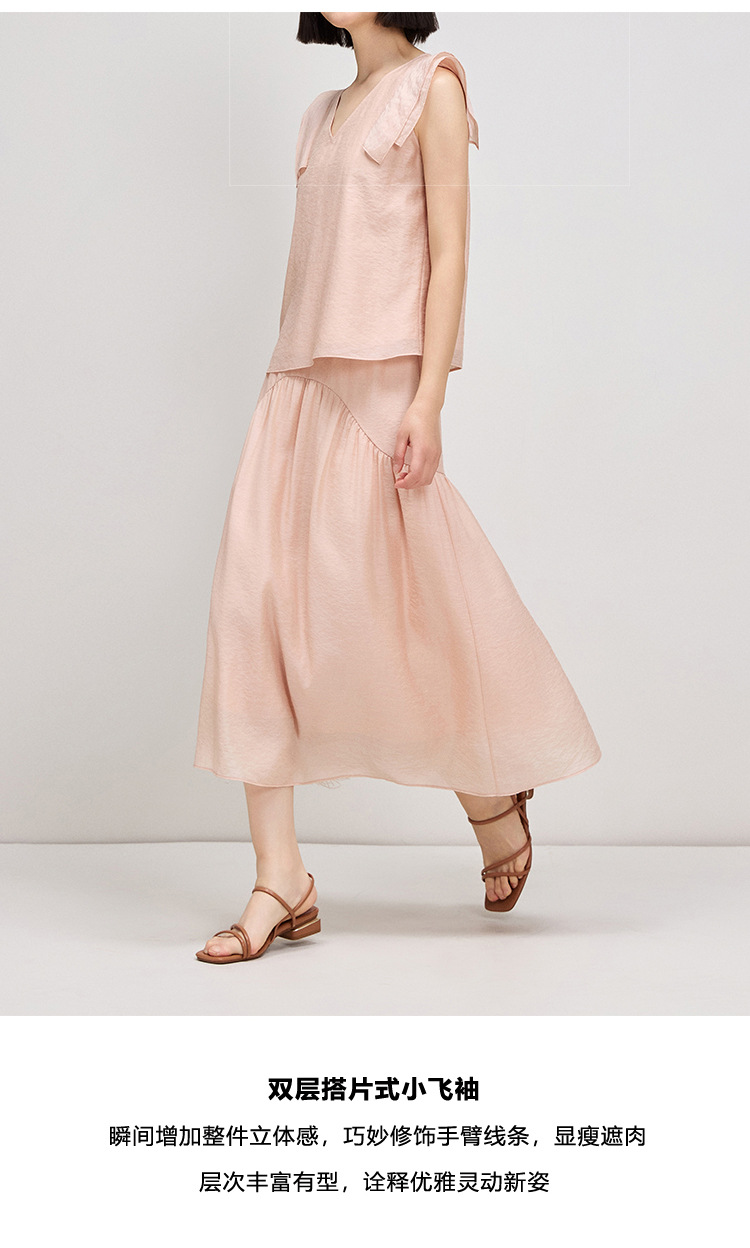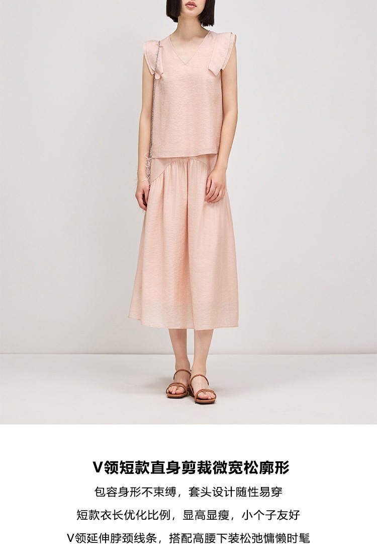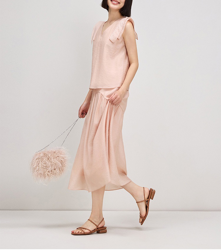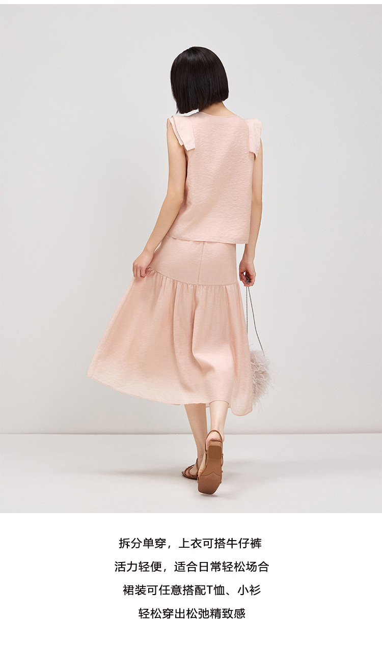 핑크 플라잉 슬리브 셔츠 여성용 V넥 블라우스 스커트 세트 신상 핑크빛 복숭아색 나이를 잊게 하는 투피스 세트스토어 가기