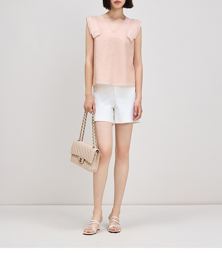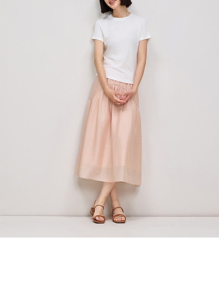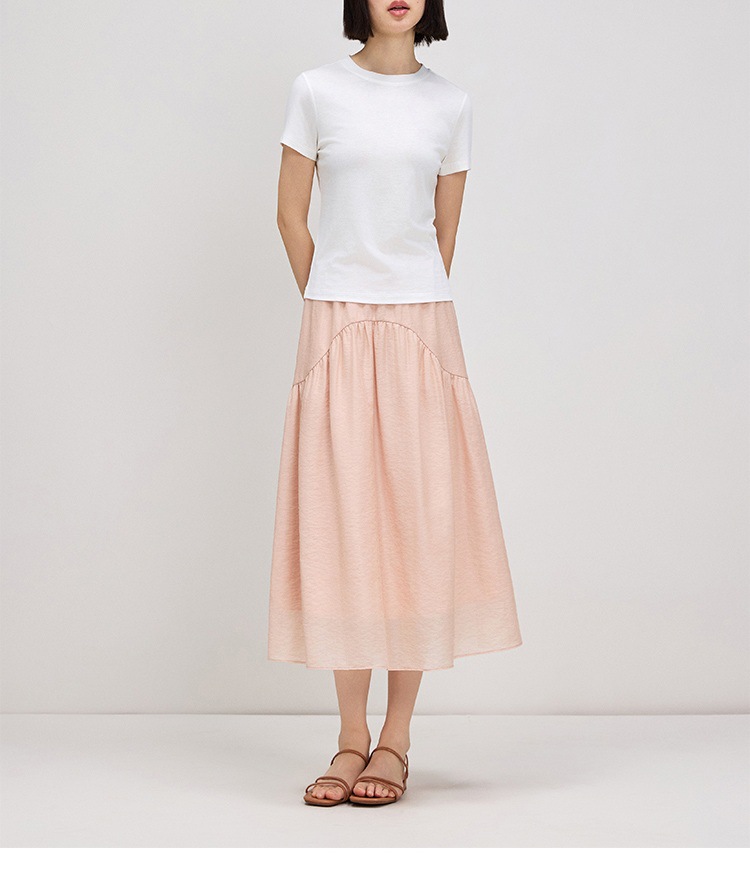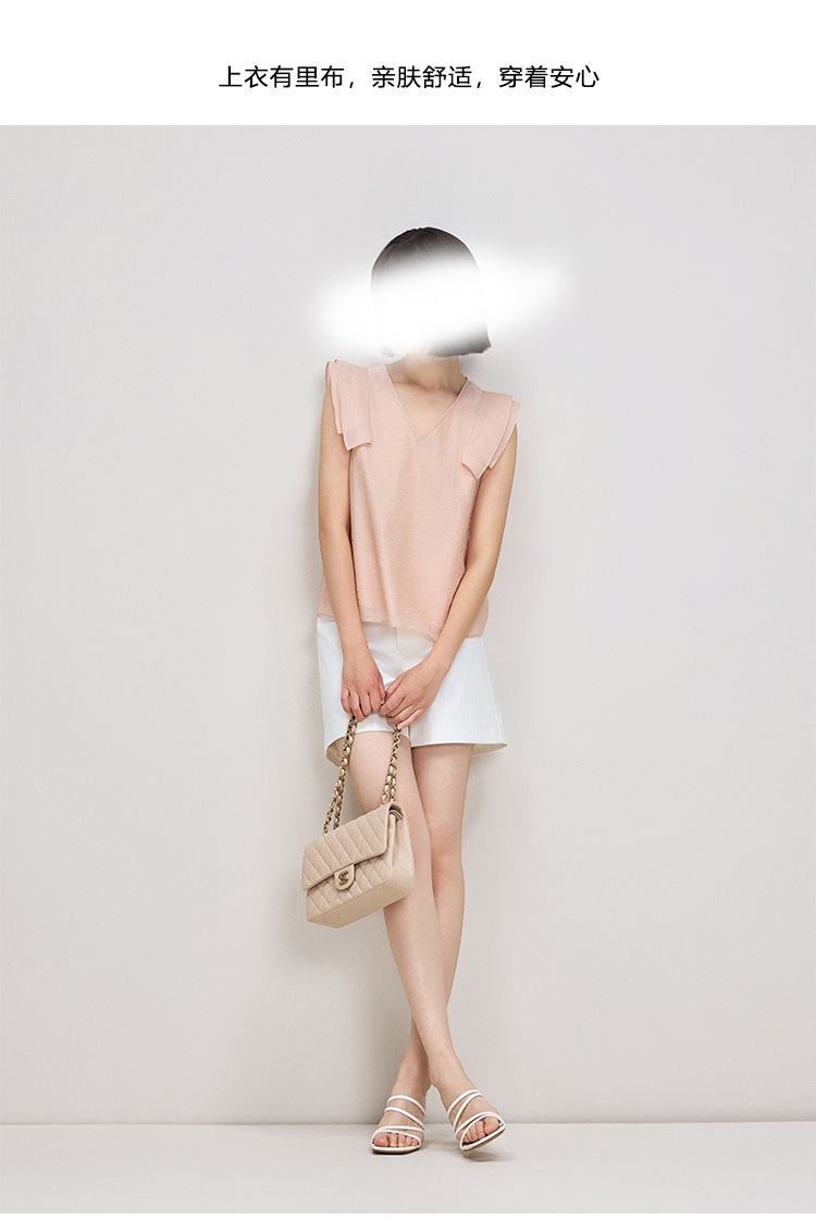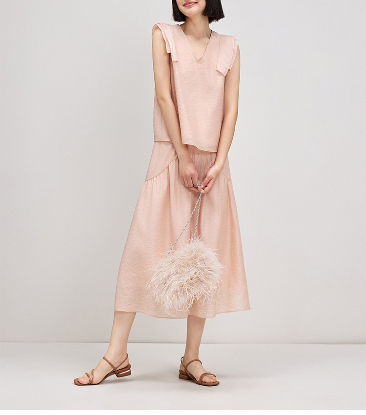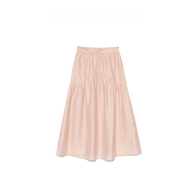 핑크 플라잉 슬리브 셔츠 여성용 V넥 블라우스 스커트 세트 신상 핑크빛 복숭아색 나이를 잊게 하는 투피스 세트스토어 가기