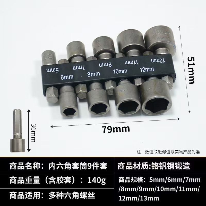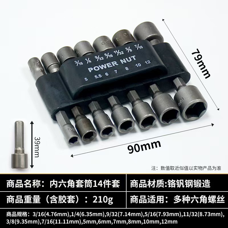 风批套筒套装批头全套电动扳手加深内六角电钻风批头9件套14件套
