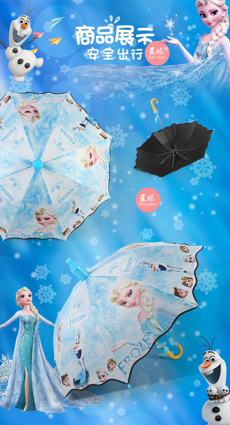 여자 유치원 초등학생을위한 얼음과 눈 어린이 우산 엘사 공주 대형 자동 긴 손잡이 비닐 태양 보호 우산