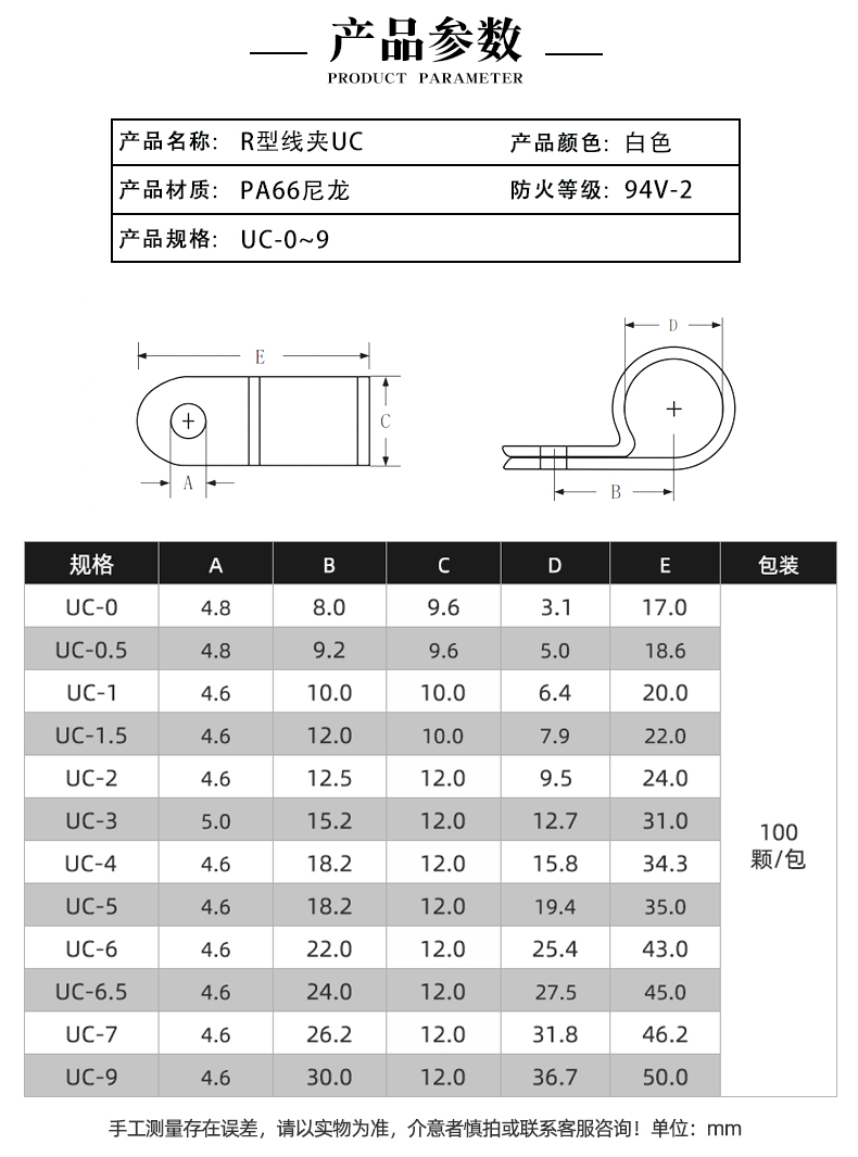 스냅온 와이어 고정 케이블 배선 클립 고정 클립 케이블 관리 클립 버튼 두꺼운 R형 고정 UC 와이어 버클