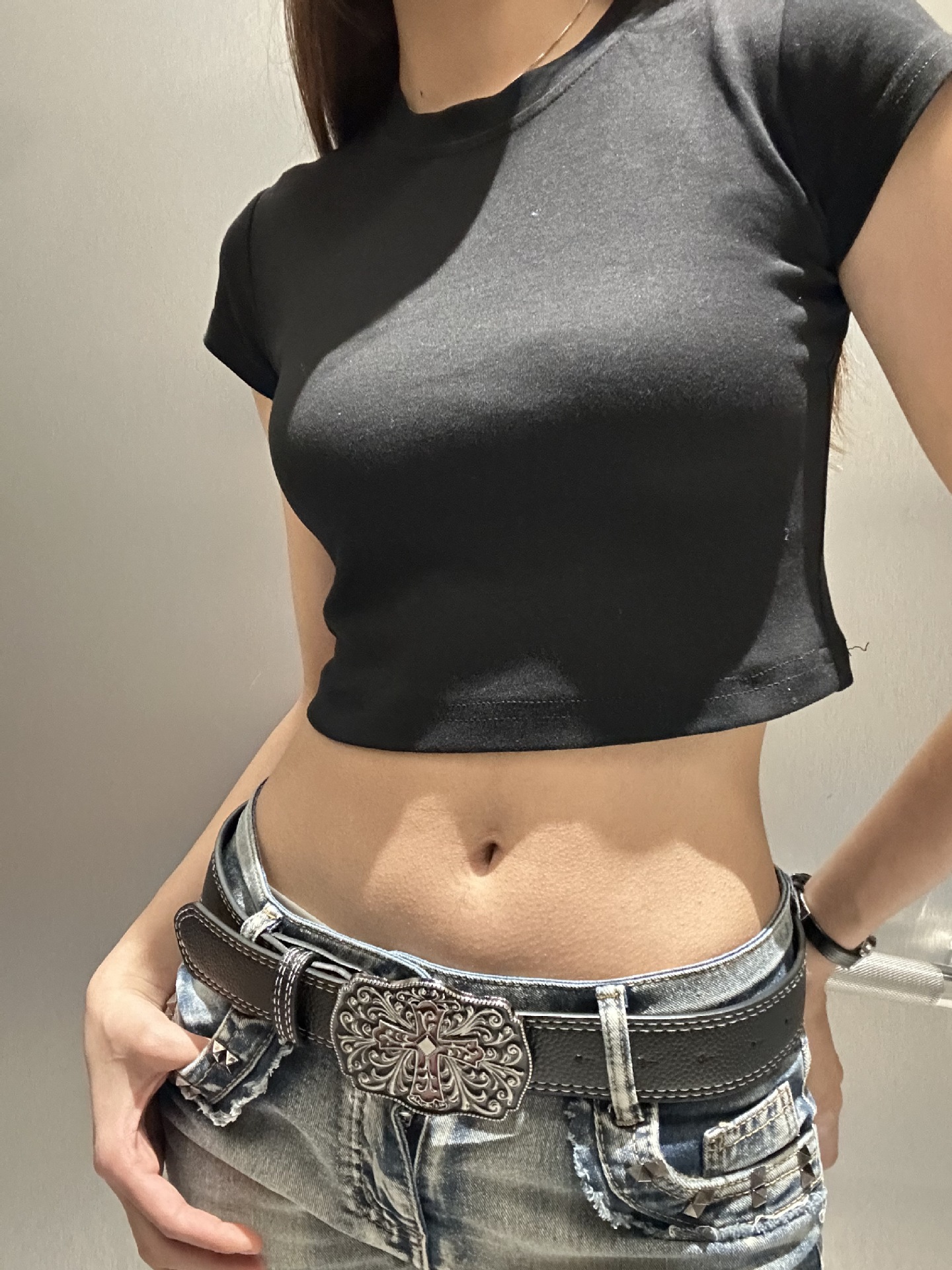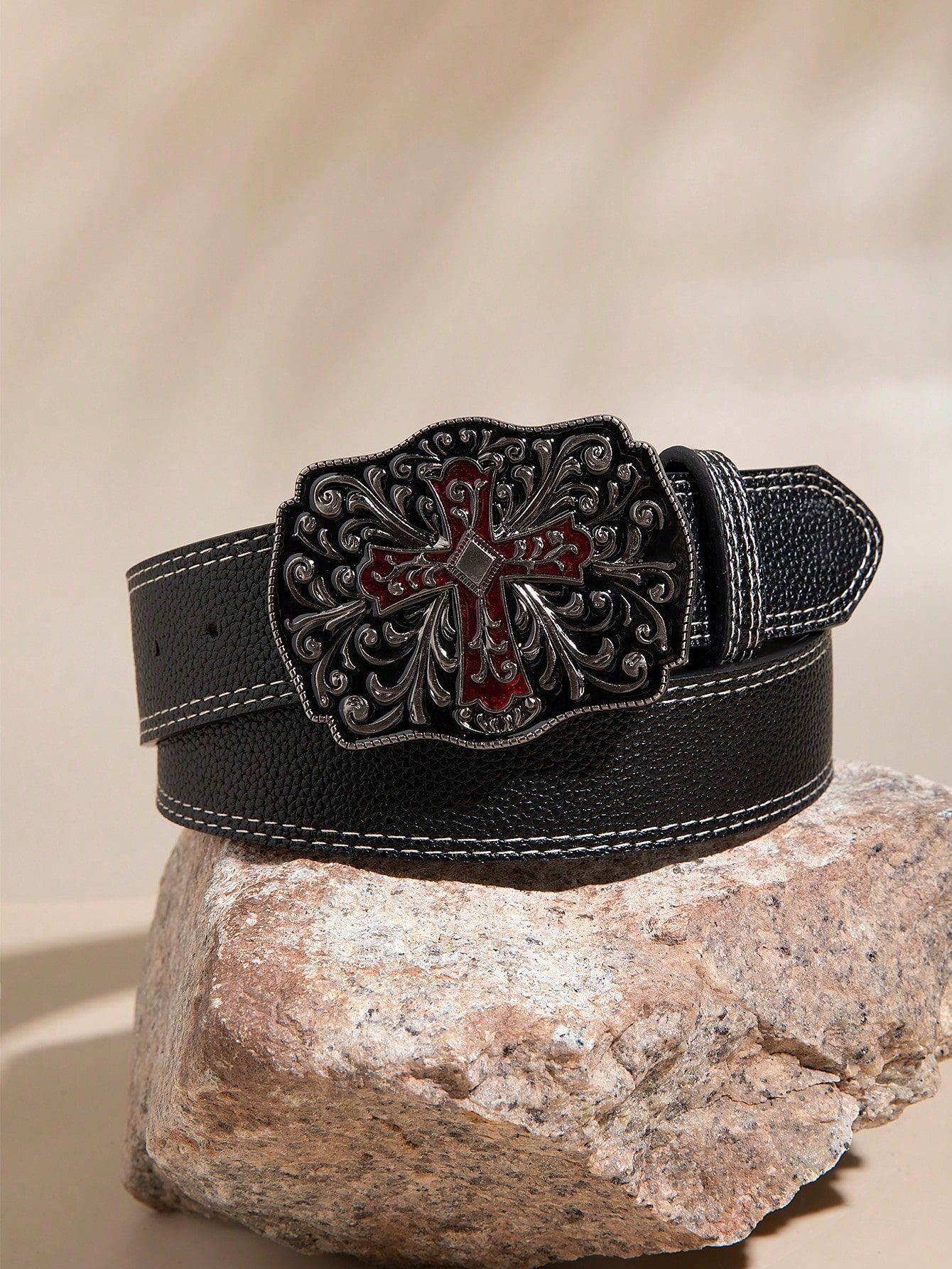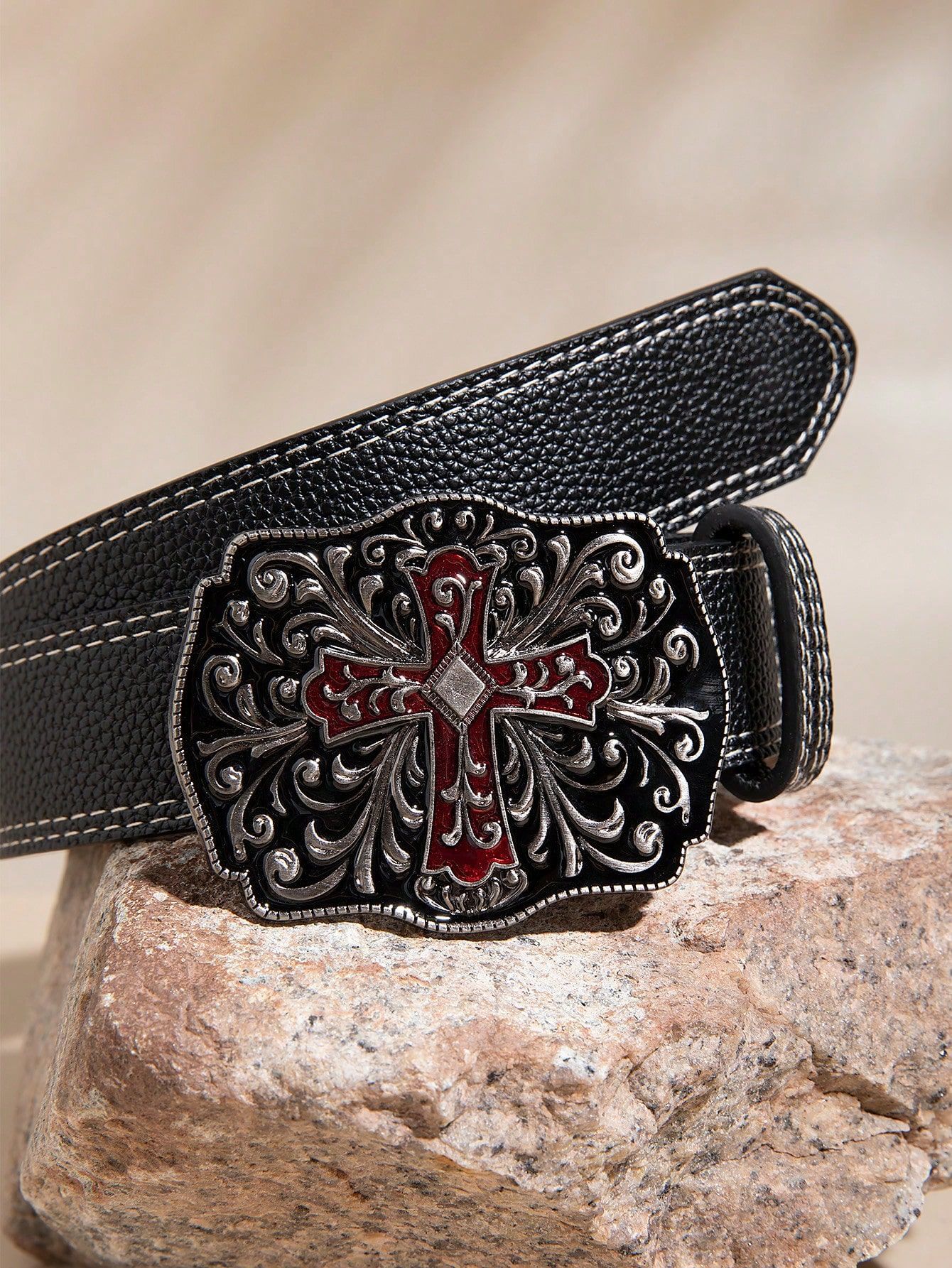 2025 새로운 스타일 2 스티치 레드 크로스 패션 유럽과 미국 스타일의 청바지와 매치 와이드 팬츠 PU 소재 여성 벨트스토어 가기