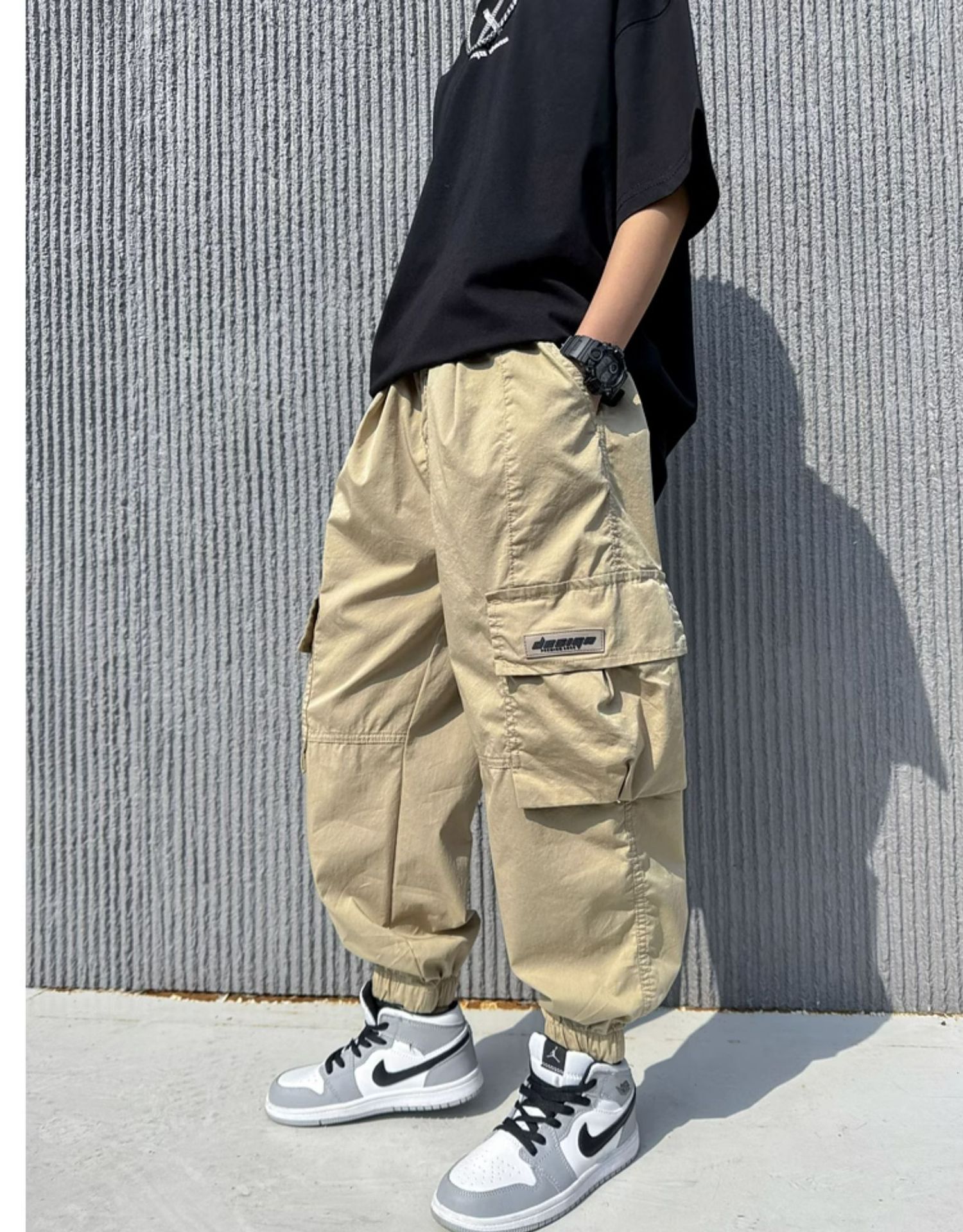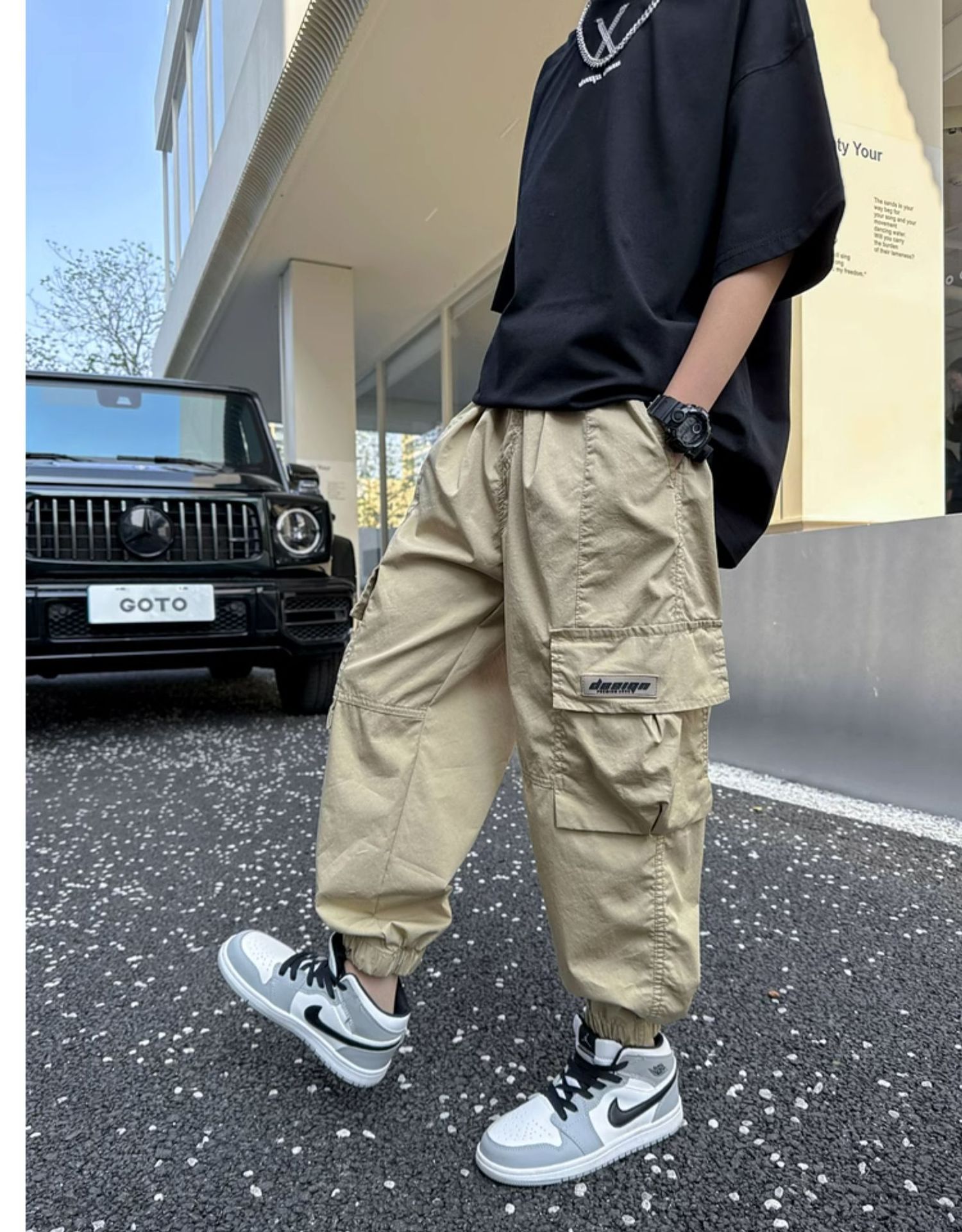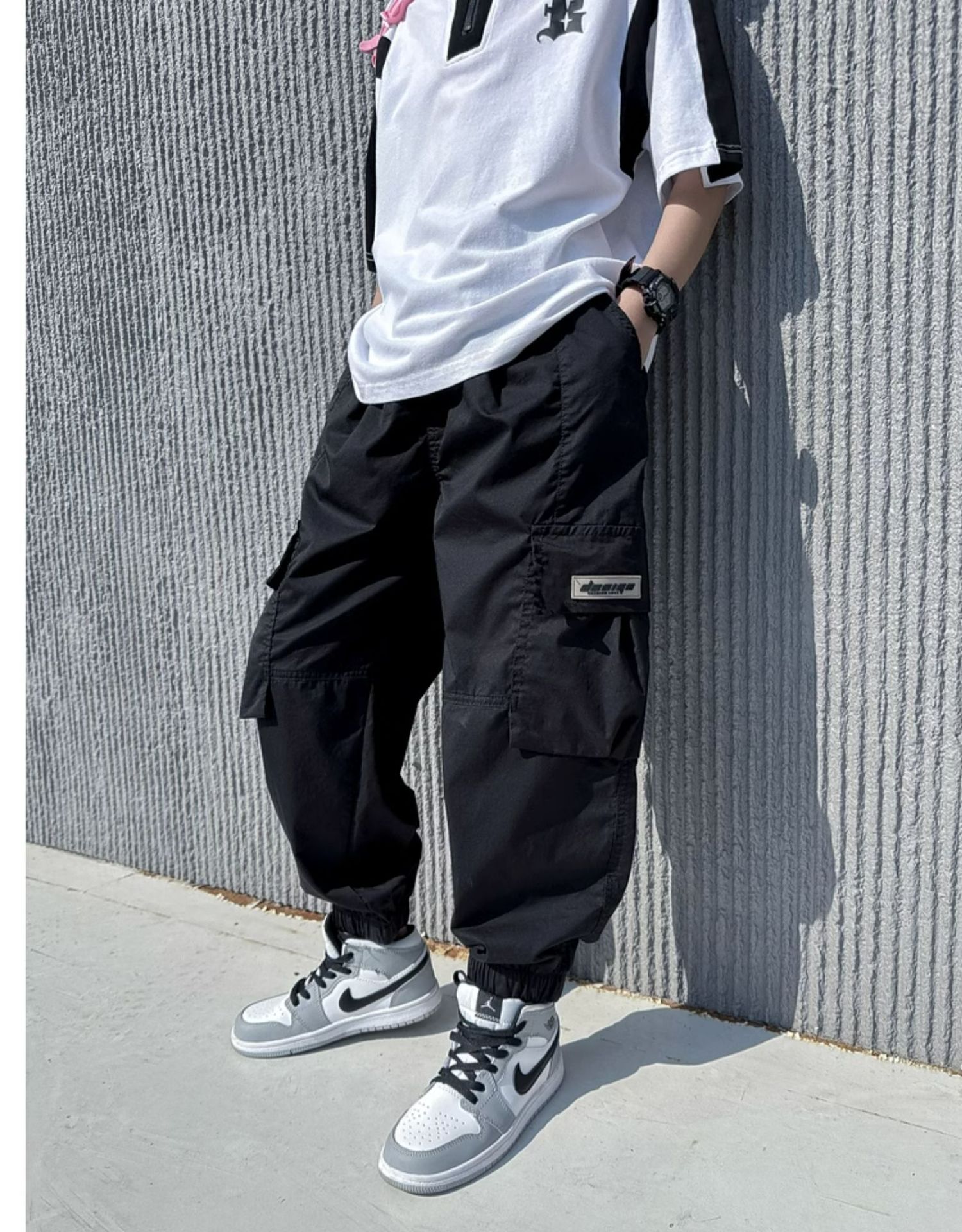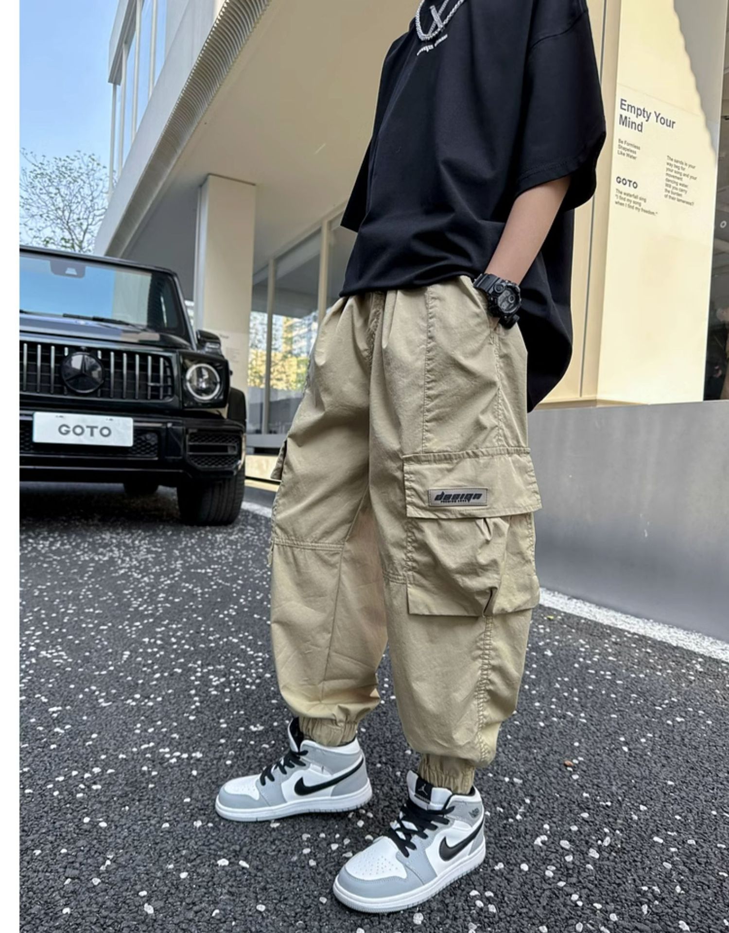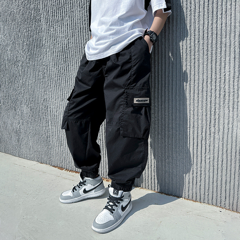 남아용 2023년 봄, 가을 신작 작업복, 초가을 바지 디자인, 캐주얼하고 다재다능한 중대형 아동 바지 트렌드