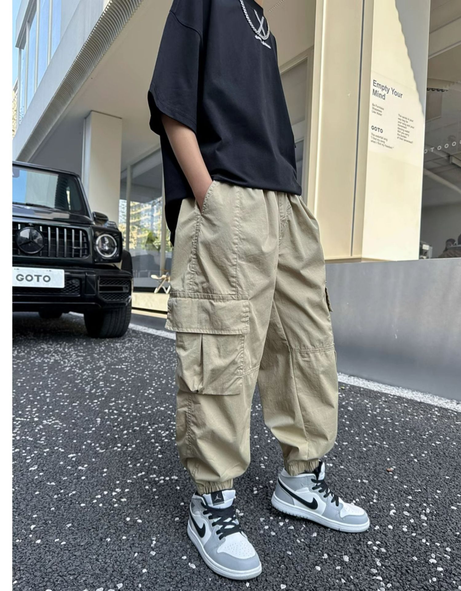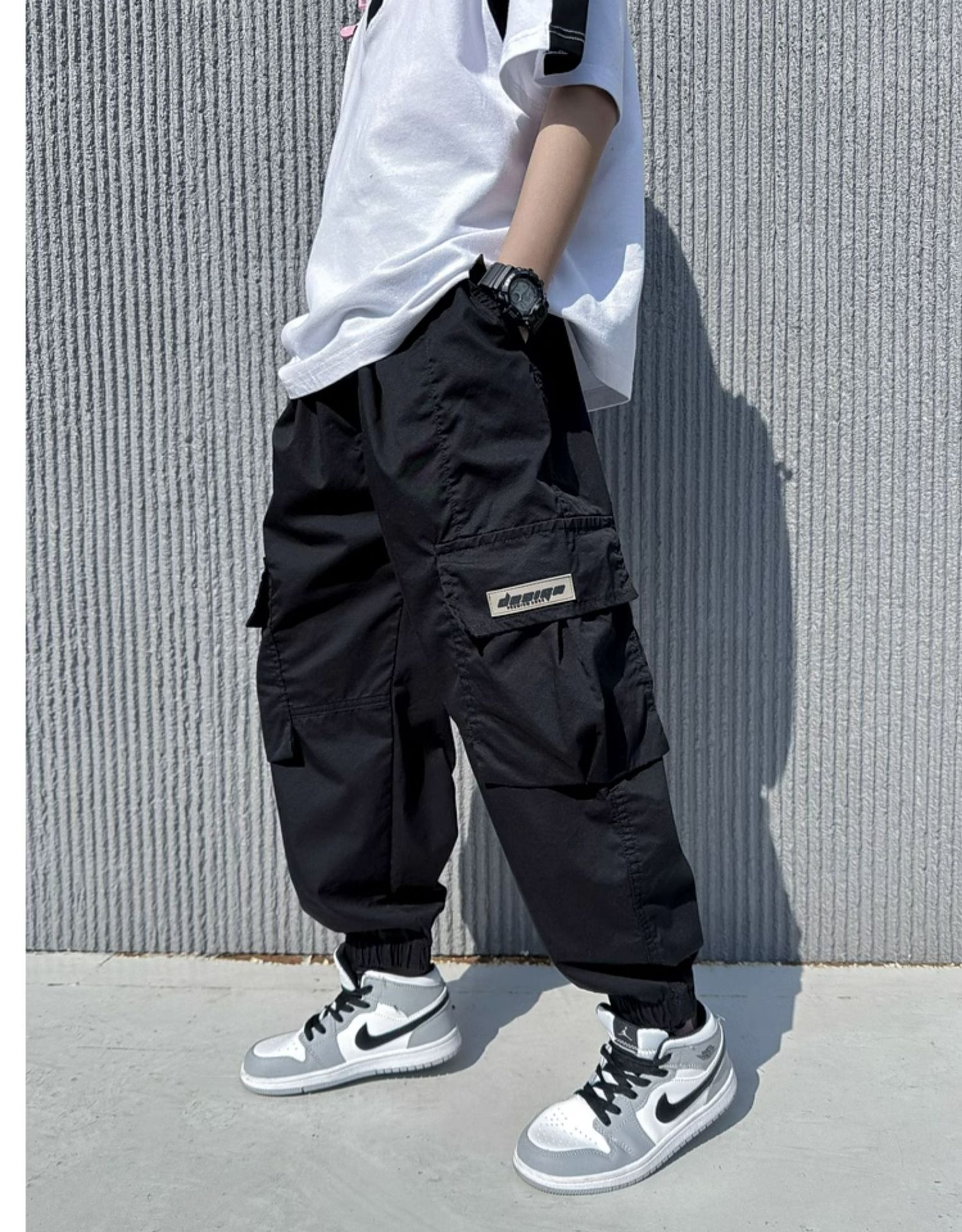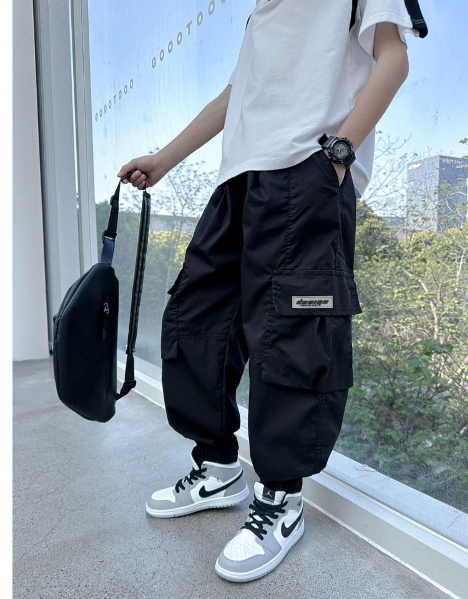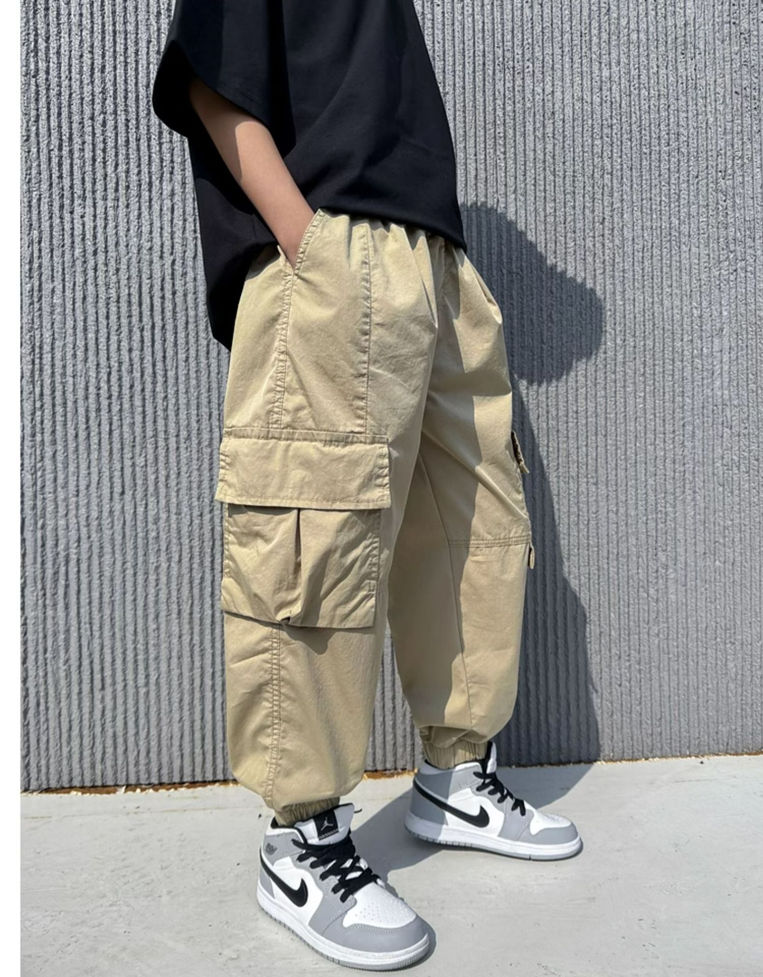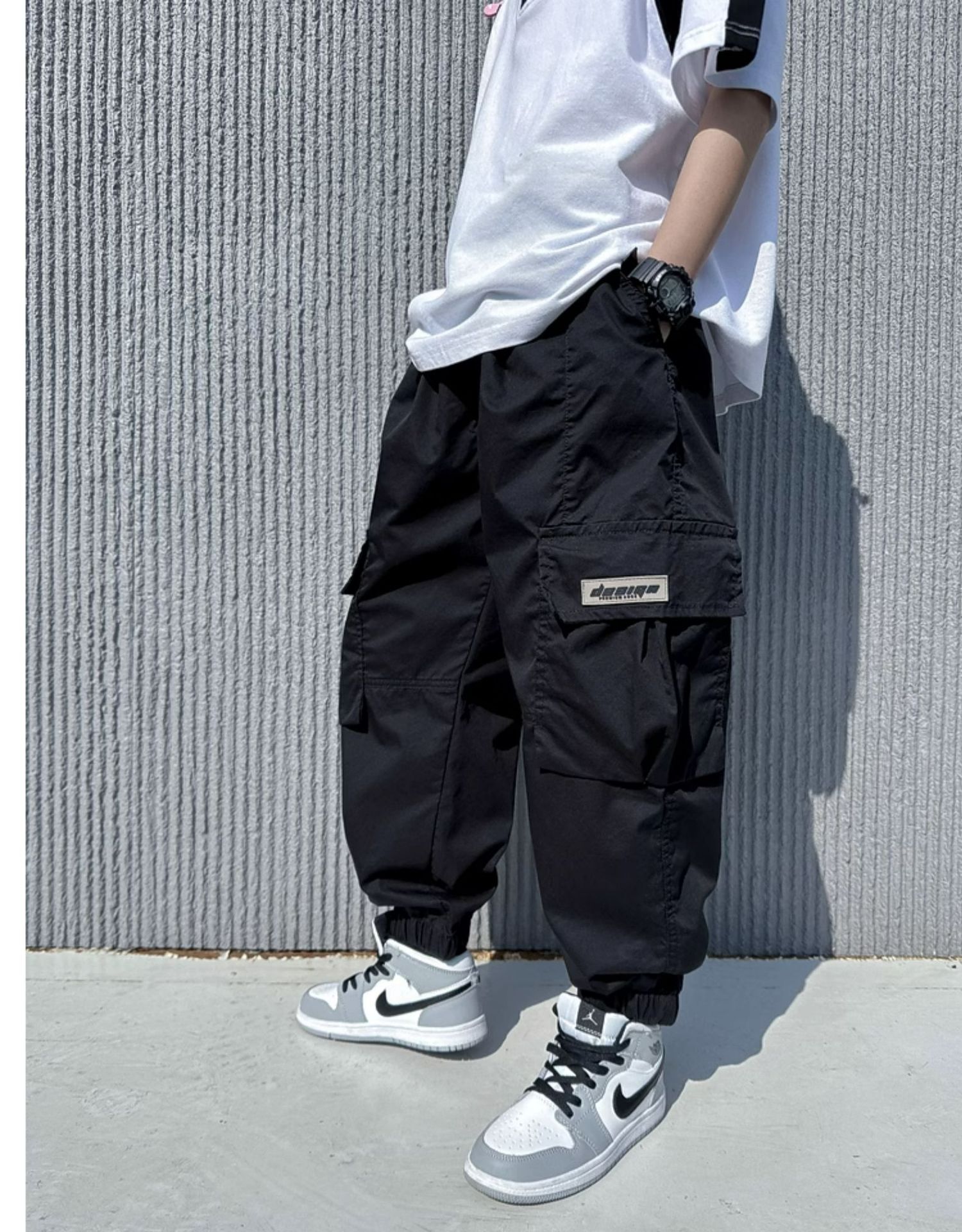 남아용 2023년 봄, 가을 신작 작업복, 초가을 바지 디자인, 캐주얼하고 다재다능한 중대형 아동 바지 트렌드