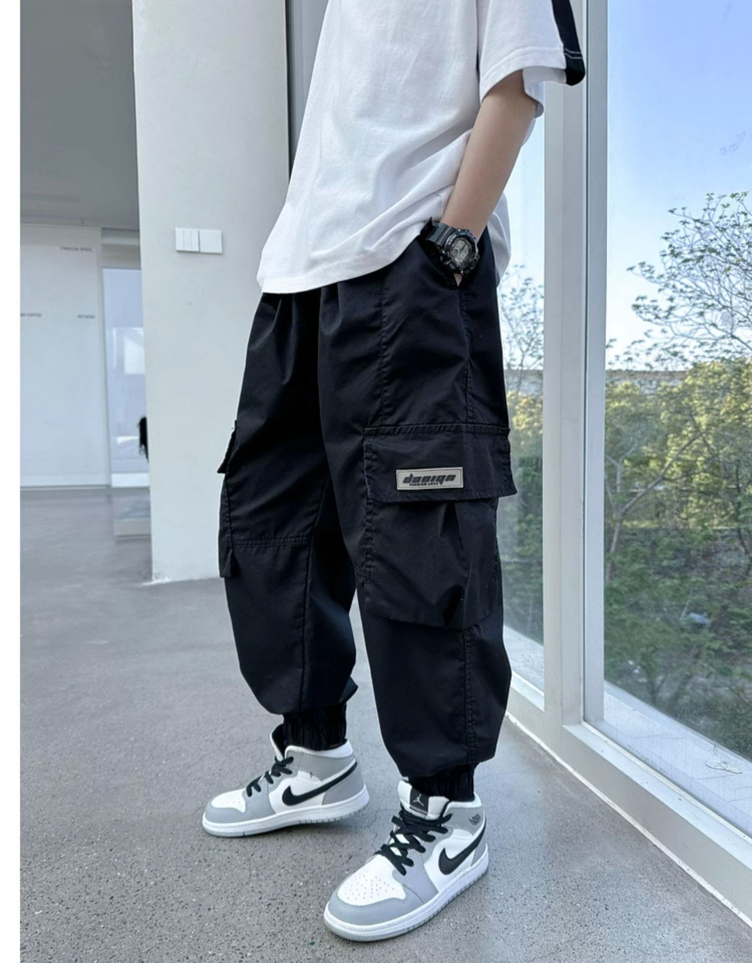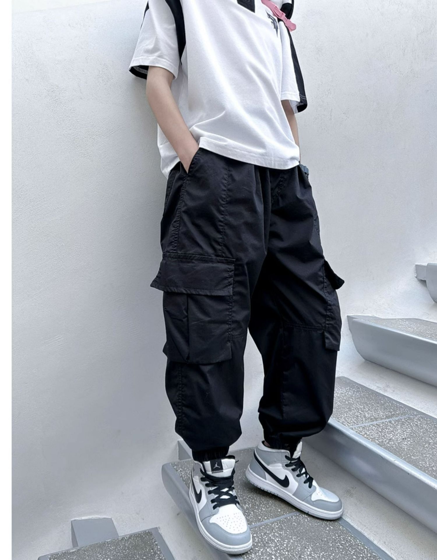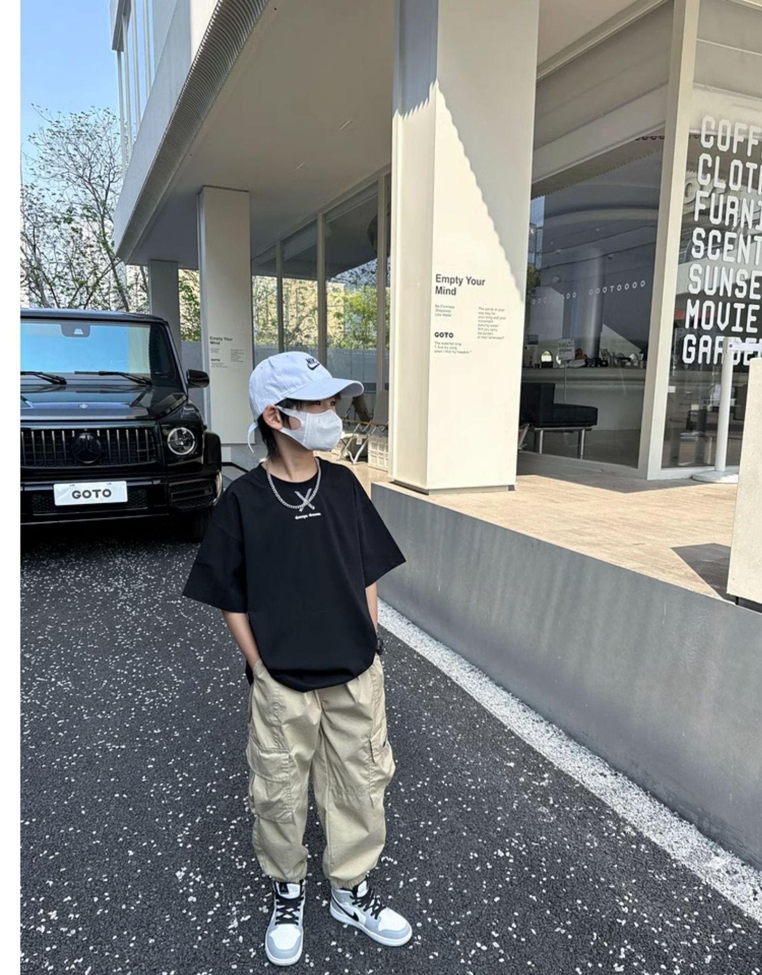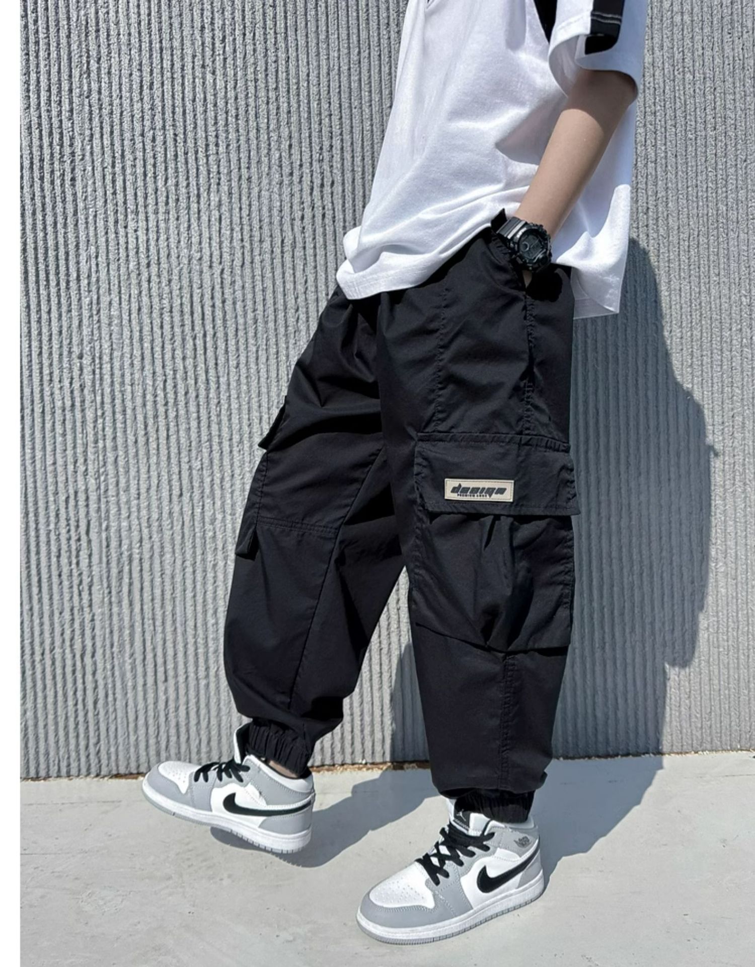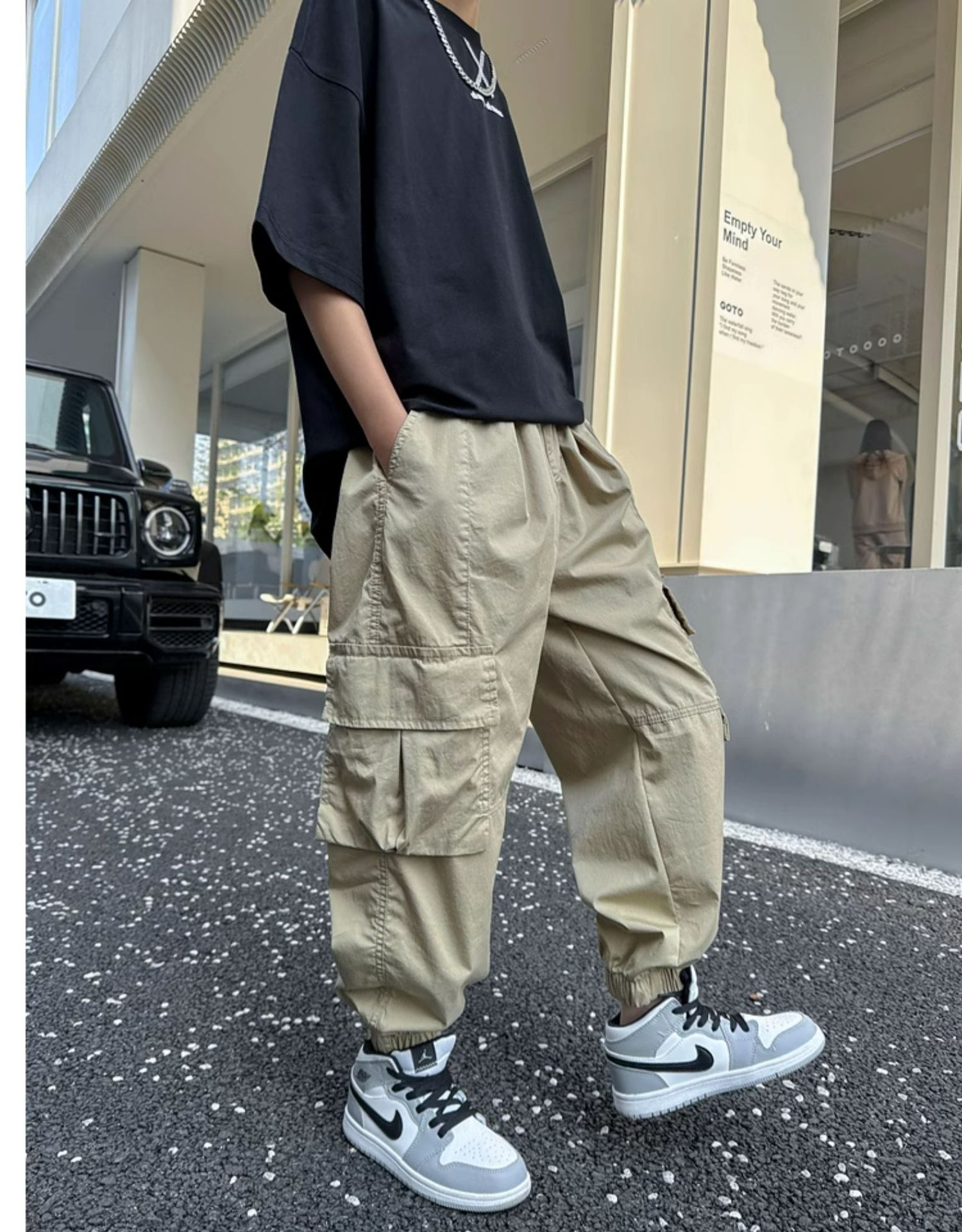 남아용 2023년 봄, 가을 신작 작업복, 초가을 바지 디자인, 캐주얼하고 다재다능한 중대형 아동 바지 트렌드