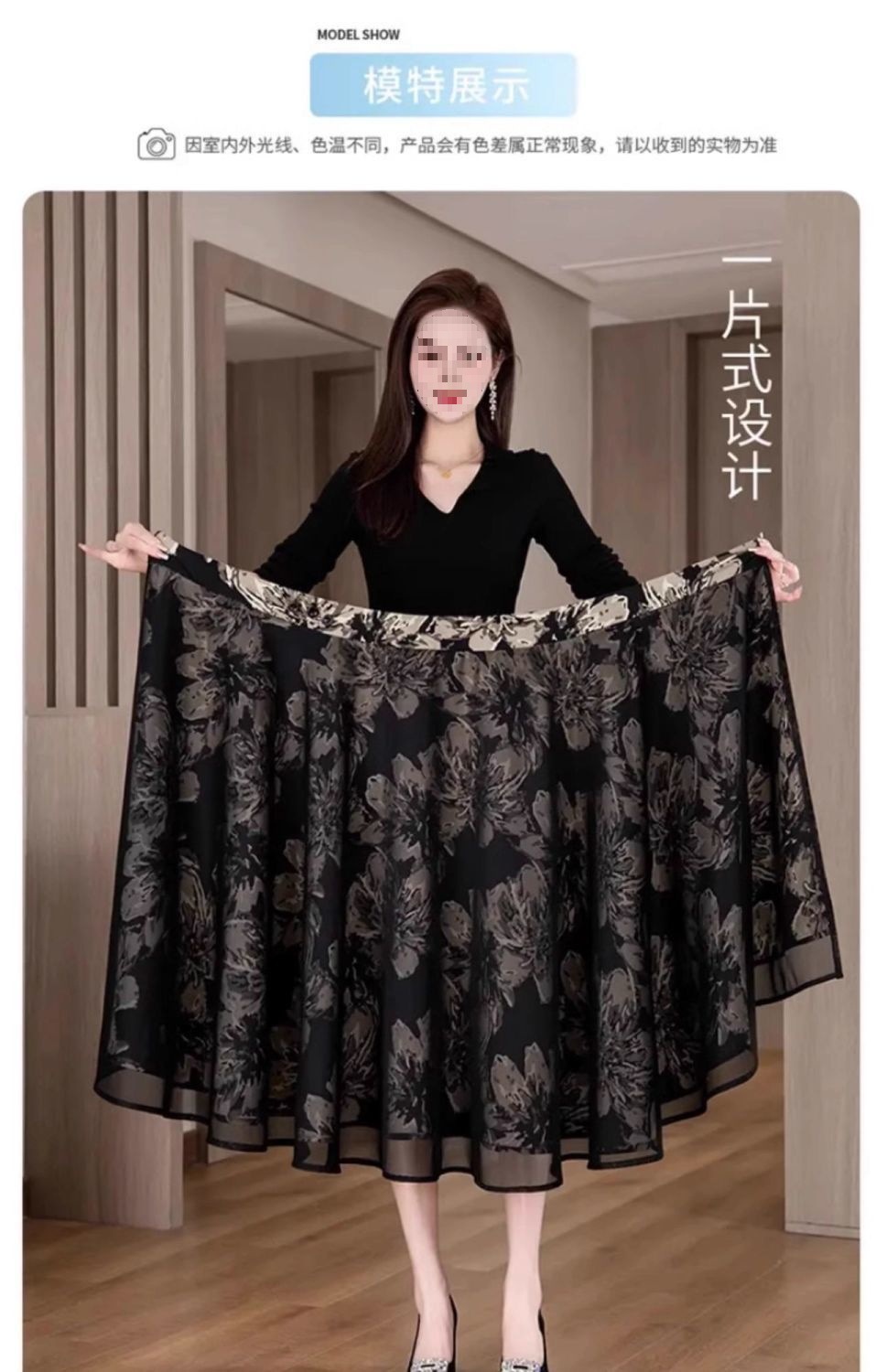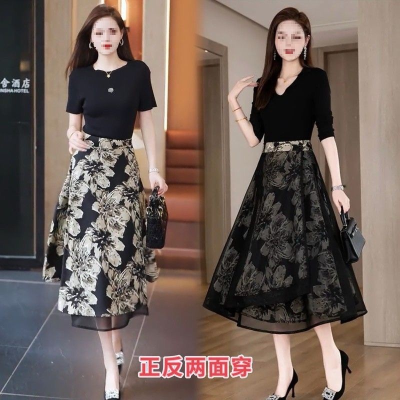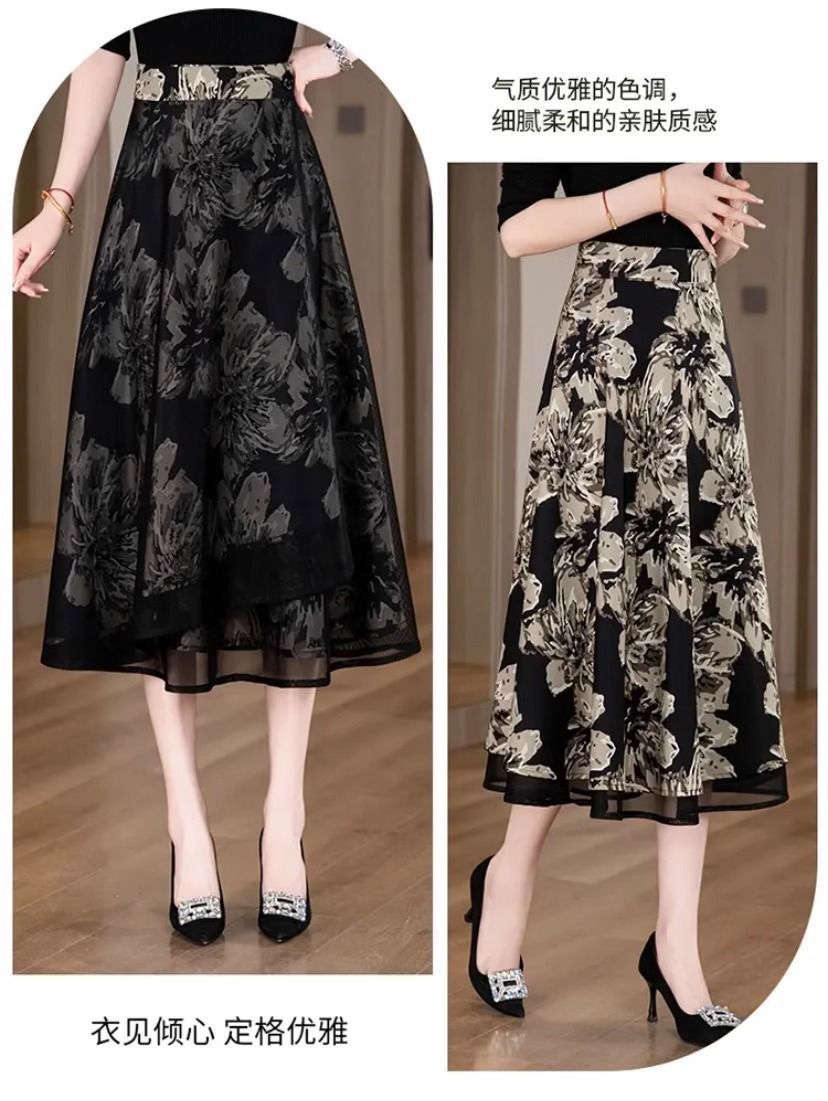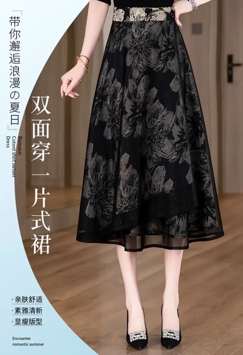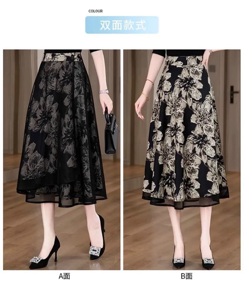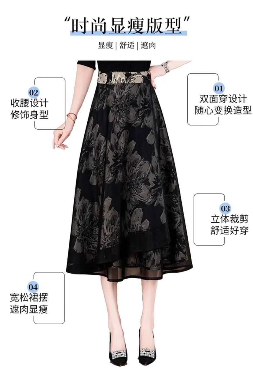 우아한 양면 꽃무늬 스커트 여성 2025 신작 봄 여름 하이웨이스트 슬림 A라인 스커트 힙 스커트스토어 가기