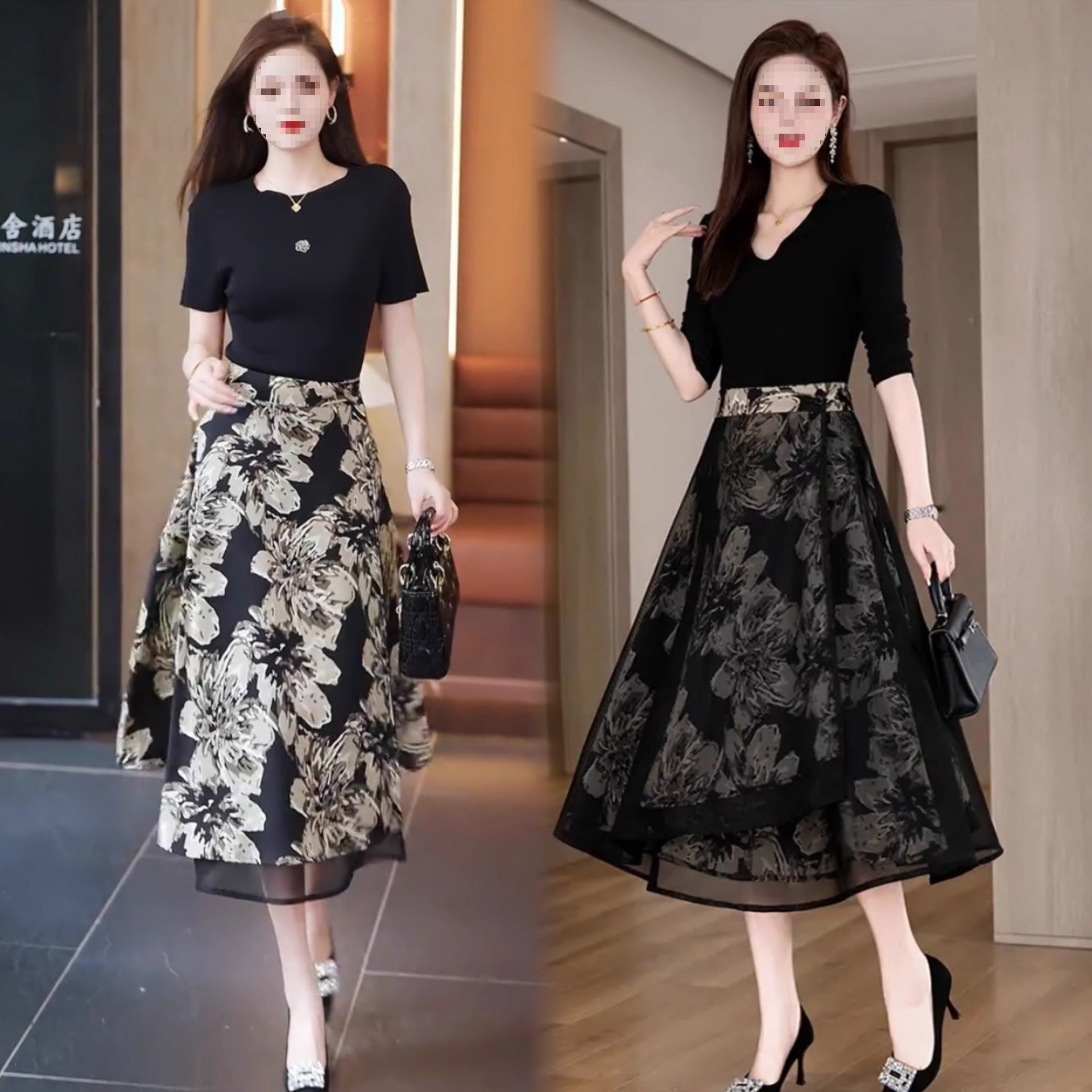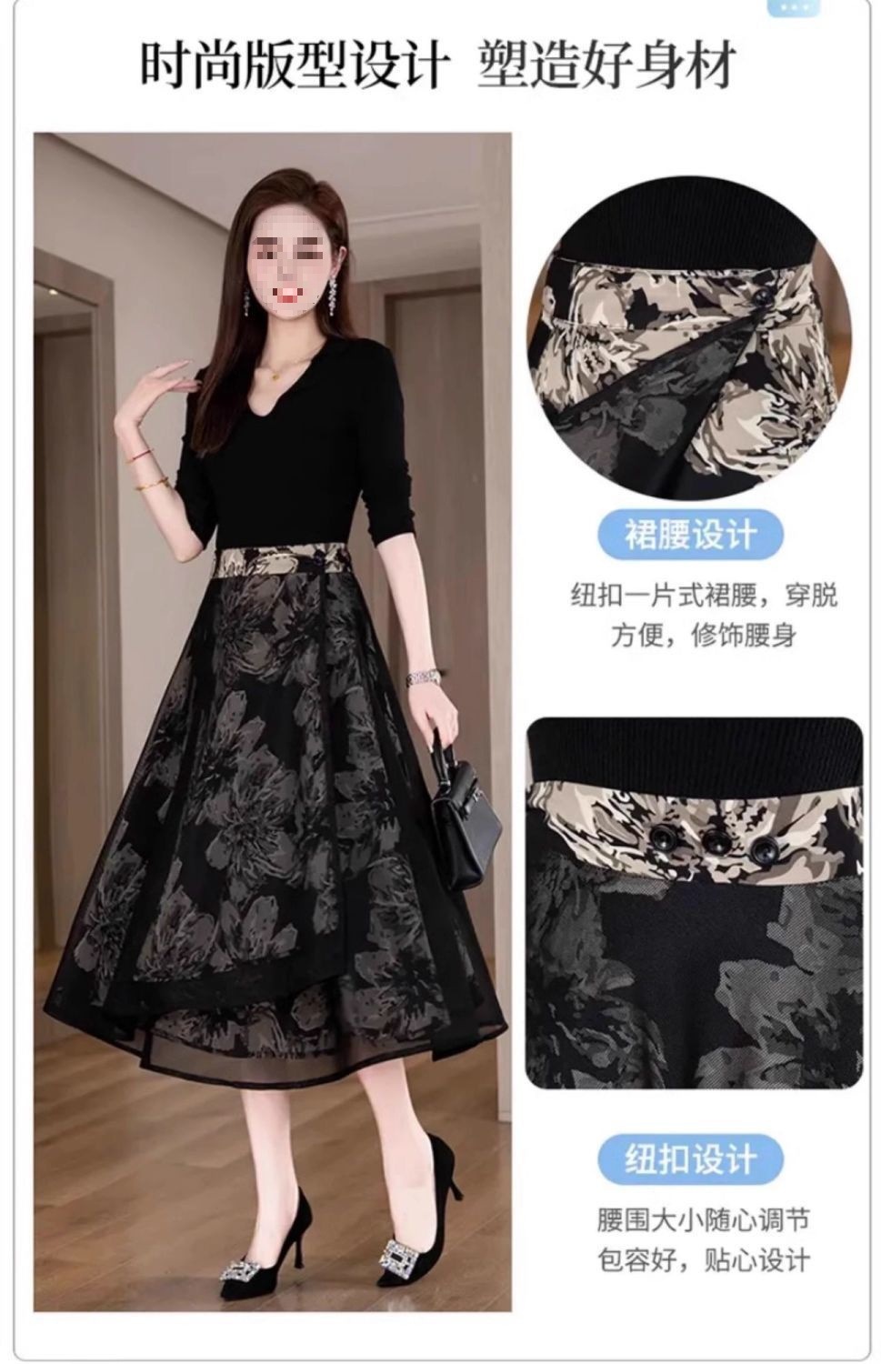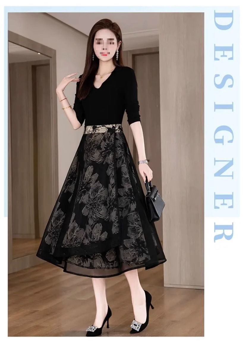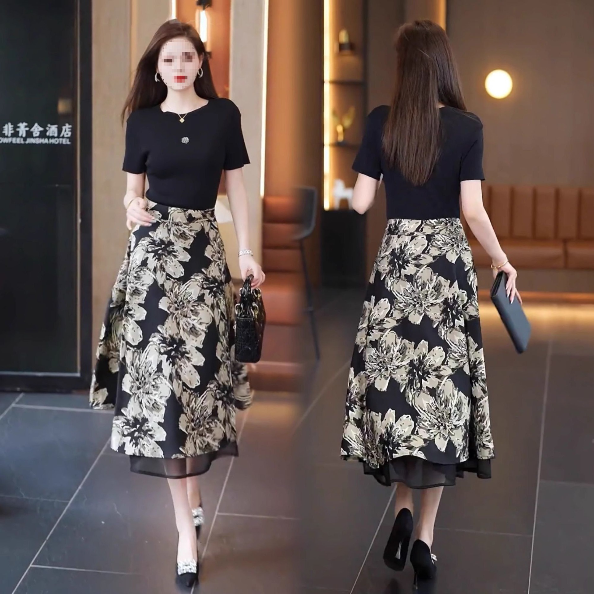 우아한 양면 꽃무늬 스커트 여성 2025 신작 봄 여름 하이웨이스트 슬림 A라인 스커트 힙 스커트스토어 가기