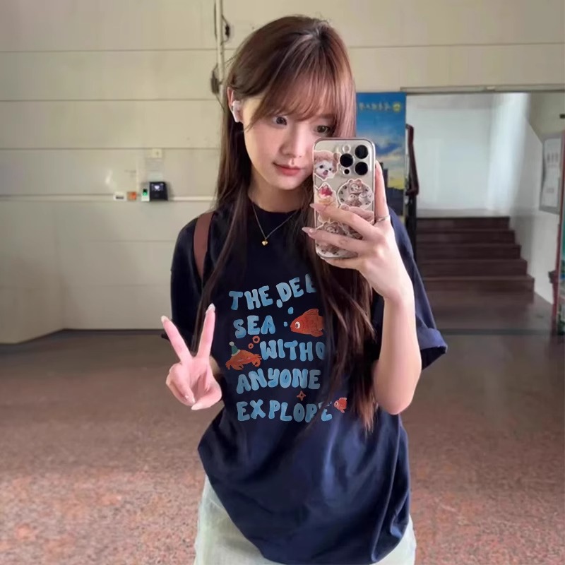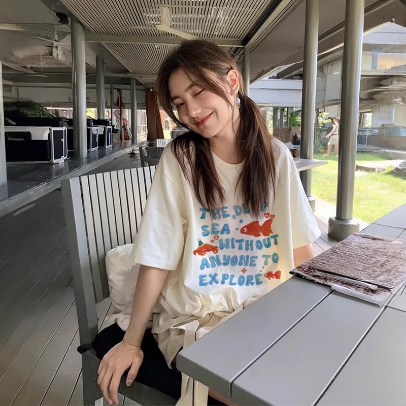 여성용 티셔츠 2026년 신상 인기 여름 흰색 면 루즈핏 반팔 올해 유행 예쁜 상의스토어 가기
