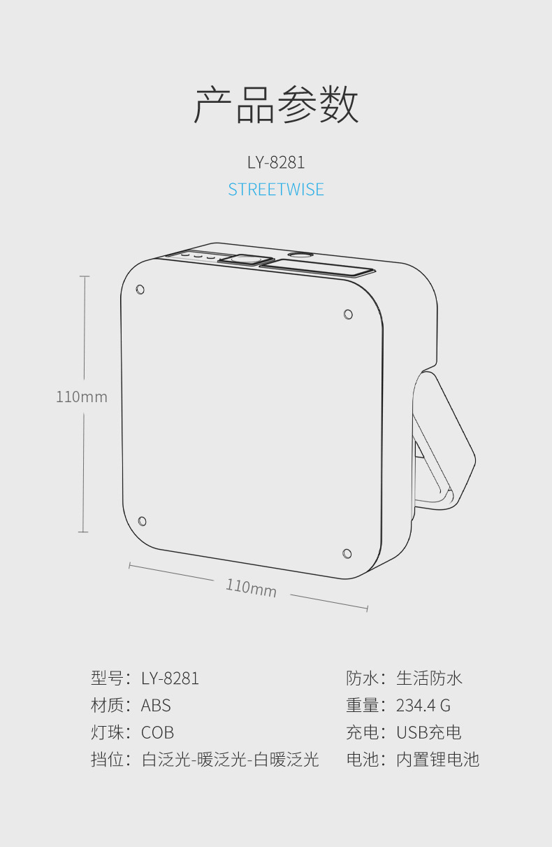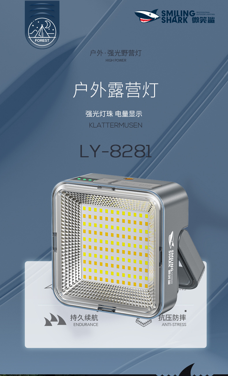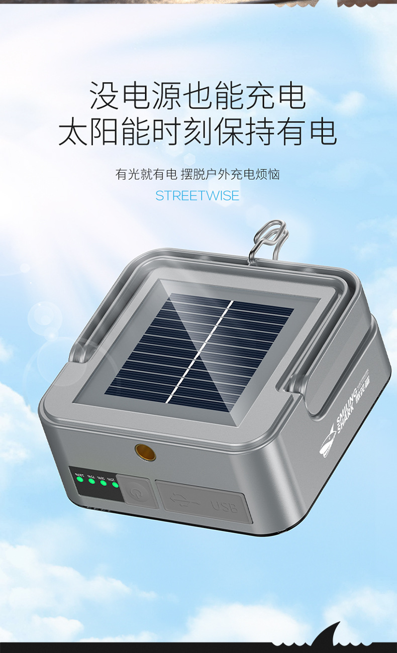 • LY-8281A 태양열 온백색 이중 조명 캠핑 램프 [회색, 내장 배터리 2400MAH]