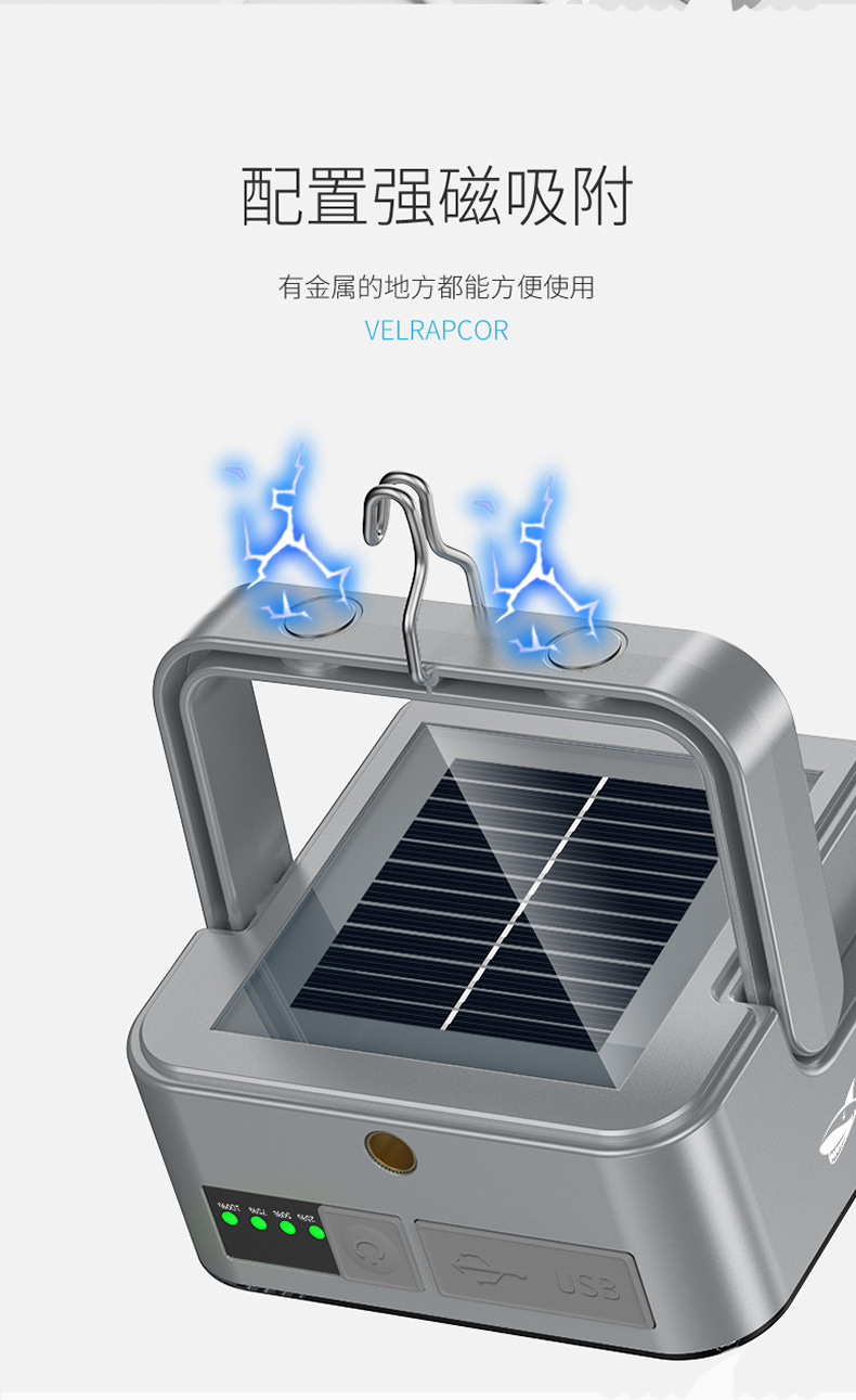 야외 따뜻한 흰색 두 배 밝은 캠핑 램프 자기 작업 램프 태양 충전 디스플레이 후크 캠핑 램프스토어 가기