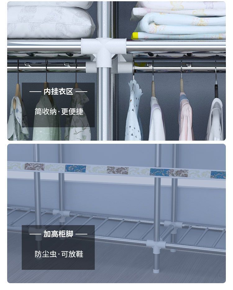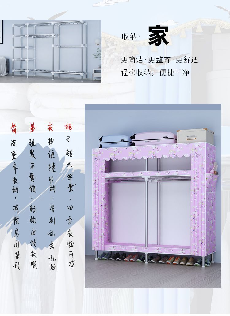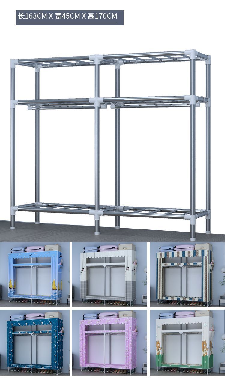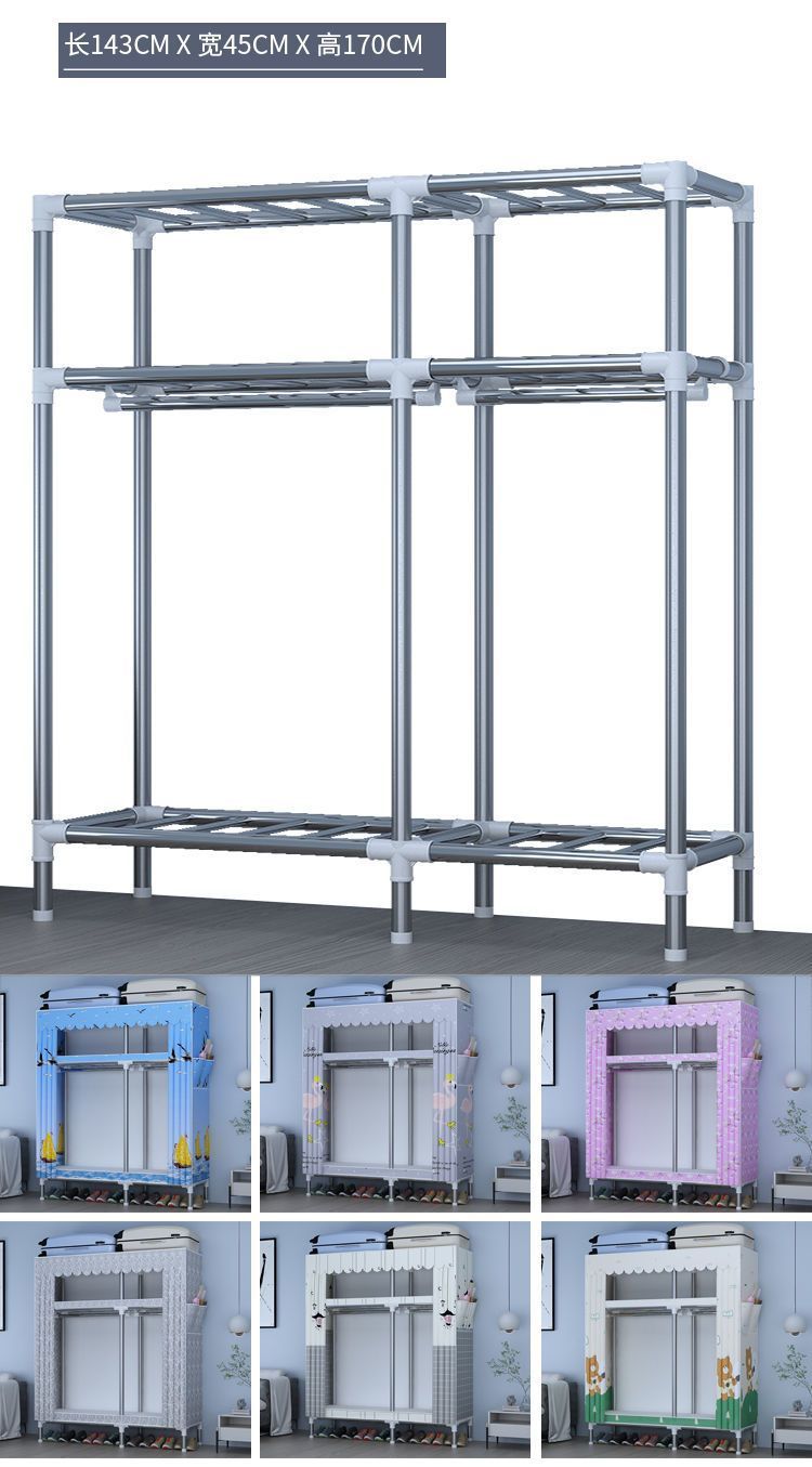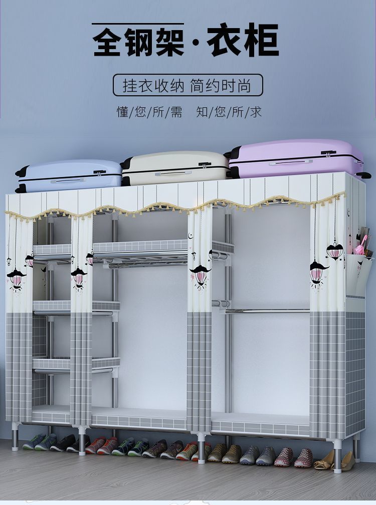 강철 프레임 전체 강철 튜브 간단한 옷장 홈 침실 조립 옷장 조인트 두꺼운 강화 천스토어 가기