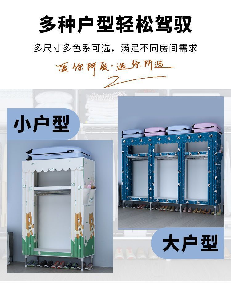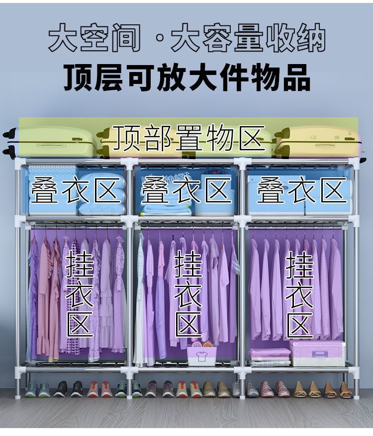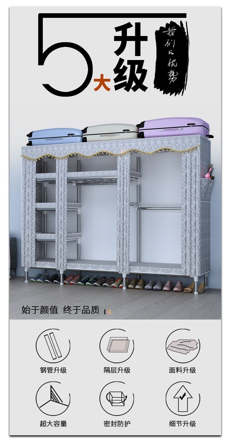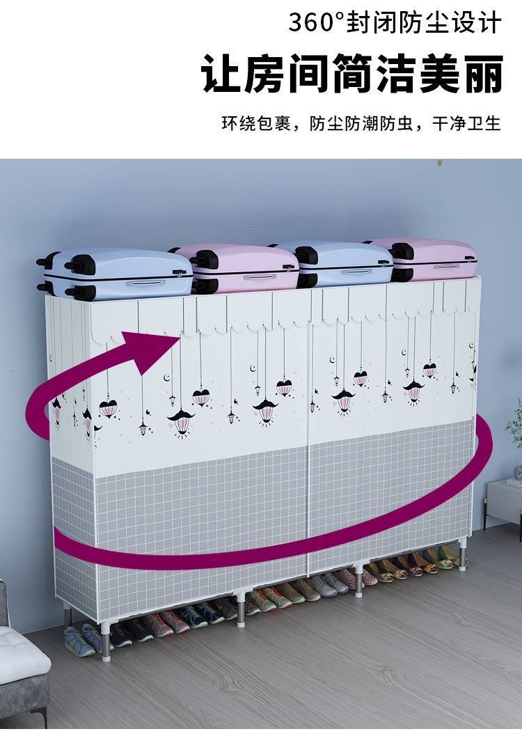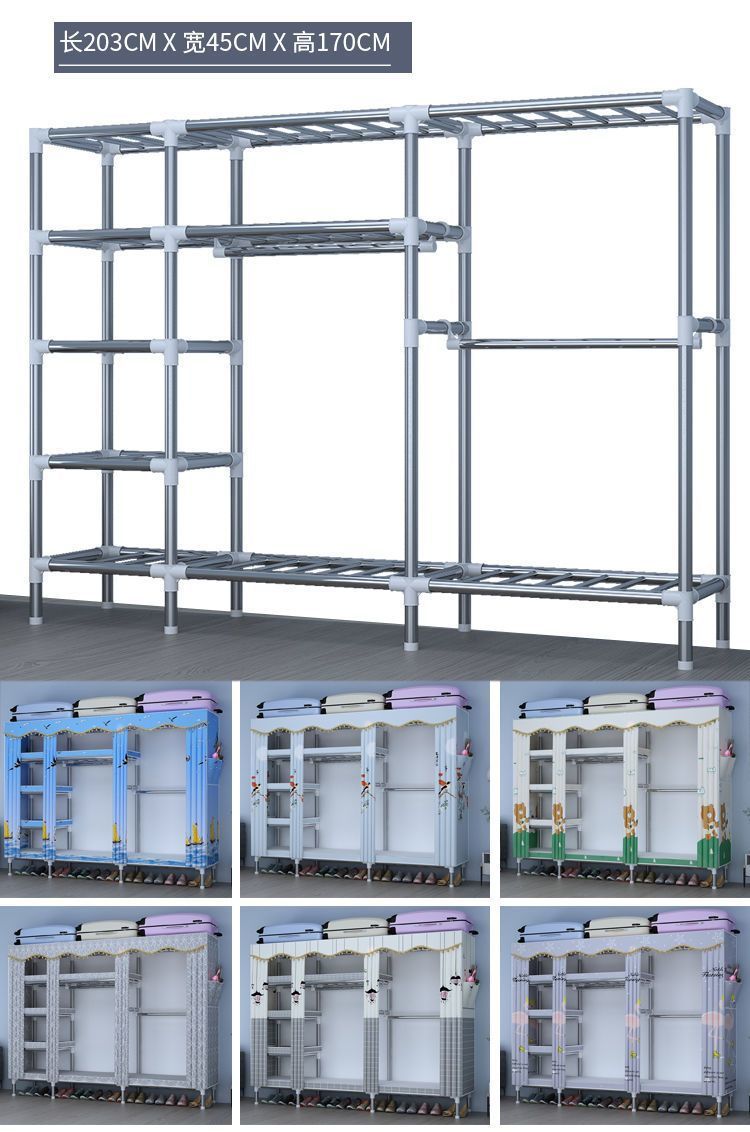 강철 프레임 전체 강철 튜브 간단한 옷장 홈 침실 조립 옷장 조인트 두꺼운 강화 천스토어 가기