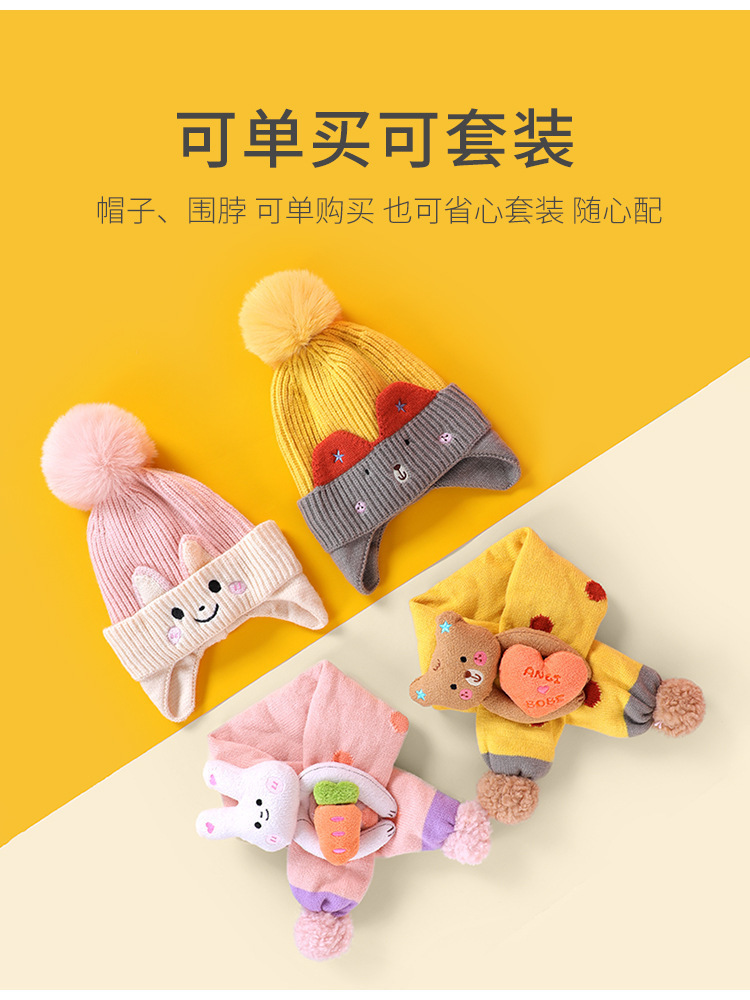 고급 어린이 모자 소년 겨울 아기 모직 모자 귀 보호 소년 스카프 세트 소녀 아기 유아스토어 가기