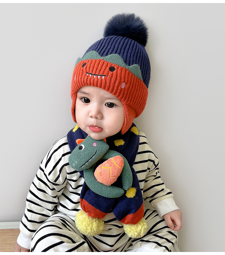 고급 어린이 모자 소년 겨울 아기 모직 모자 귀 보호 소년 스카프 세트 소녀 아기 유아