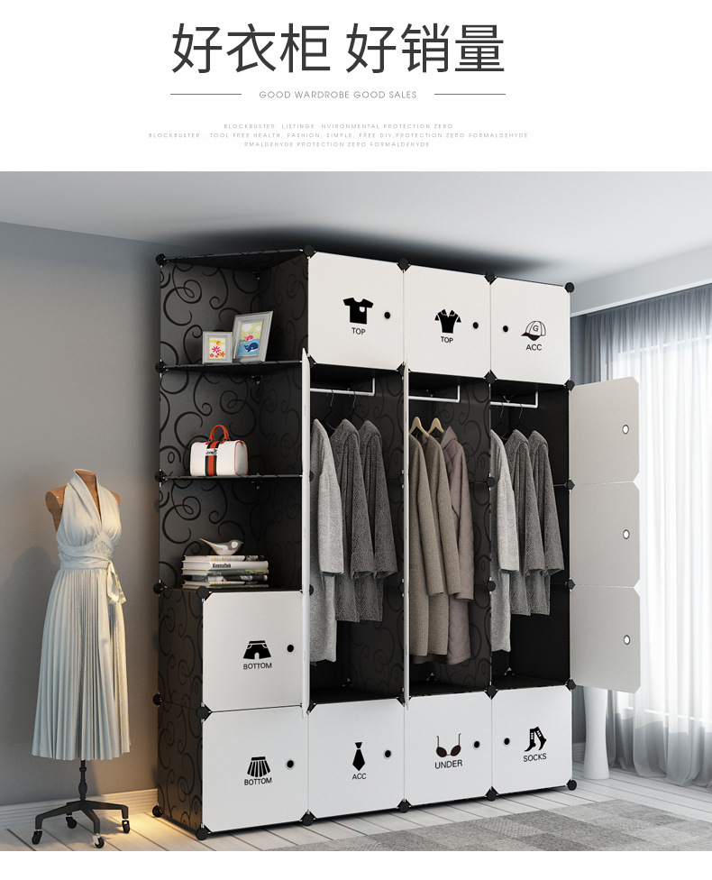 간단한 옷장 홈 침실 임대실 수납 선반 조립 수납 매우 두꺼운 기숙사 내구성 방진스토어 가기