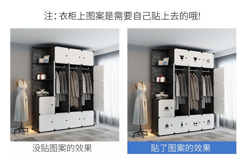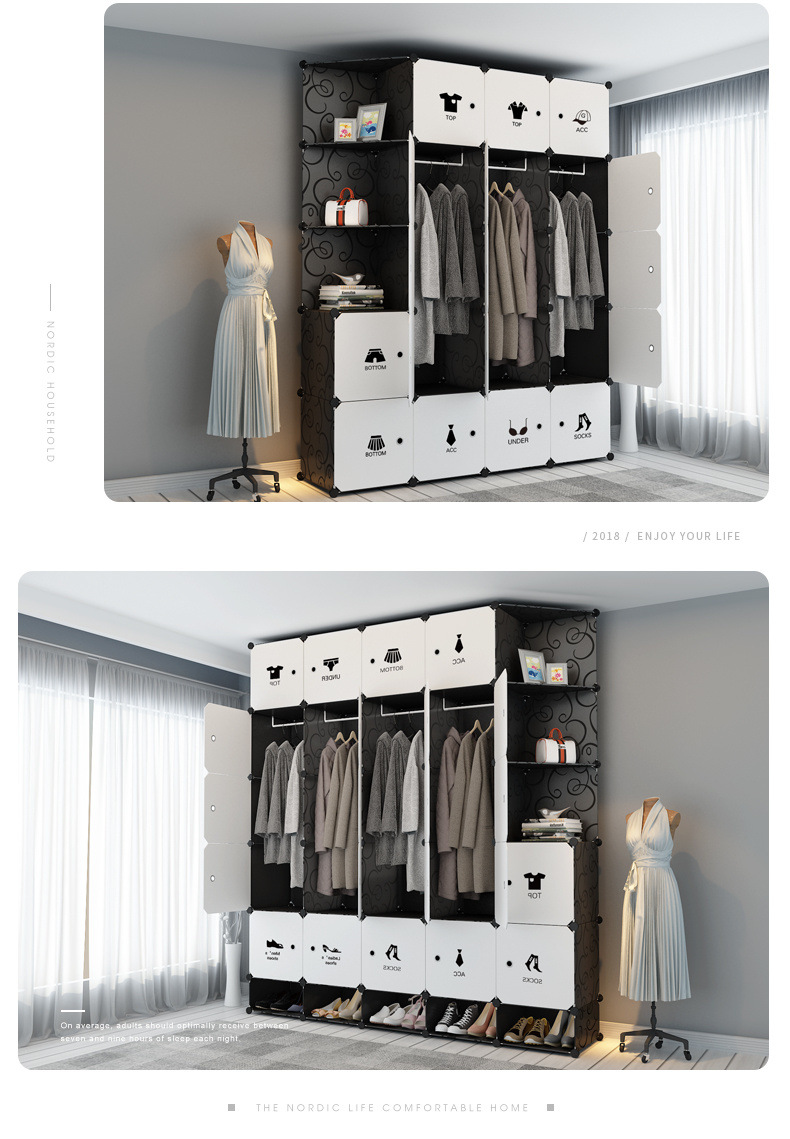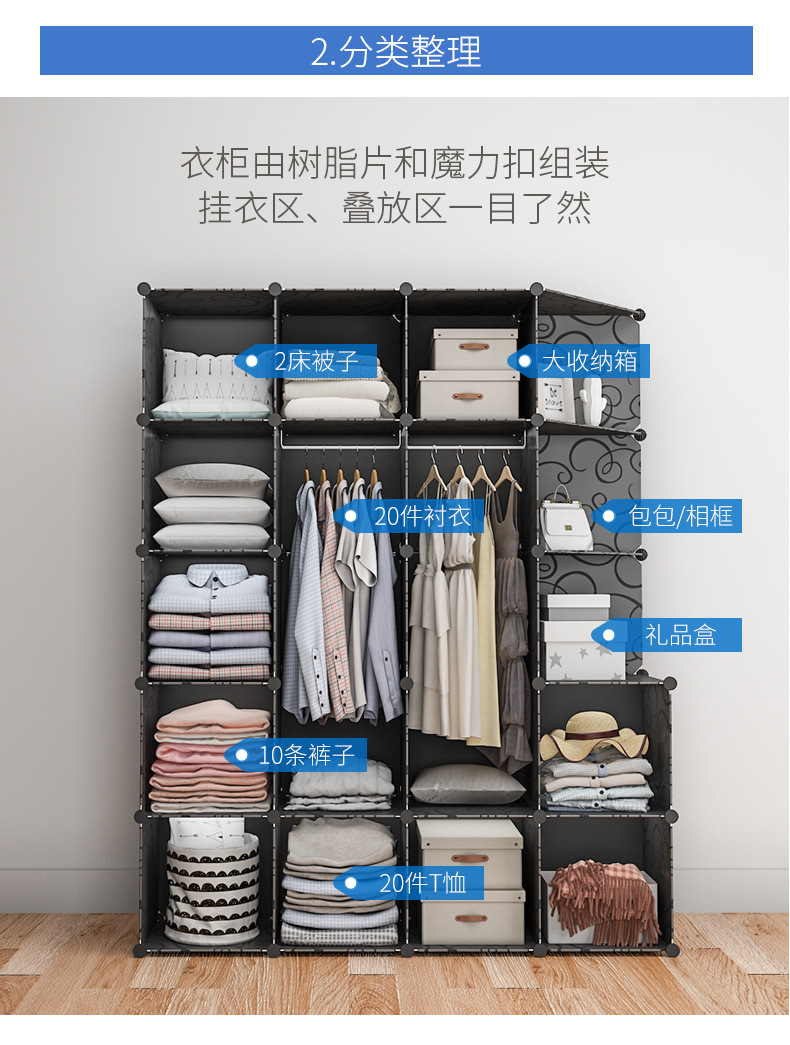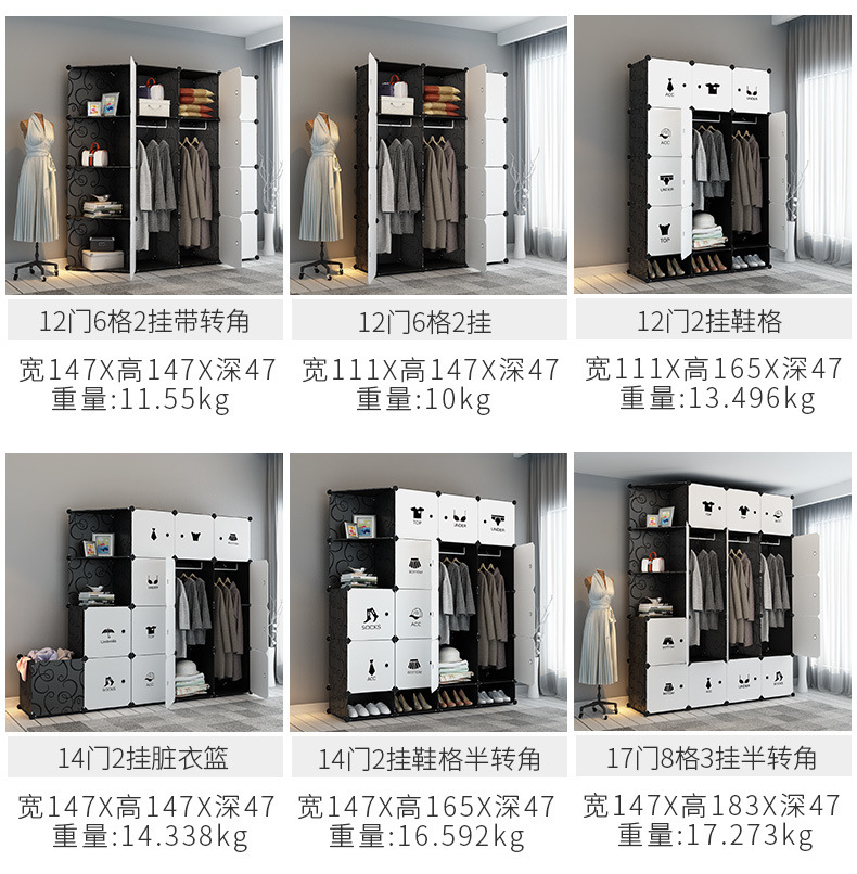 간단한 옷장 홈 침실 임대실 수납 선반 조립 수납 매우 두꺼운 기숙사 내구성 방진