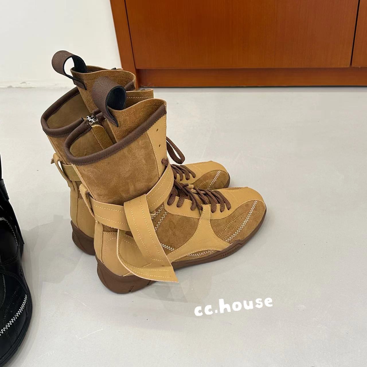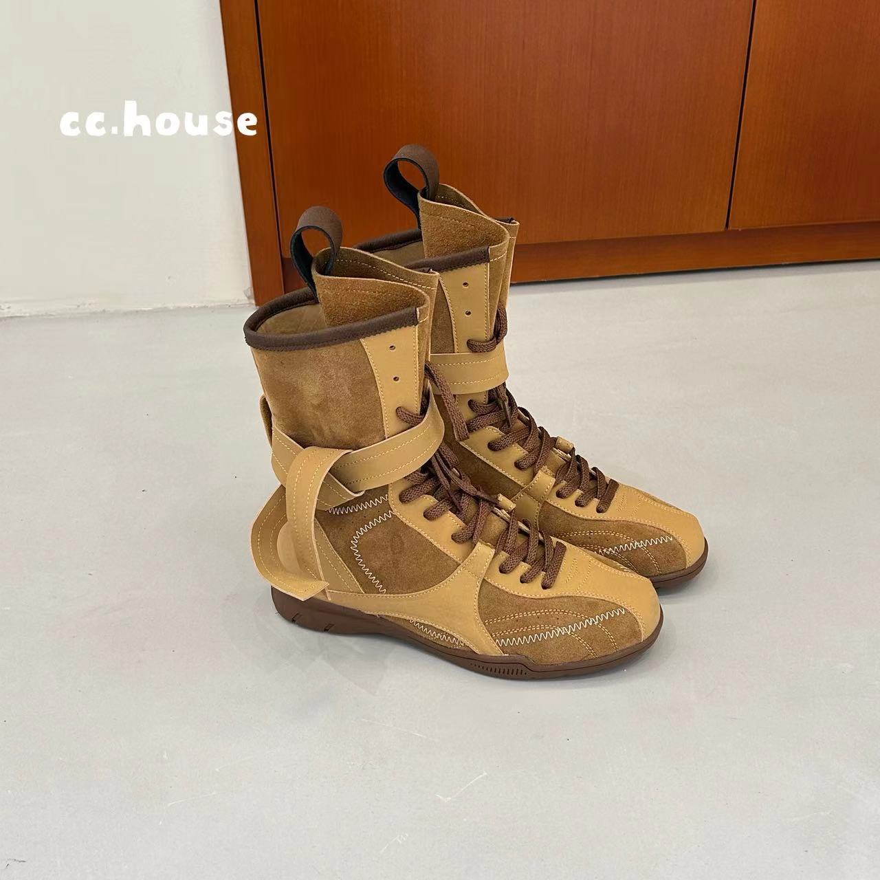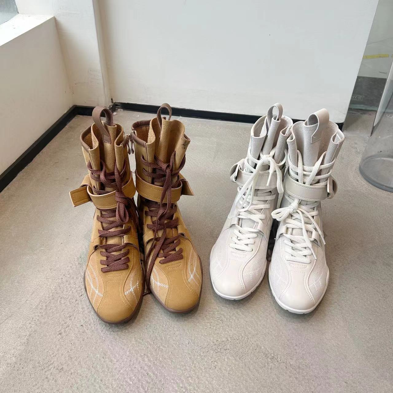 2025 봄 레트로 내부 강화 마틴 부츠 여성용 브라운 복싱 부츠 누벅 가죽 라운드 발가락 레이스 업 스포츠 부츠 짧은 부츠스토어 가기